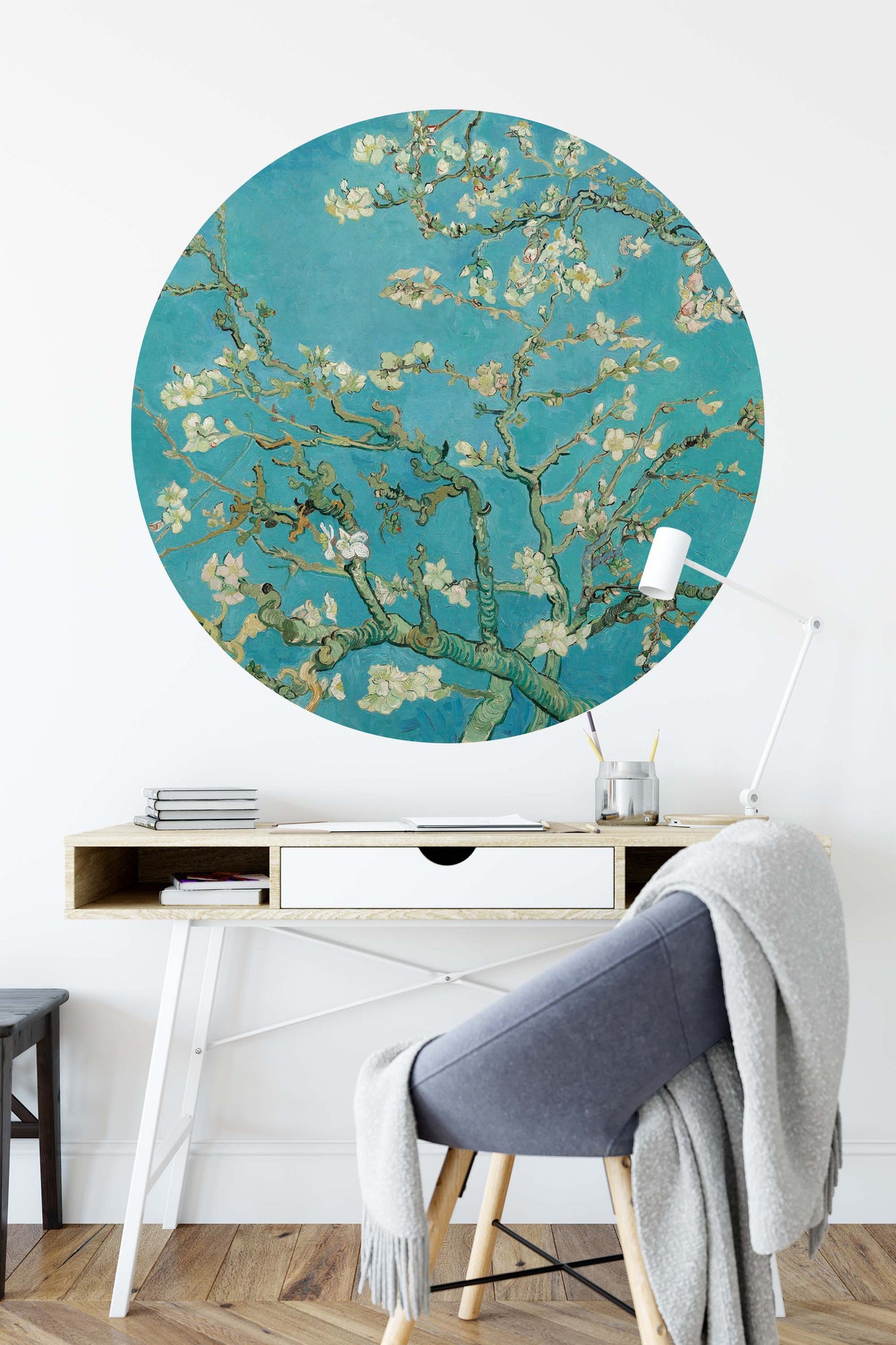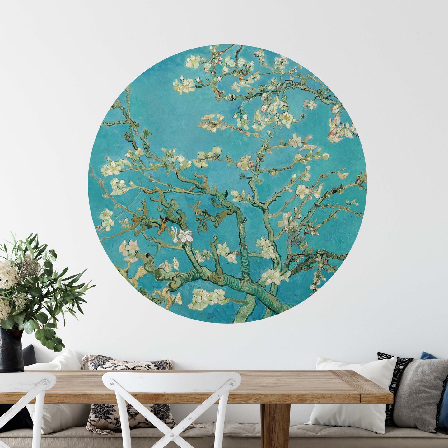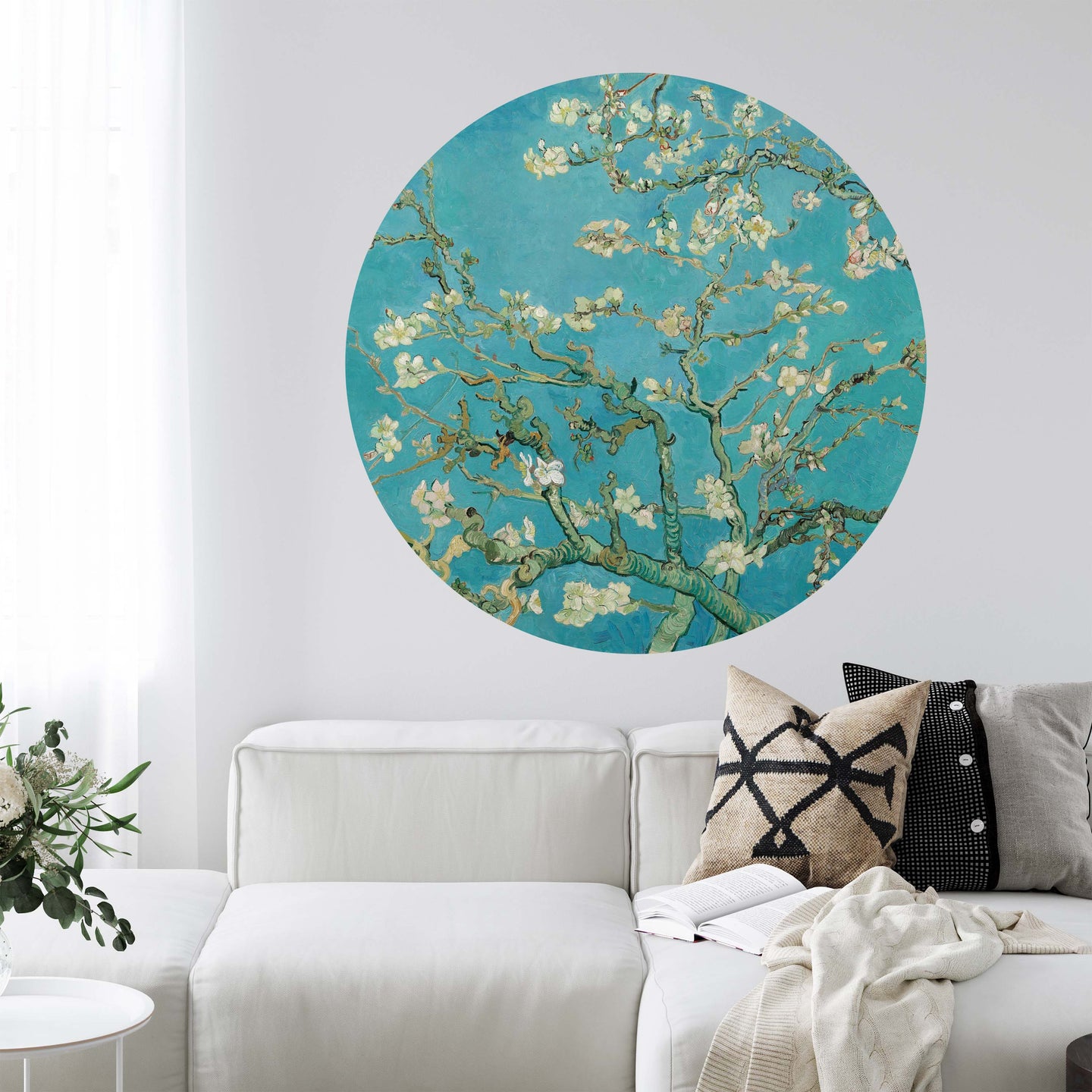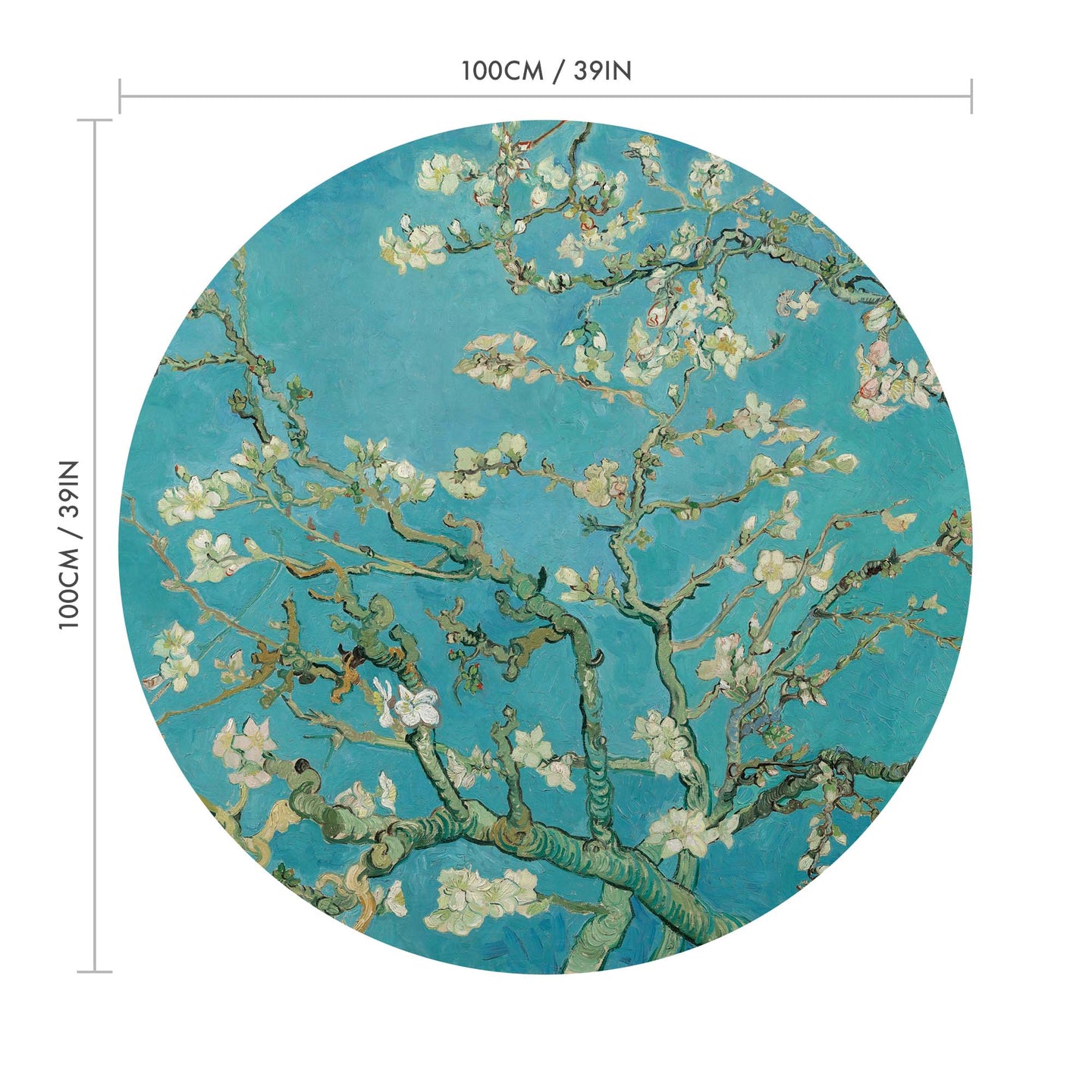 Create a beautiful focal point in your room, with the self-adhesive art circle: 'Almond Blossoms'. Each circle measures an extra-large 100cm in diameter, and is supplied in a single self-adhesive piece. Install on your wall in less than 5 minutes. For each item sold, one tree is planted. This helps to offset carbon released during production and shipping, and to create a net positive contribution over the tree's lifetime. Transform your home, and our planet.