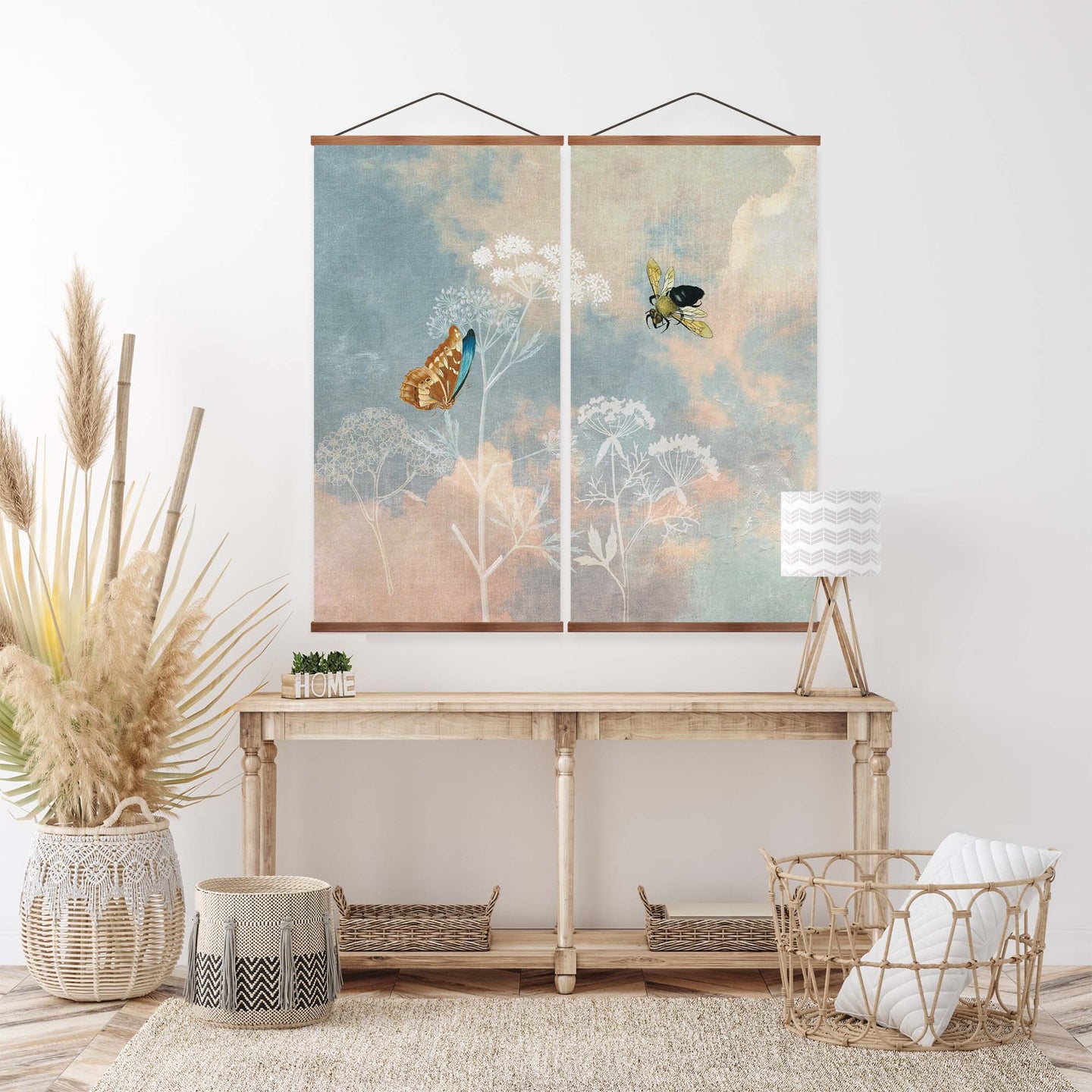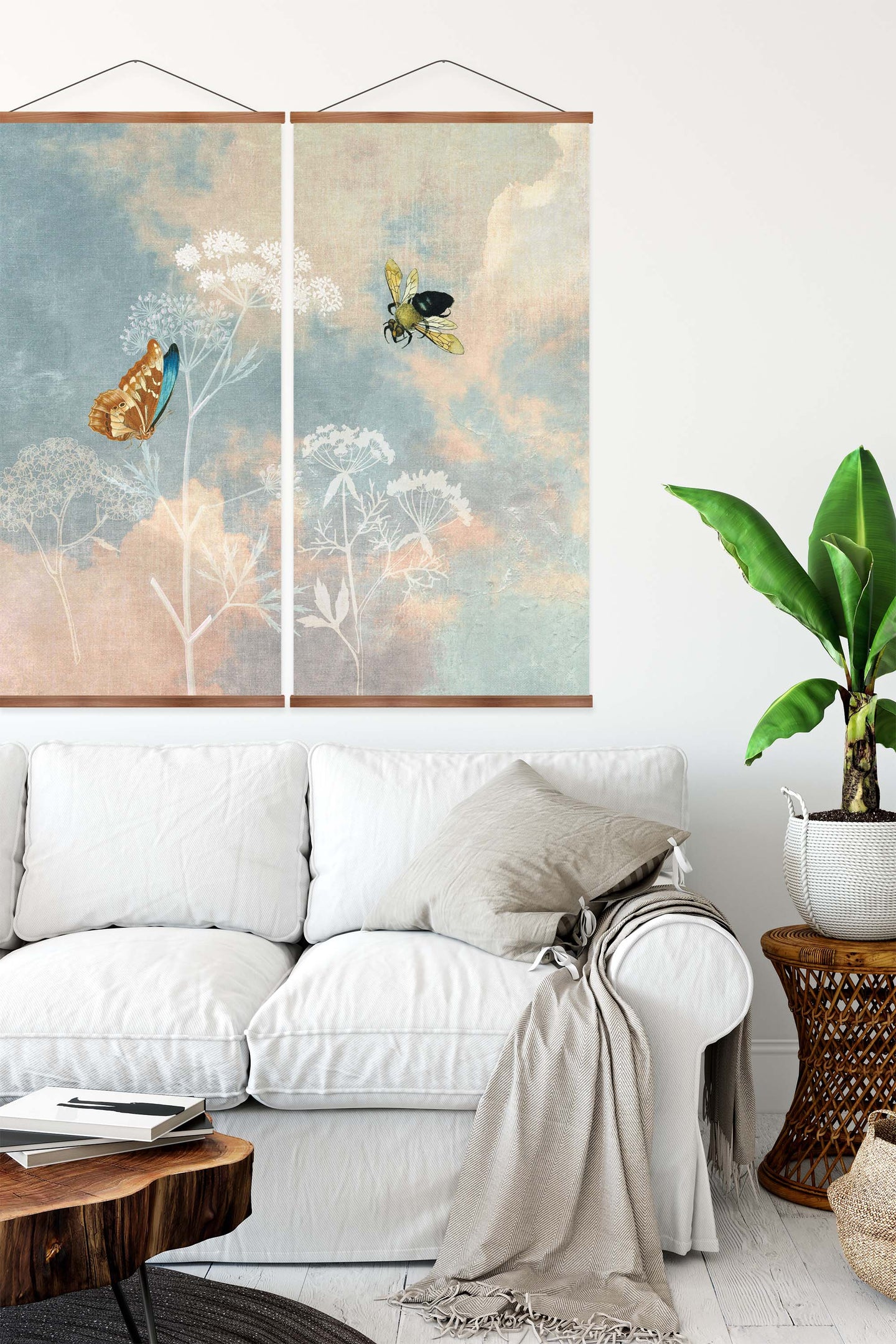Create an instant room transformation, with the canvas tapestry print: 'Warm Summer Days'. Printed on luxury 260g canvas, Tapestro canvas tapestries hang from magnetic wooden holders, in either teak or black wood. Supplied with a teak hanger. This print measures: 120cm x 120cm (47in x 47in). Supplied in: 2 Panels. For each item sold, one tree is planted. This helps to offset carbon released during production and shipping, and to create a net positive contribution over the tree's lifetime. Transform your home, and our planet.