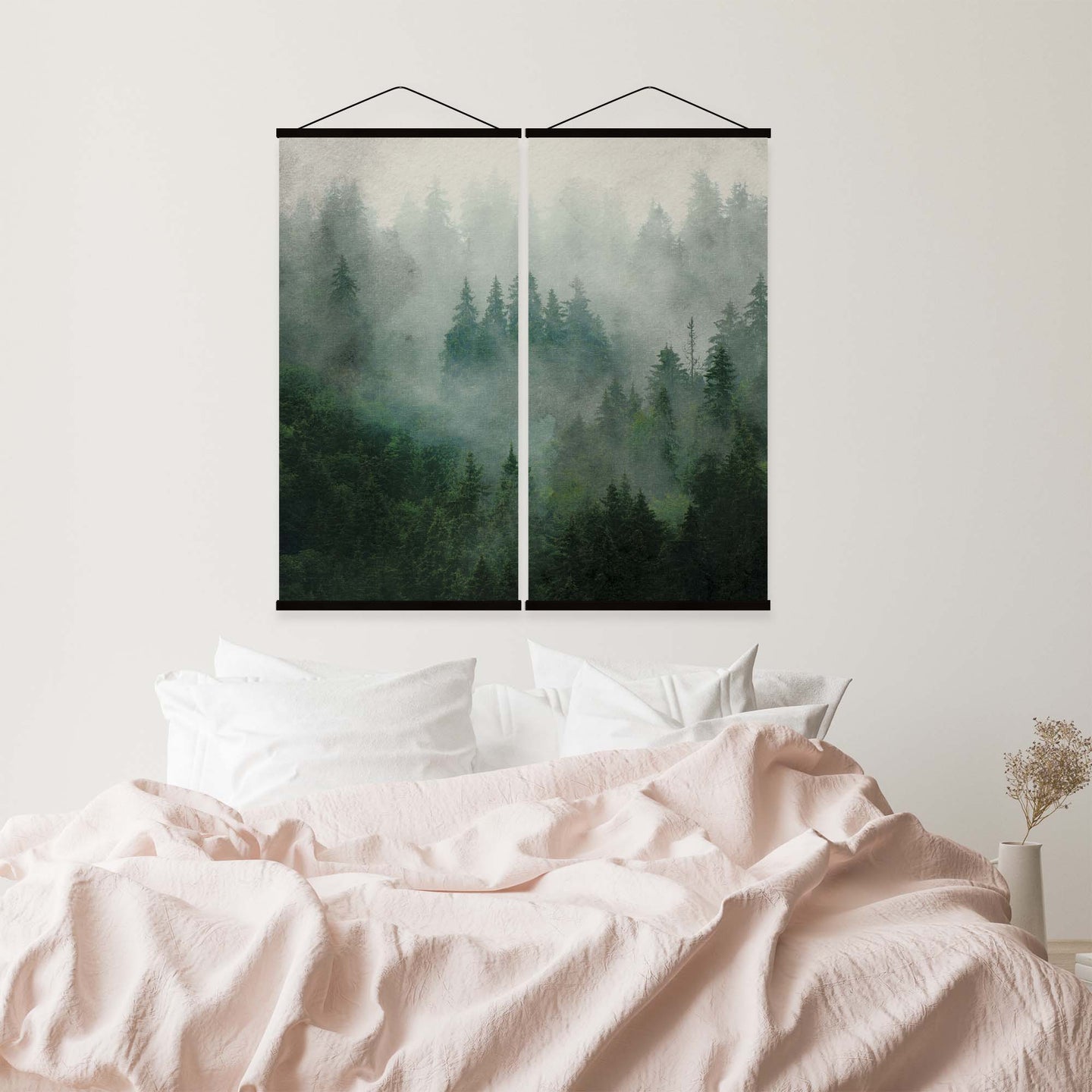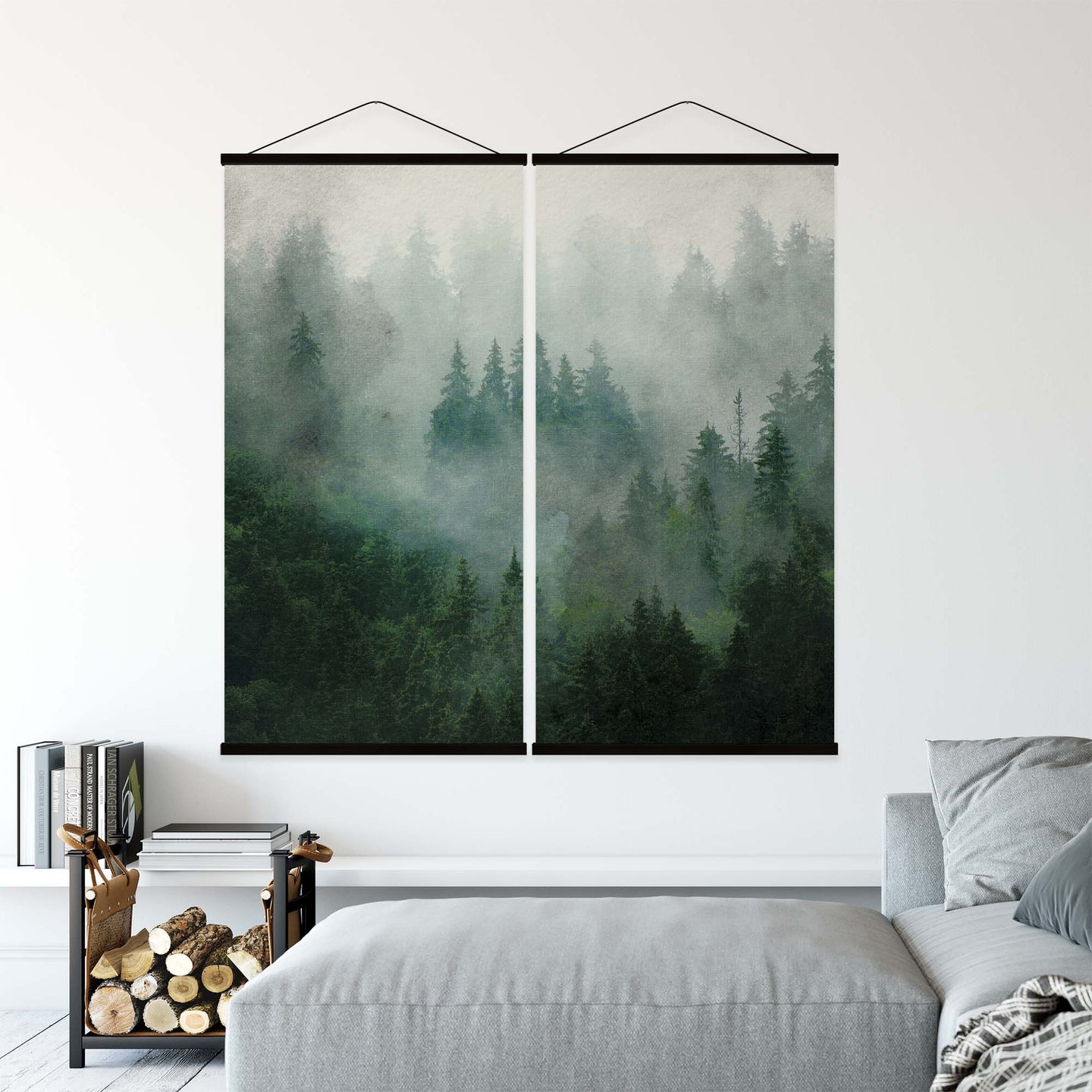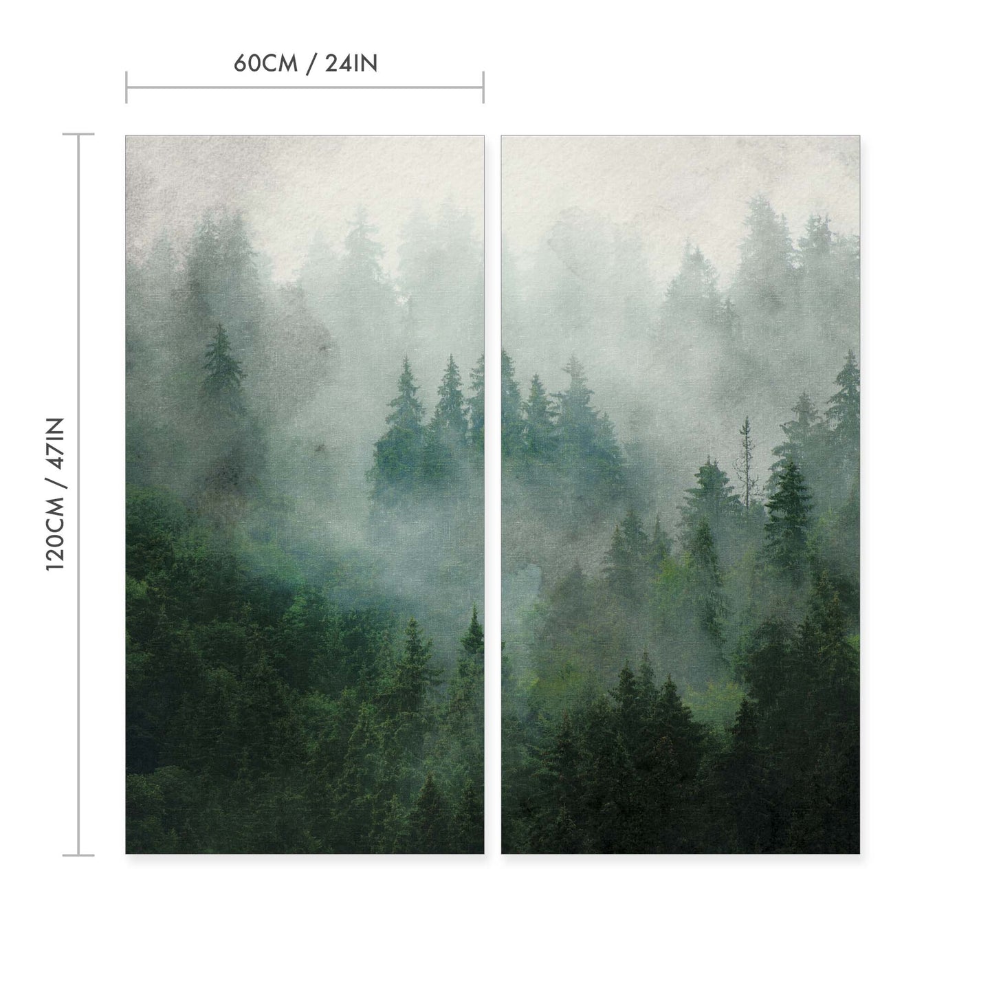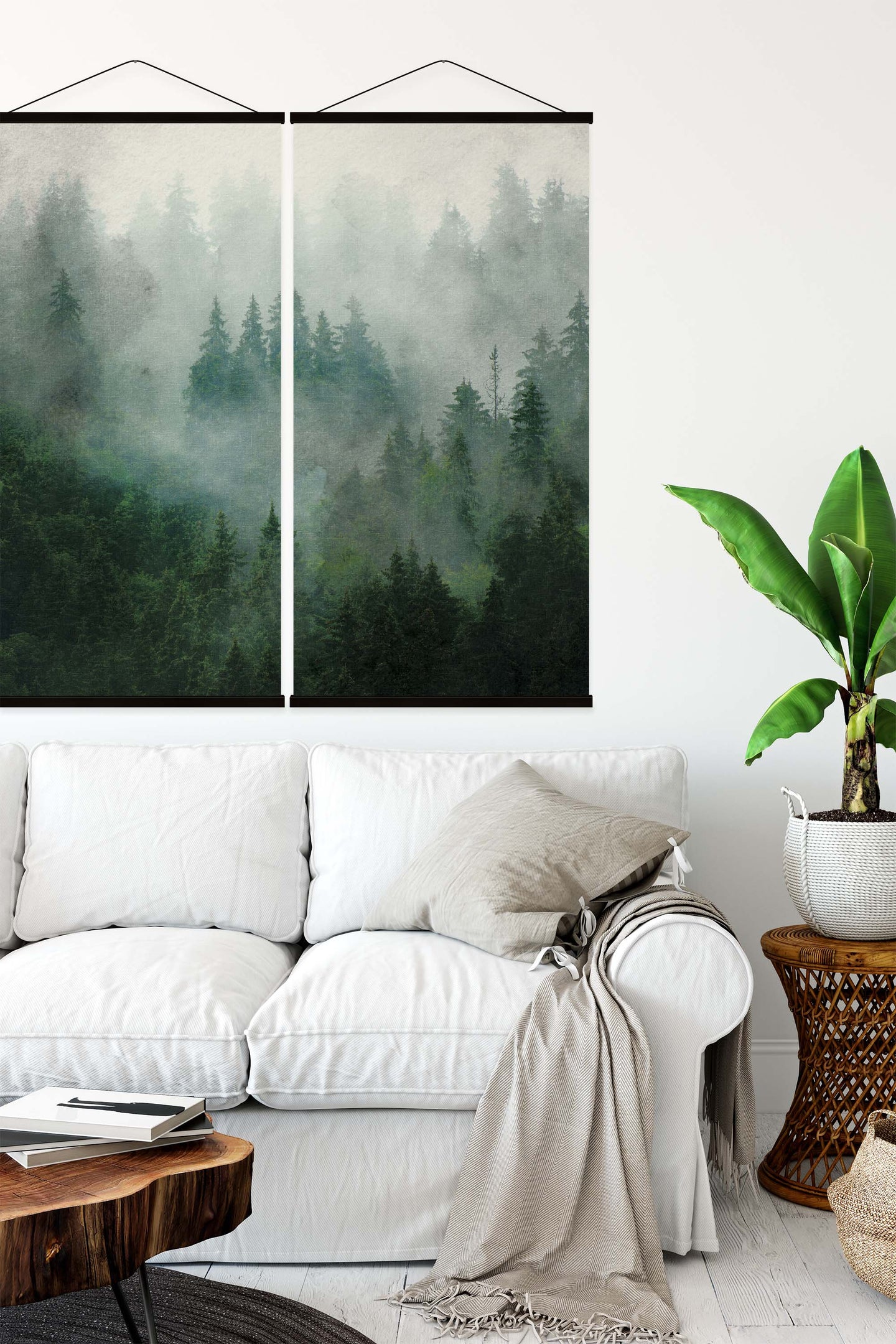 Create an instant room transformation, with the canvas tapestry print: 'Forest Serenity'. Printed on luxury 260g canvas, Tapestro canvas tapestries hang from magnetic wooden holders, in either teak or black wood. Supplied with a black hanger. This print measures: 120cm x 120cm (47in x 47in). Supplied in: 2 Panels. For each item sold, one tree is planted. This helps to offset carbon released during production and shipping, and to create a net positive contribution over the tree's lifetime. Transform your home, and our planet.