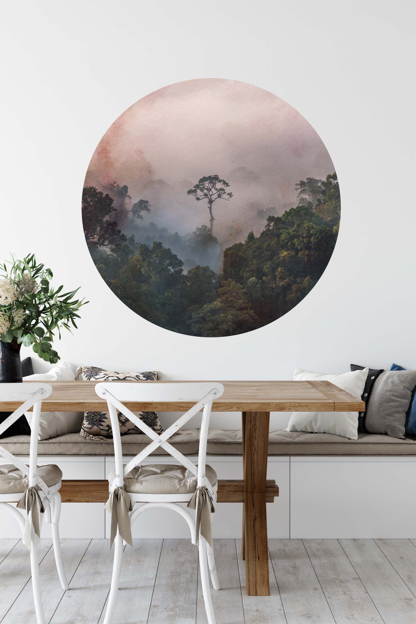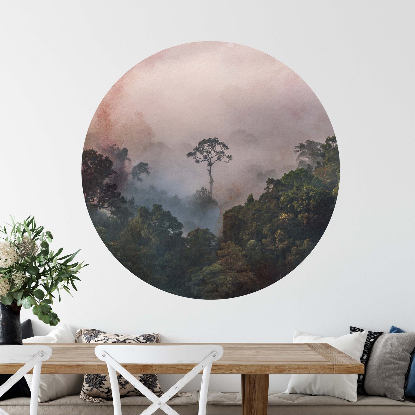 Create a beautiful focal point in your room, with the self-adhesive art circle: 'After the Rains'. Each circle measures an extra-large 100cm in diameter, and is supplied in a single self-adhesive piece. Install on your wall in less than 5 minutes. For each item sold, one tree is planted. This helps to offset carbon released during production and shipping, and to create a net positive contribution over the tree's lifetime. Transform your home, and our planet.