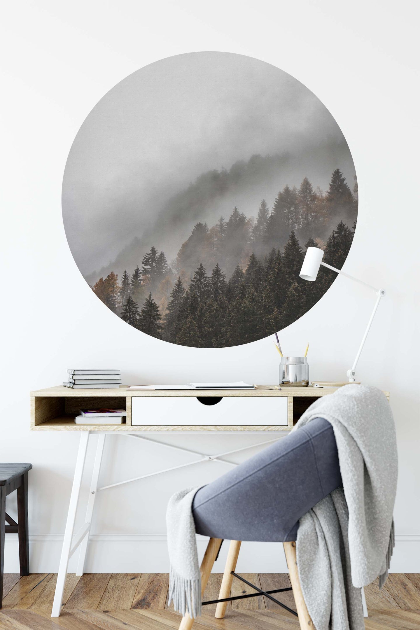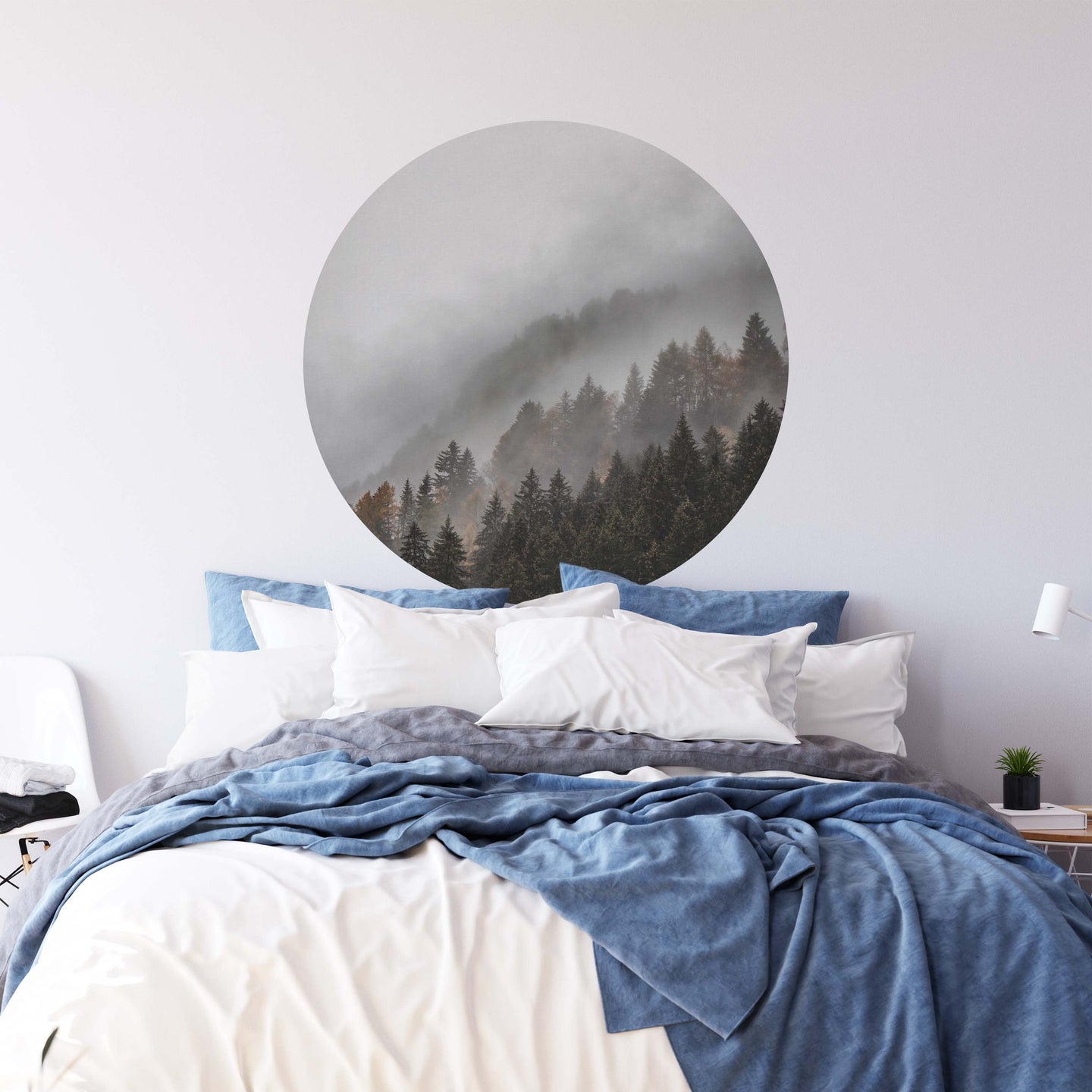 Create a beautiful focal point in your room, with the self-adhesive art circle: 'Rolling Mist'. Each circle measures an extra-large 100cm in diameter, and is supplied in a single self-adhesive piece. Install on your wall in less than 5 minutes. For each item sold, one tree is planted. This helps to offset carbon released during production and shipping, and to create a net positive contribution over the tree's lifetime. Transform your home, and our planet.