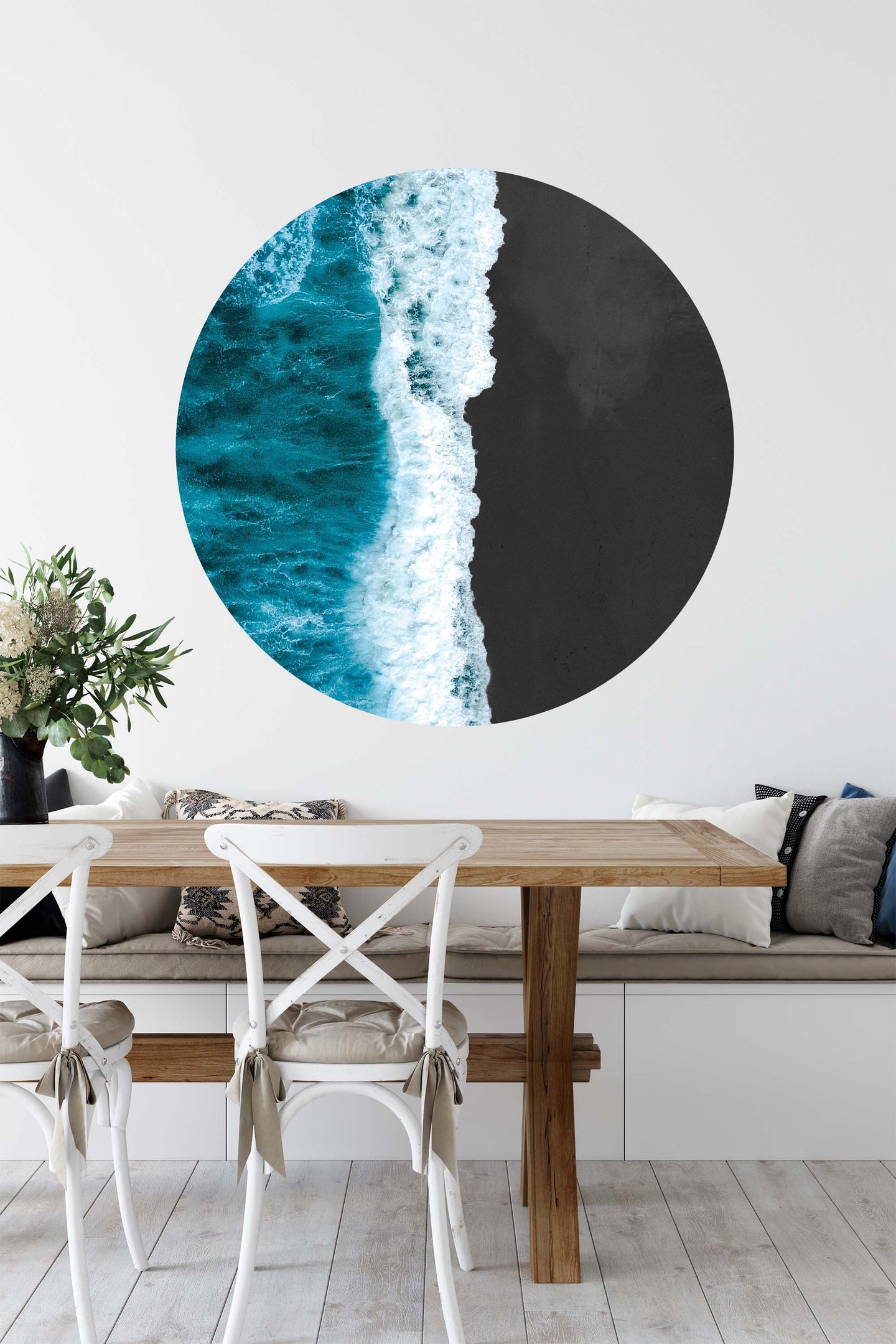 Create a beautiful focal point in your room, with the self-adhesive art circle: 'Icelandic Contrasts'. Each circle measures an extra-large 100cm in diameter, and is supplied in a single self-adhesive piece. Install on your wall in less than 5 minutes. For each item sold, one tree is planted. This helps to offset carbon released during production and shipping, and to create a net positive contribution over the tree's lifetime. Transform your home, and our planet.