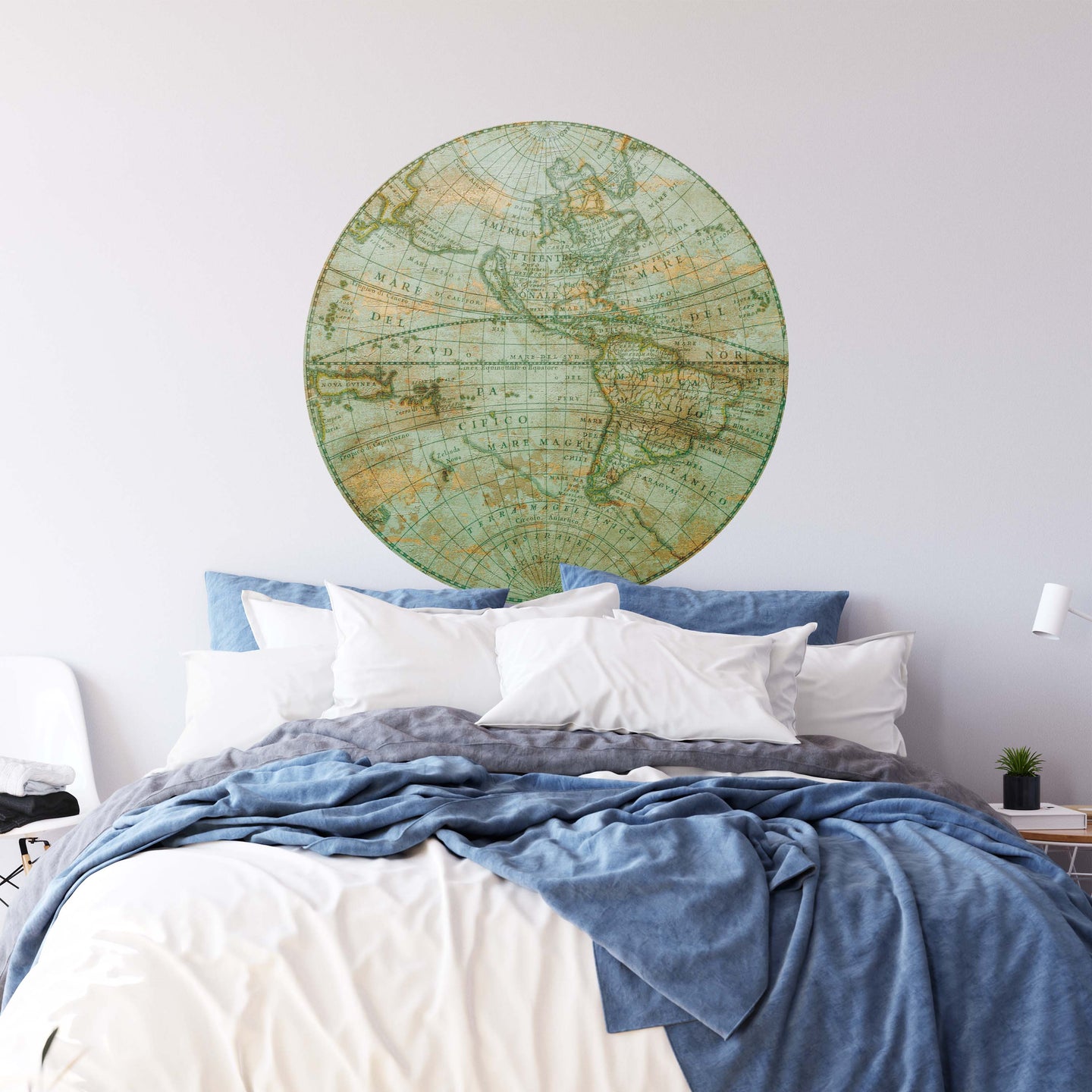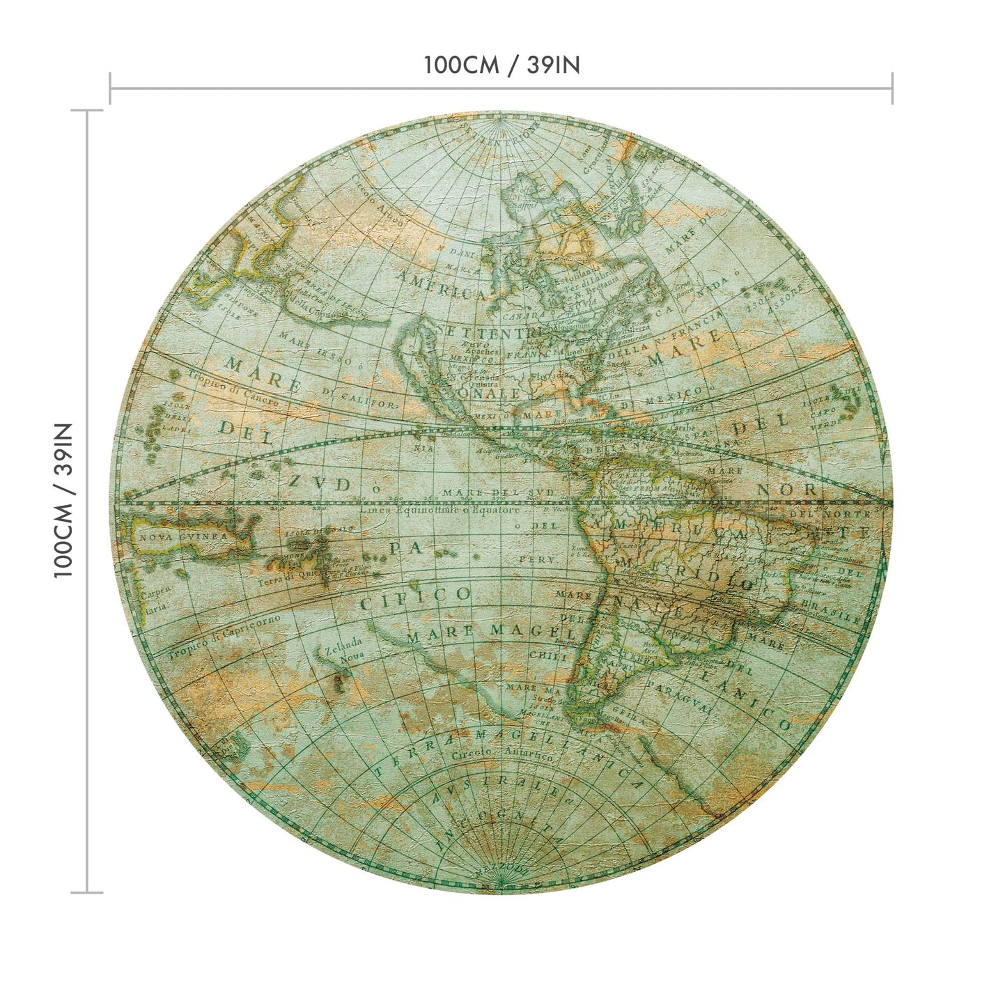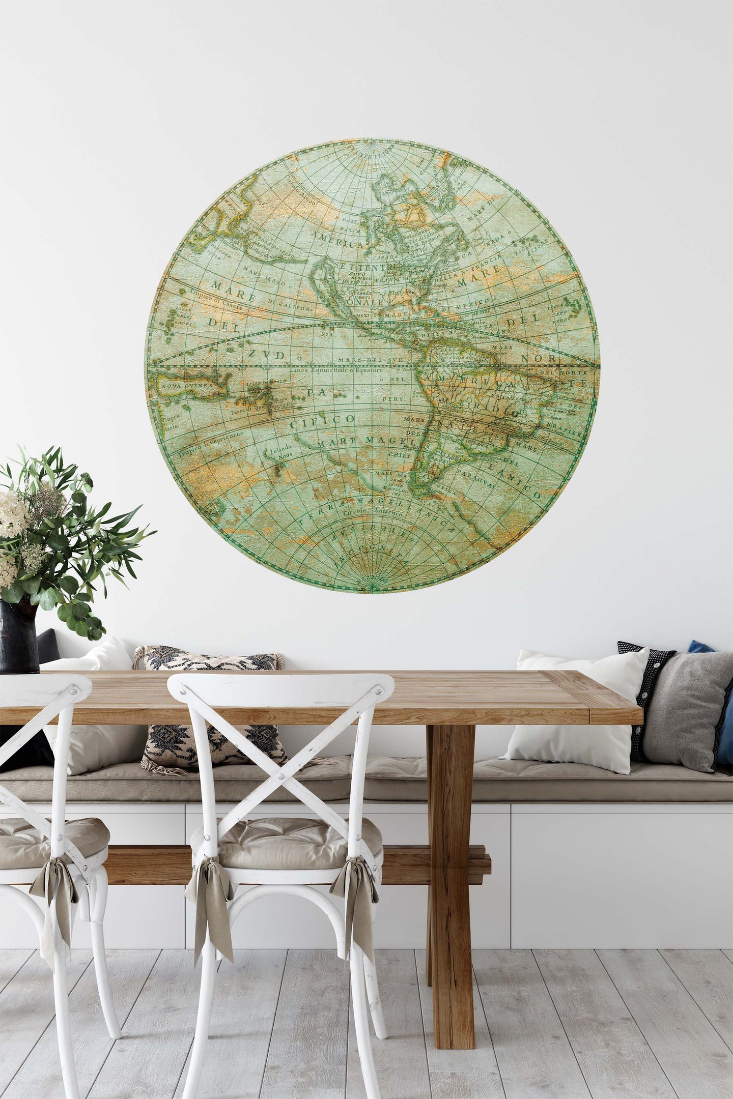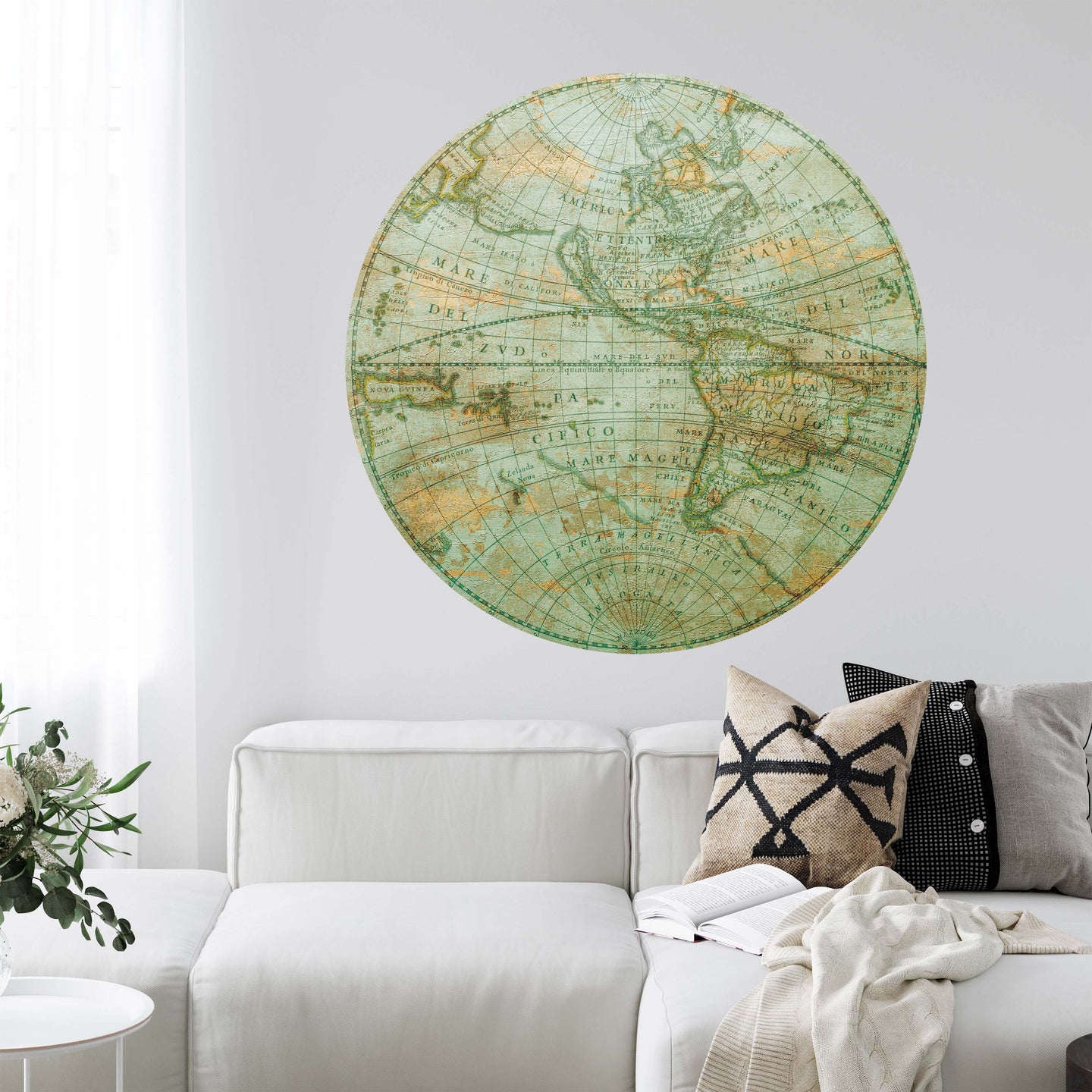 Create a beautiful focal point in your room, with the self-adhesive art circle: 'Mappa Mundi West'. Each circle measures an extra-large 100cm in diameter, and is supplied in a single self-adhesive piece. Install on your wall in less than 5 minutes. For each item sold, one tree is planted. This helps to offset carbon released during production and shipping, and to create a net positive contribution over the tree's lifetime. Transform your home, and our planet.