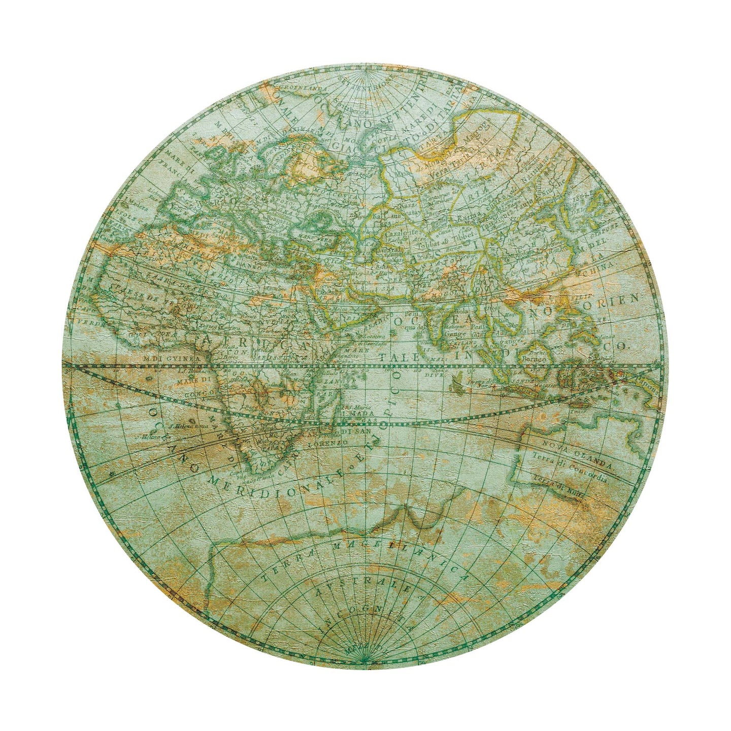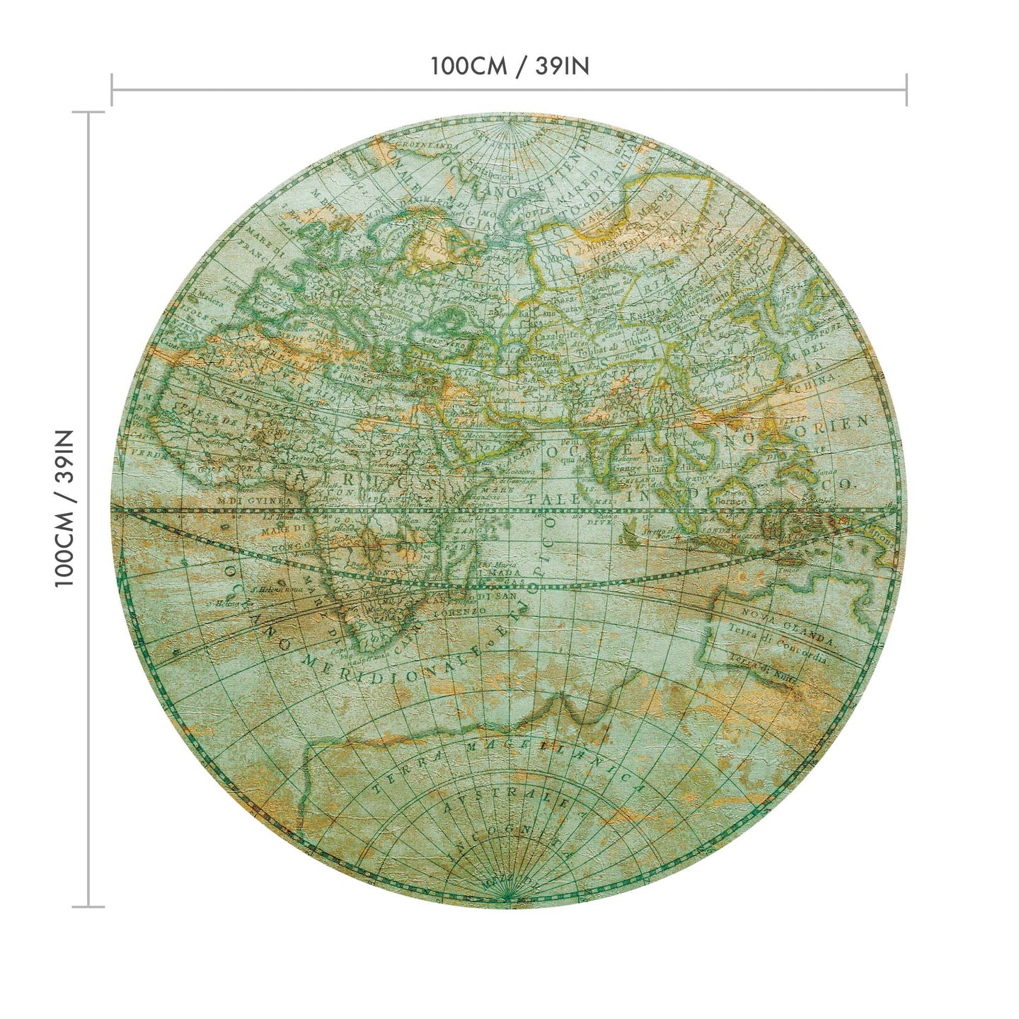Create a beautiful focal point in your room, with the self-adhesive art circle: 'Mappa Mundi East'. Each circle measures an extra-large 100cm in diameter, and is supplied in a single self-adhesive piece. Install on your wall in less than 5 minutes. For each item sold, one tree is planted. This helps to offset carbon released during production and shipping, and to create a net positive contribution over the tree's lifetime. Transform your home, and our planet.