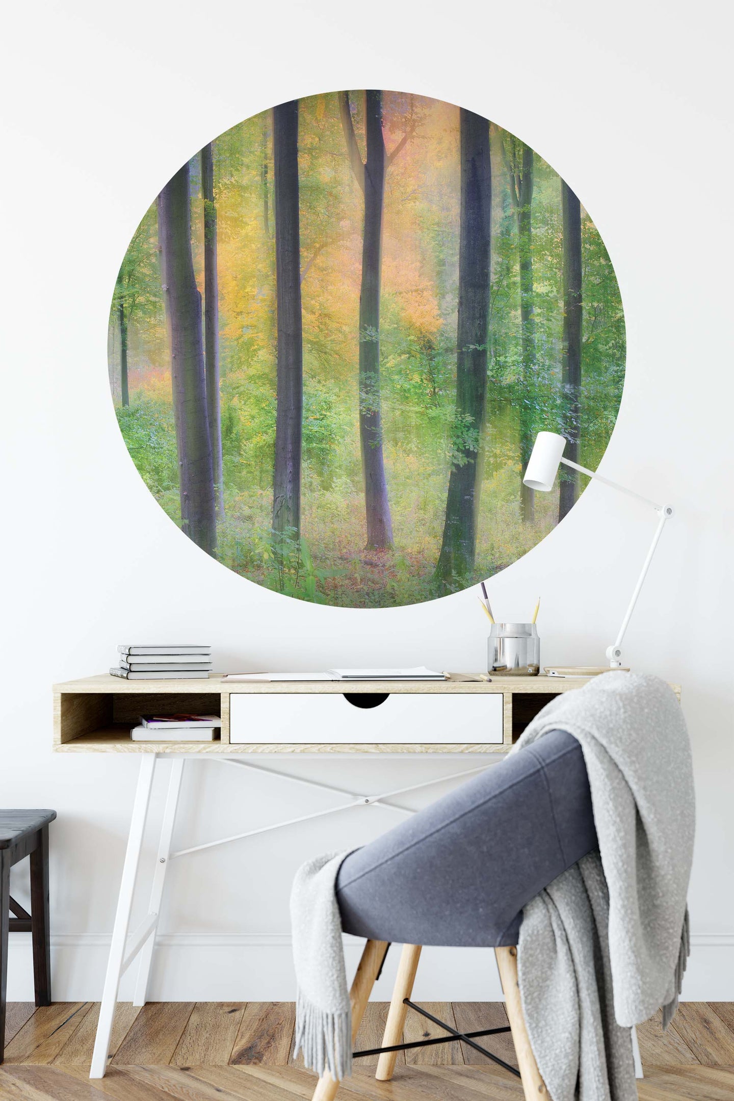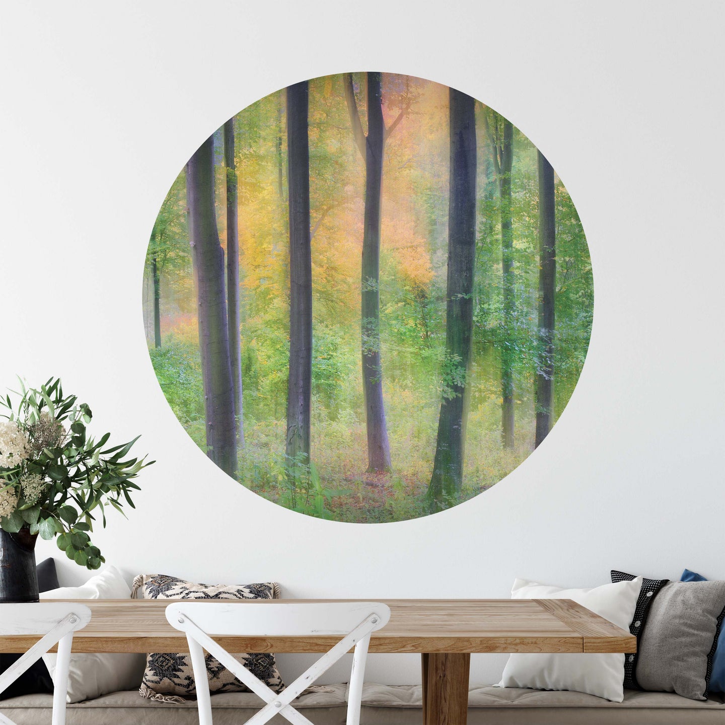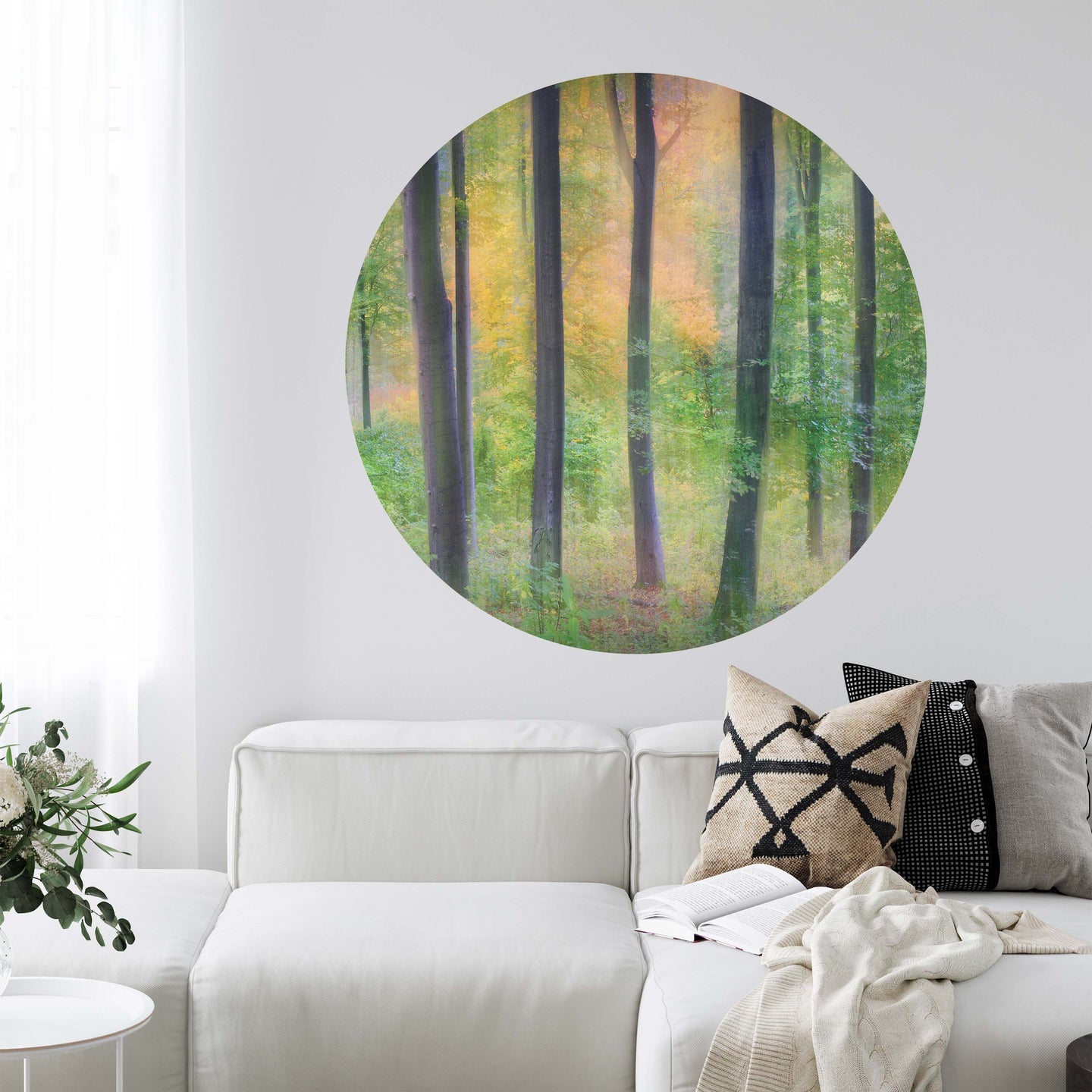 Create a beautiful focal point in your room, with the self-adhesive art circle: 'Dreamy by Jochen Burger'. Each circle measures an extra-large 100cm in diameter, and is supplied in a single self-adhesive piece. Install on your wall in less than 5 minutes. For each item sold, one tree is planted. This helps to offset carbon released during production and shipping, and to create a net positive contribution over the tree's lifetime. Transform your home, and our planet.