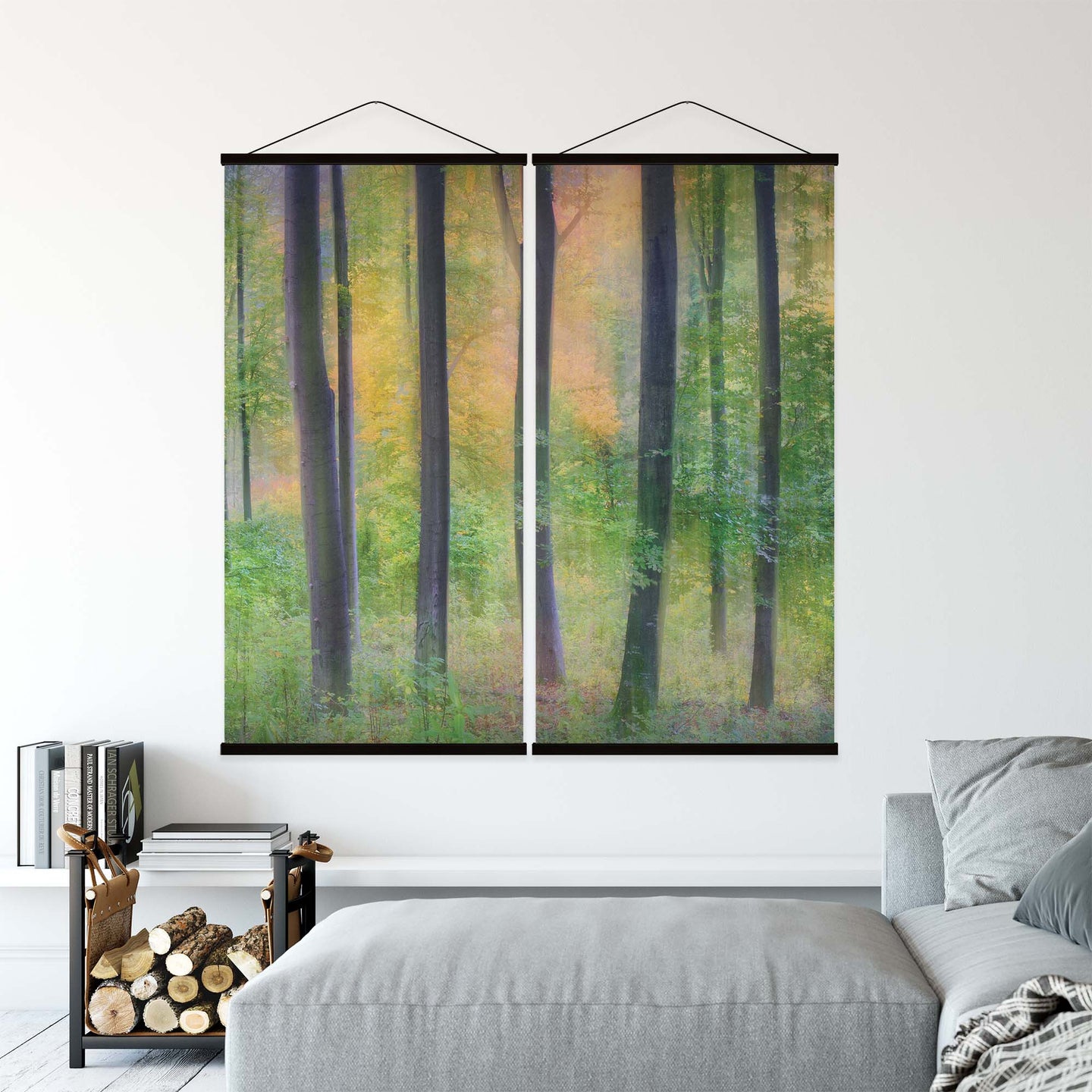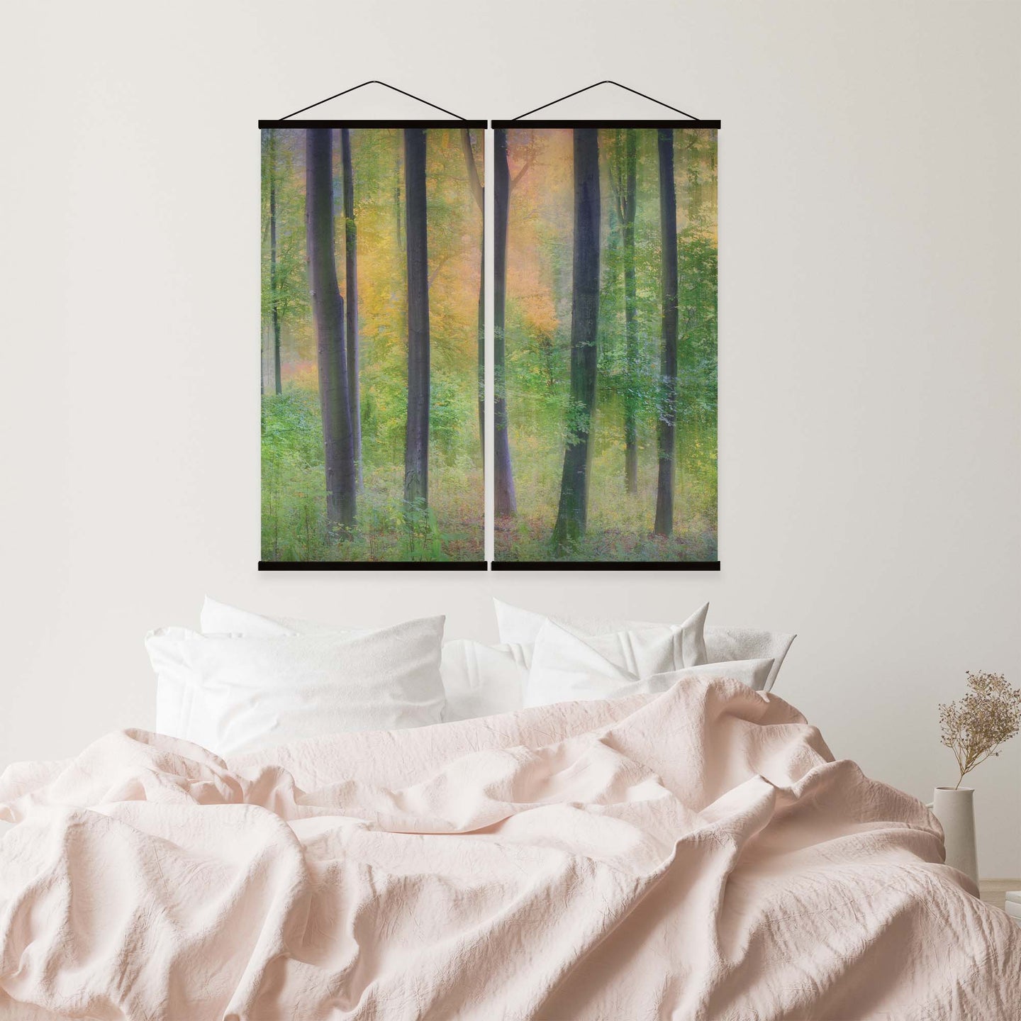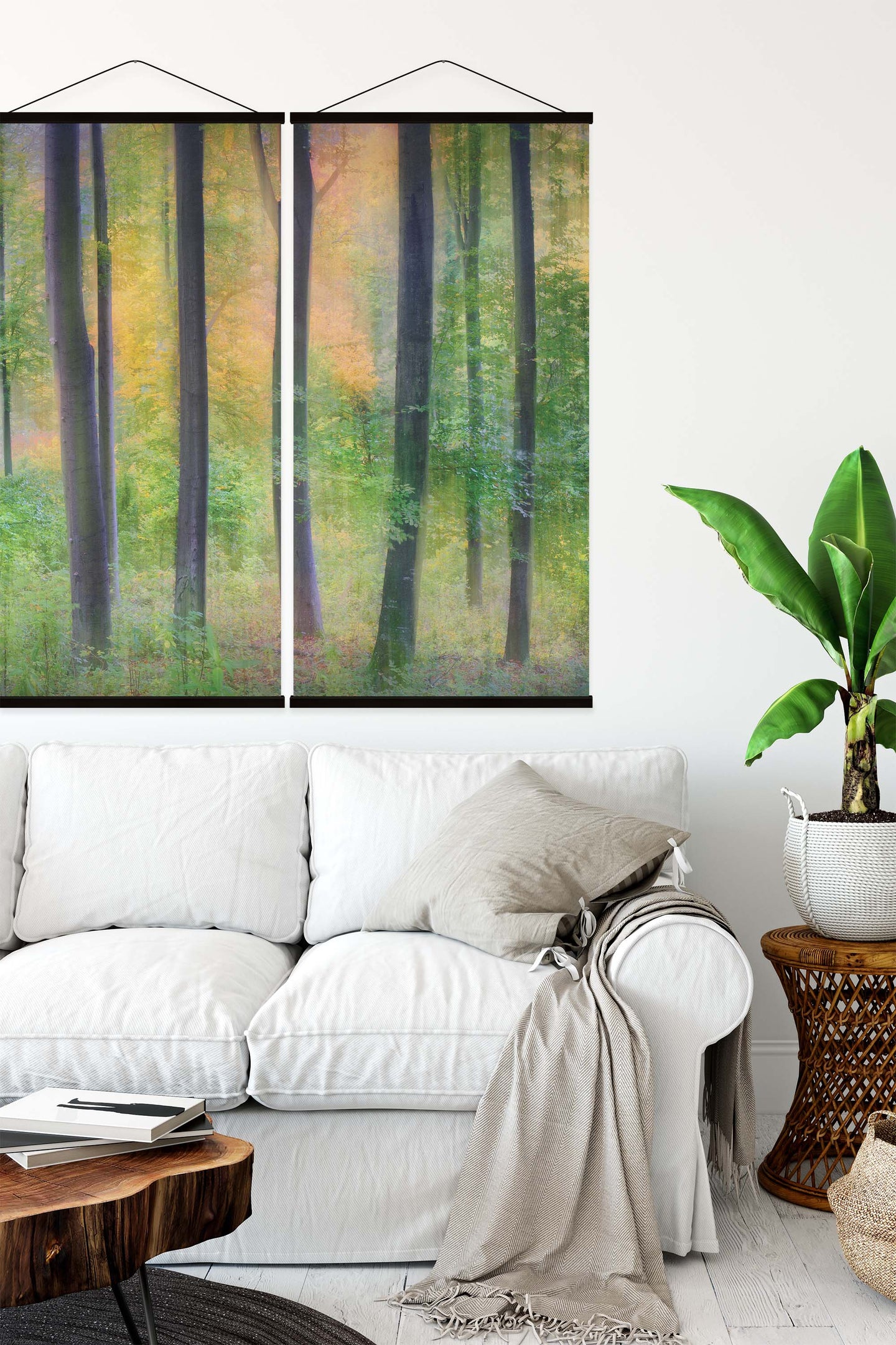 Create an instant room transformation, with the canvas tapestry print: 'Dreamy by Jochen Burger'. Printed on luxury 260g canvas, Tapestro canvas tapestries hang from magnetic wooden holders, in either teak or black wood. Supplied with a black hanger. This print measures: 120cm x 120cm (47in x 47in). Supplied in: 2 Panels. For each item sold, one tree is planted. This helps to offset carbon released during production and shipping, and to create a net positive contribution over the tree's lifetime. Transform your home, and our planet.