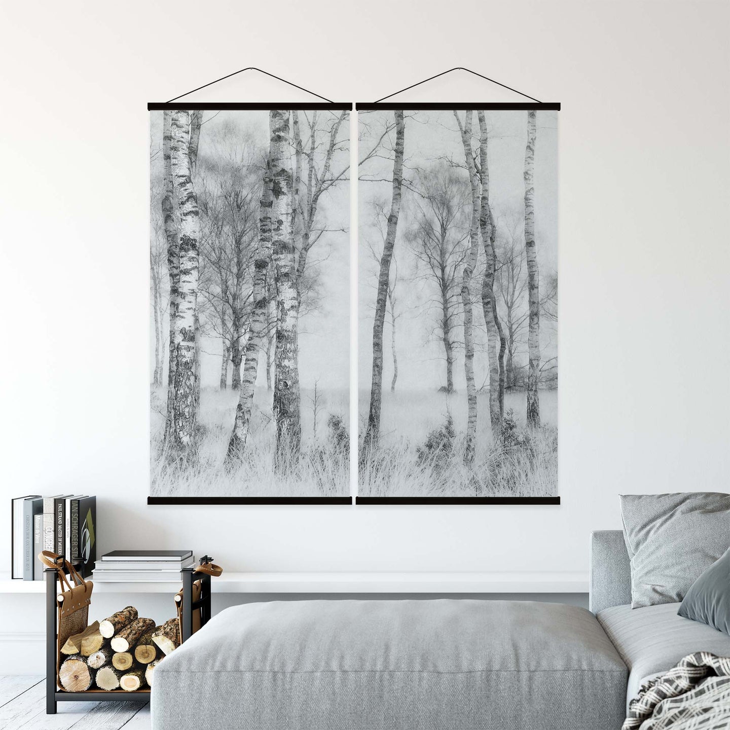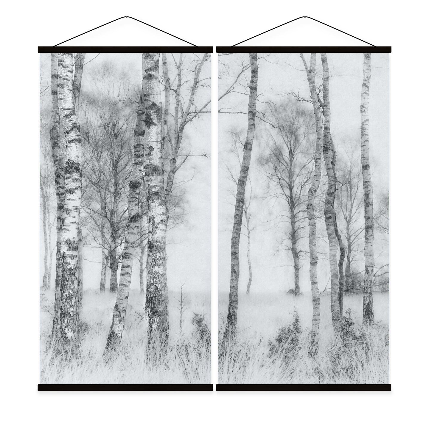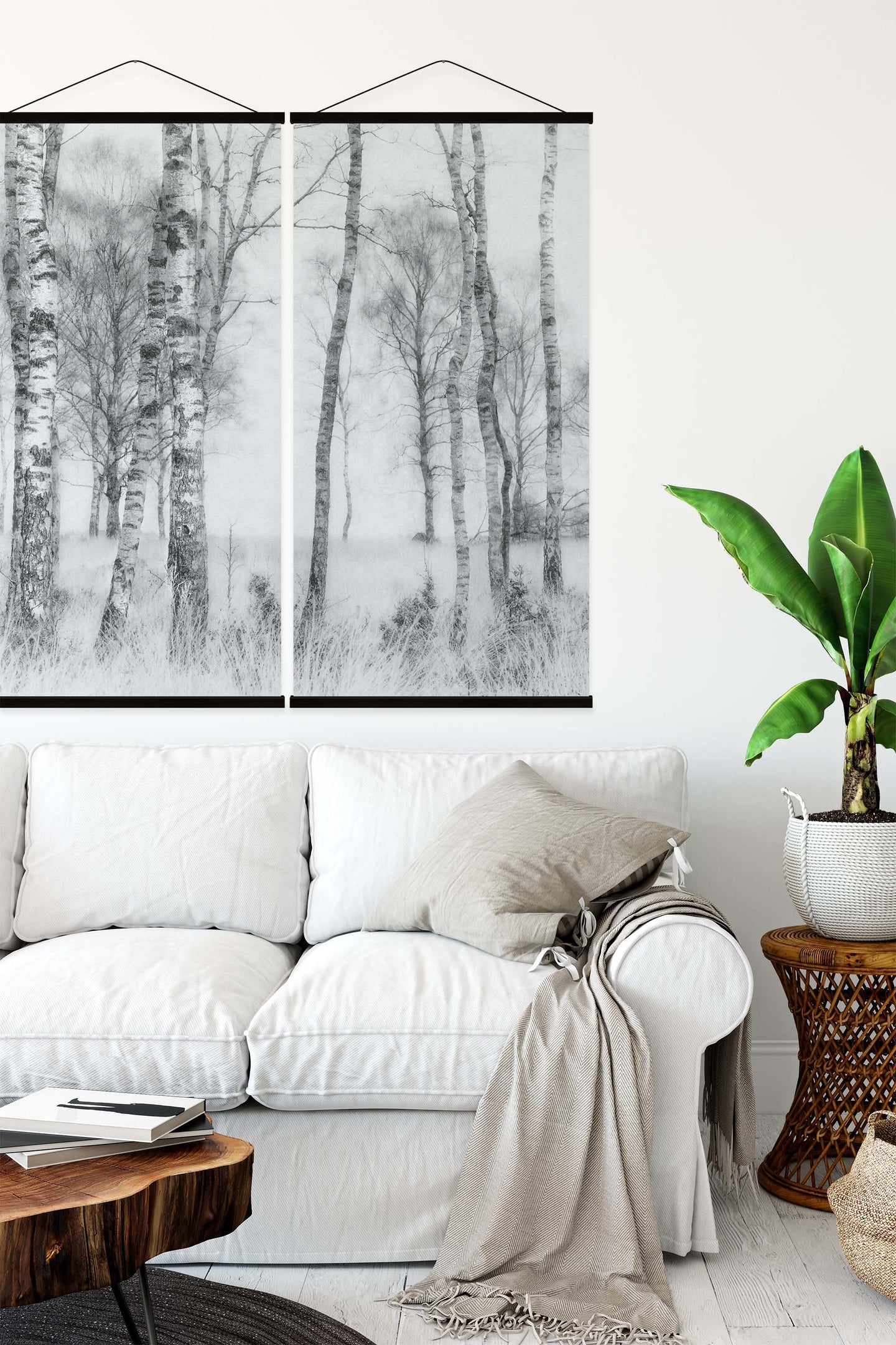 Create an instant room transformation, with the canvas tapestry print: 'Black and White by Nel Talen'. Printed on luxury 260g canvas, Tapestro canvas tapestries hang from magnetic wooden holders, in either teak or black wood. Supplied with a black hanger. This print measures: 120cm x 120cm (47in x 47in). Supplied in: 2 Panels. For each item sold, one tree is planted. This helps to offset carbon released during production and shipping, and to create a net positive contribution over the tree's lifetime. Transform your home, and our planet.