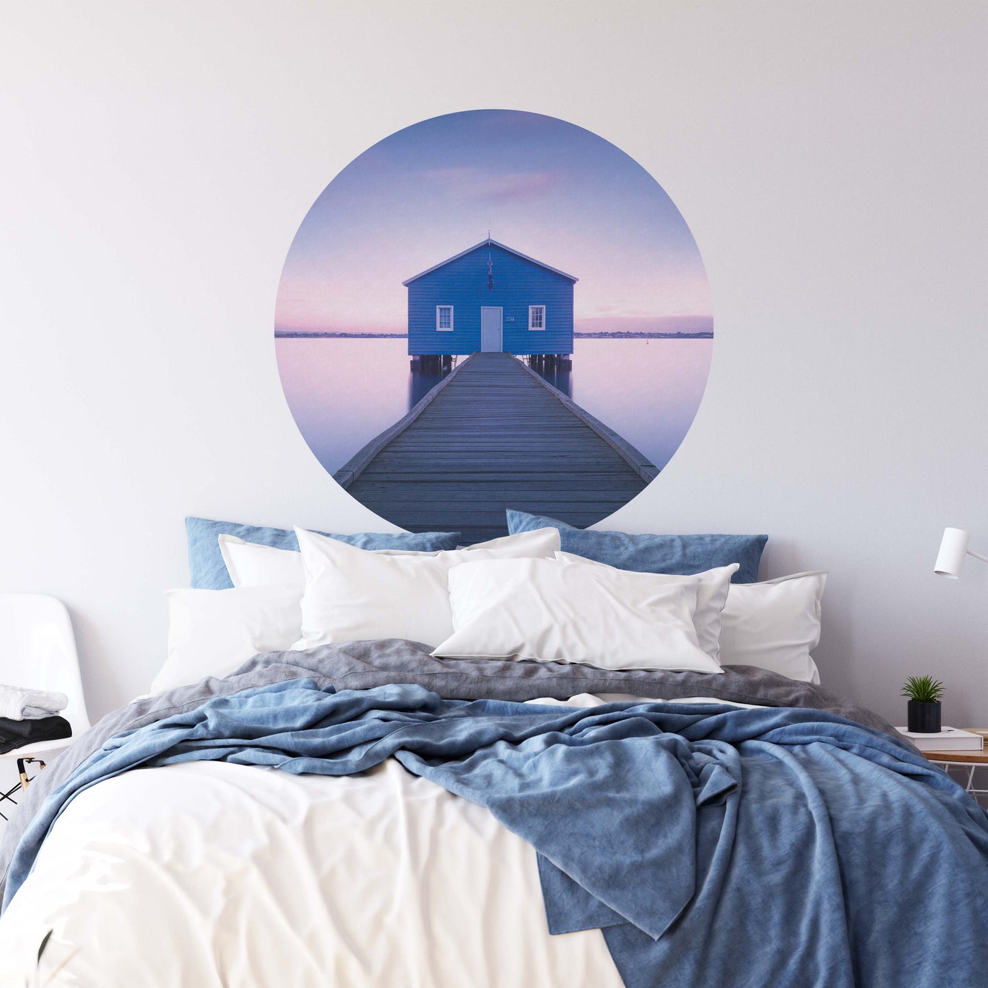 Create a beautiful focal point in your room, with the self-adhesive art circle: 'Boathouse by Richard Vandewalle'. Each circle measures an extra-large 100cm in diameter, and is supplied in a single self-adhesive piece. Install on your wall in less than 5 minutes. For each item sold, one tree is planted. This helps to offset carbon released during production and shipping, and to create a net positive contribution over the tree's lifetime. Transform your home, and our planet.