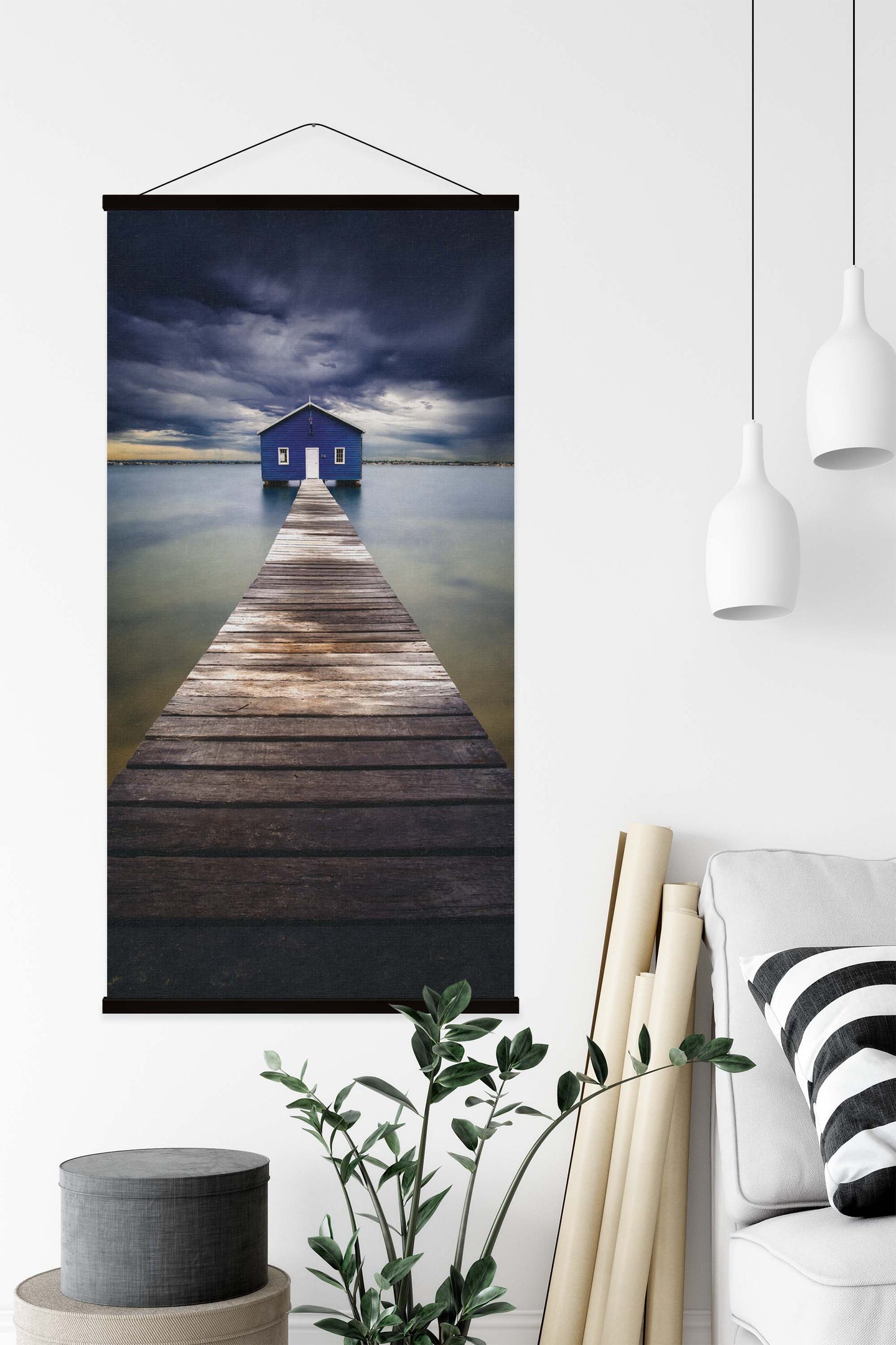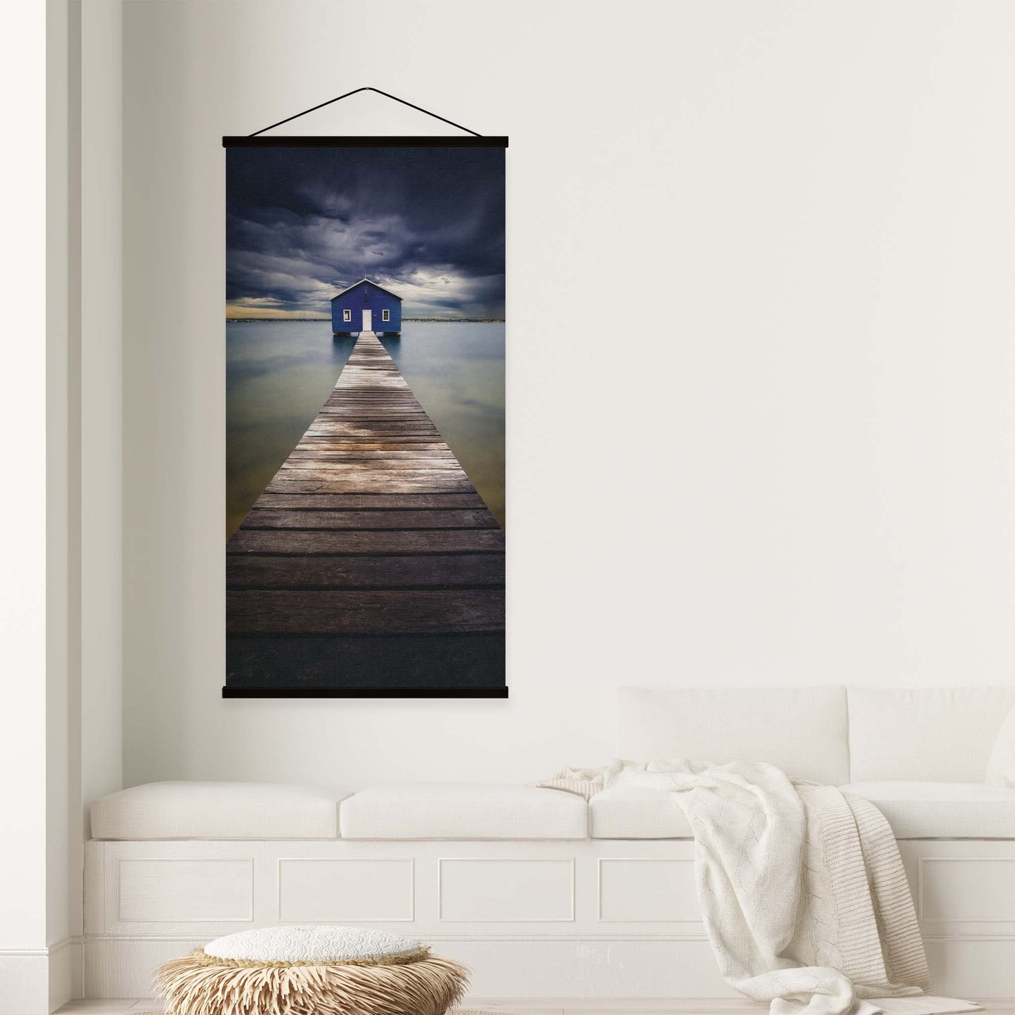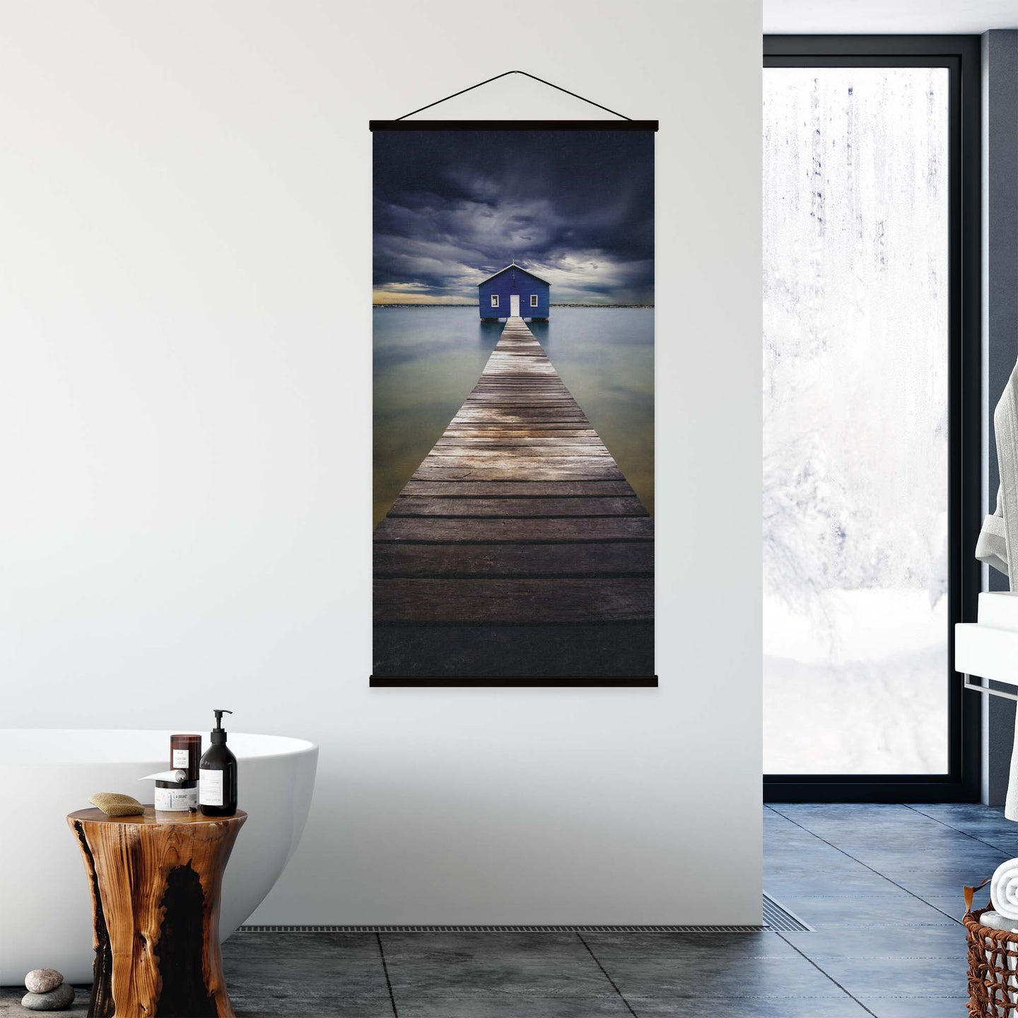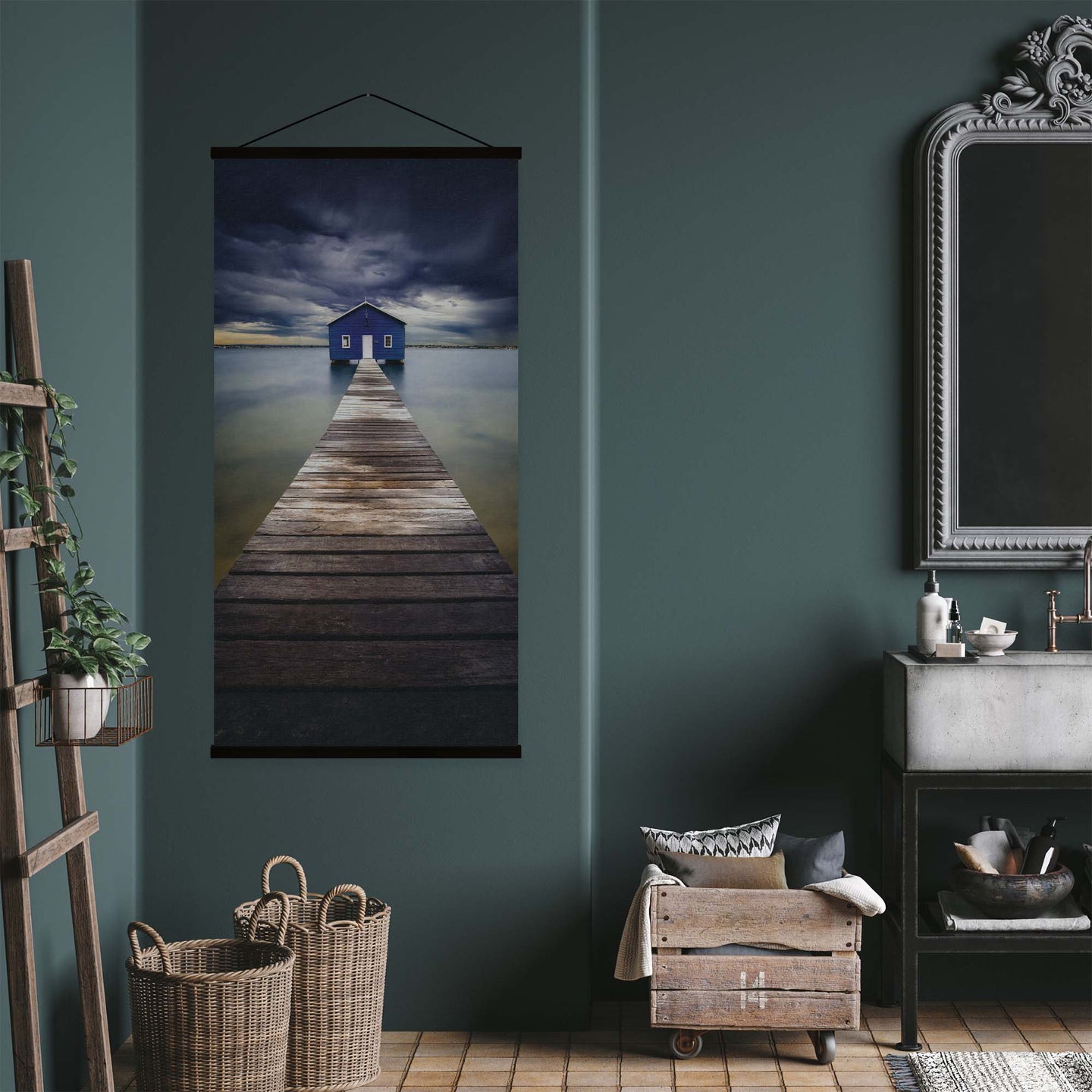 Create an instant room transformation, with the canvas tapestry print: 'Boathouse by Richard Vandewalle'. Printed on luxury 260g canvas, Tapestro canvas tapestries hang from magnetic wooden holders, in either teak or black wood. Supplied with a black hanger. This print measures: 60cm x 120cm (24in x 47in). For each item sold, one tree is planted. This helps to offset carbon released during production and shipping, and to create a net positive contribution over the tree's lifetime. Transform your home, and our planet.