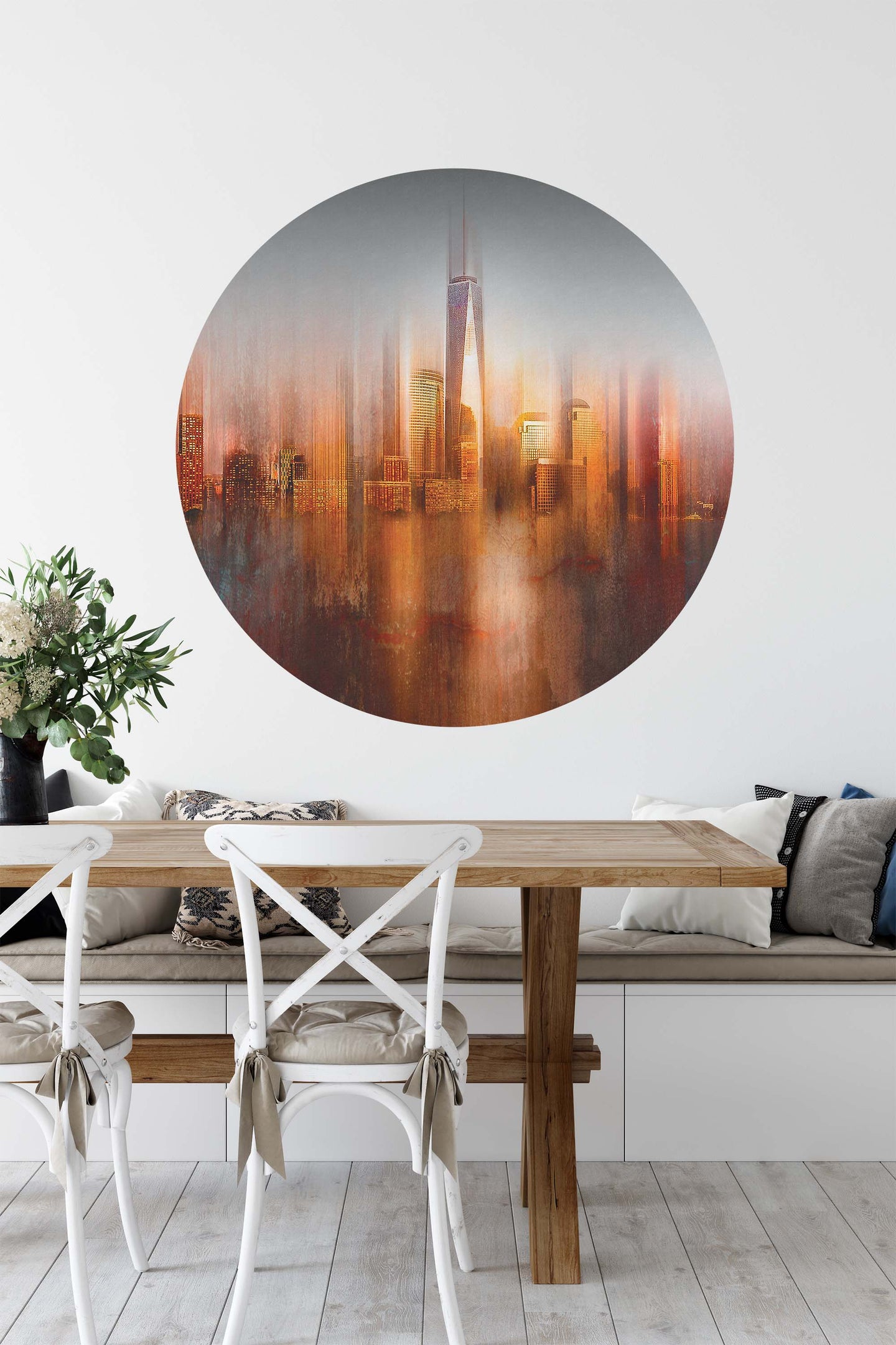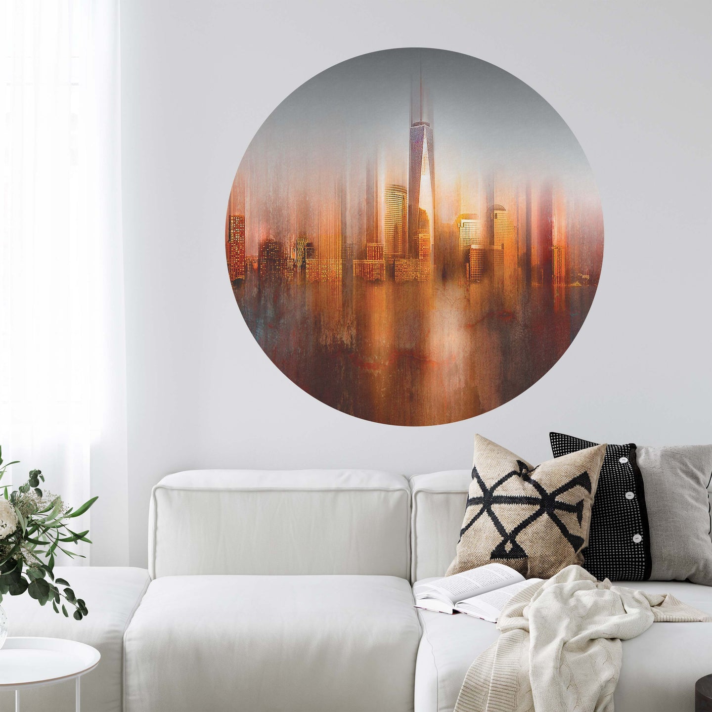 Create a beautiful focal point in your room, with the self-adhesive art circle: 'Behind the Window by Carmine Chiriaco'. Each circle measures an extra-large 100cm in diameter, and is supplied in a single self-adhesive piece. Install on your wall in less than 5 minutes. For each item sold, one tree is planted. This helps to offset carbon released during production and shipping, and to create a net positive contribution over the tree's lifetime. Transform your home, and our planet.