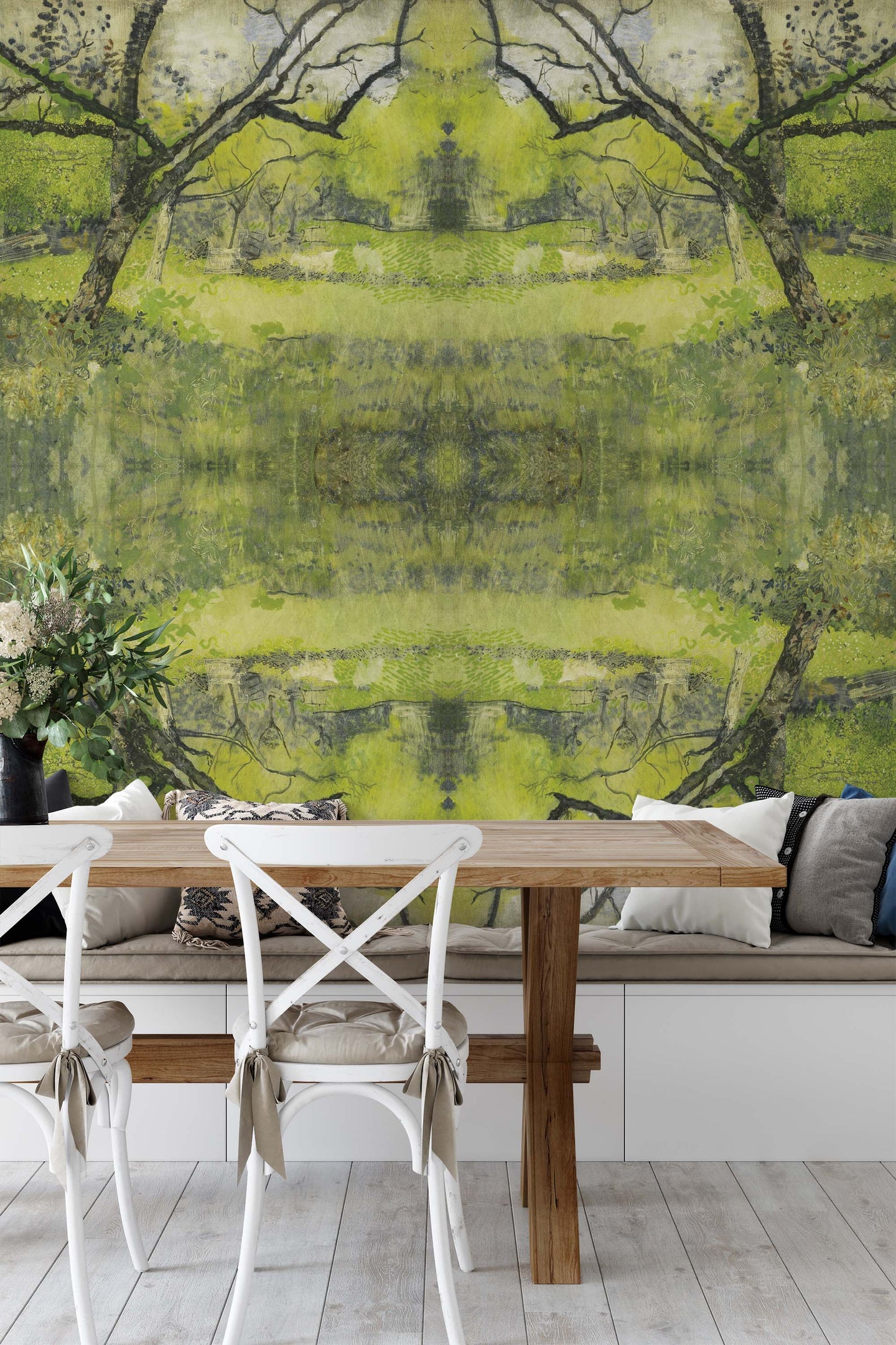 Create an epic focal point in your room, with the fully self-adhesive wallpaper mural: 'The Orchard'. Each wallpaper is available in a choice of 2 sizes; 150cm x 150cm (XL) or 200cm x 200cm (XXL), and is supplied in 2 self-adhesive pieces. Install on your wall in less than 15 minutes. For each item sold, one tree is planted. This helps to offset carbon released during production and shipping, and to create a net positive contribution over the tree's lifetime. Transform your home, and our planet.