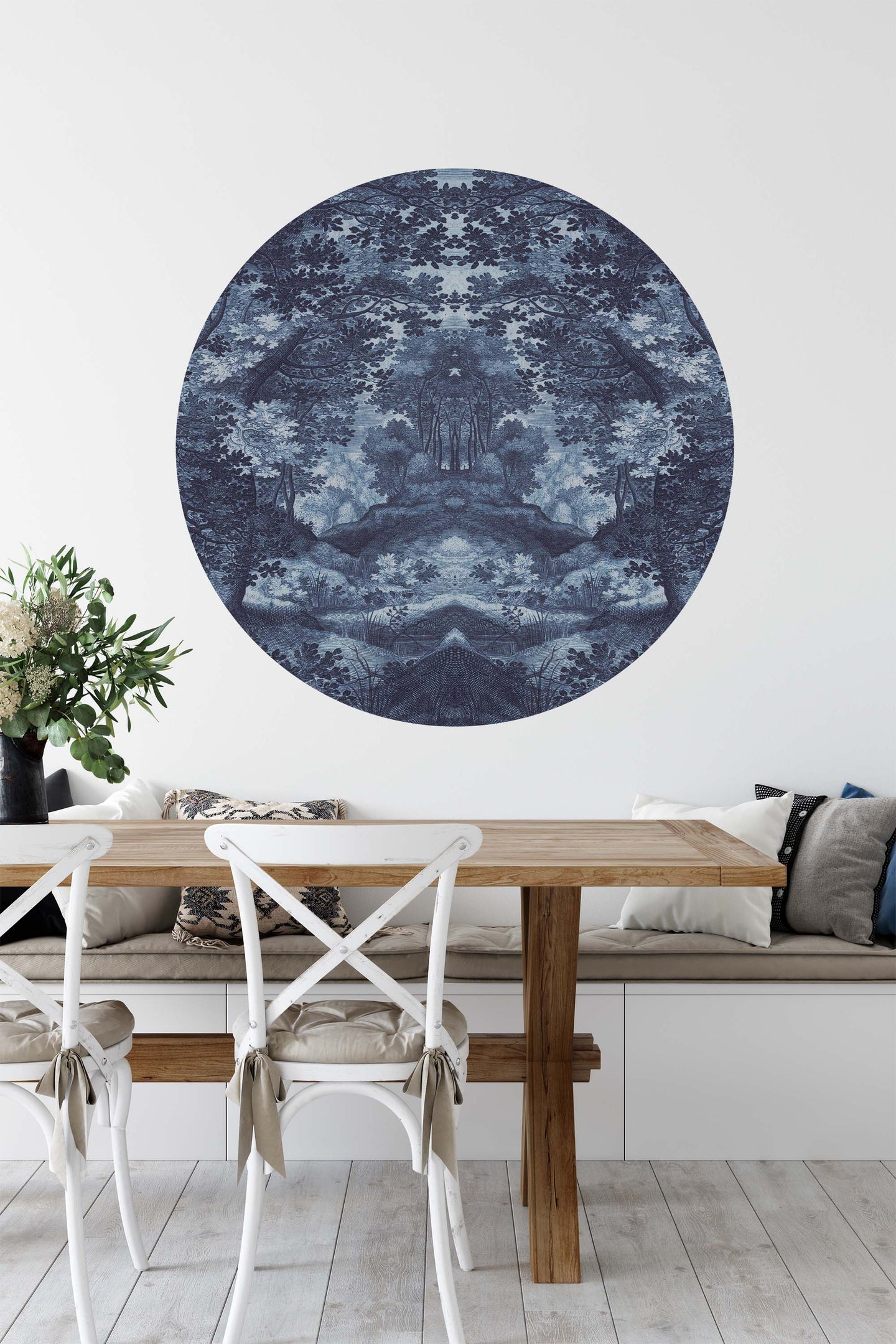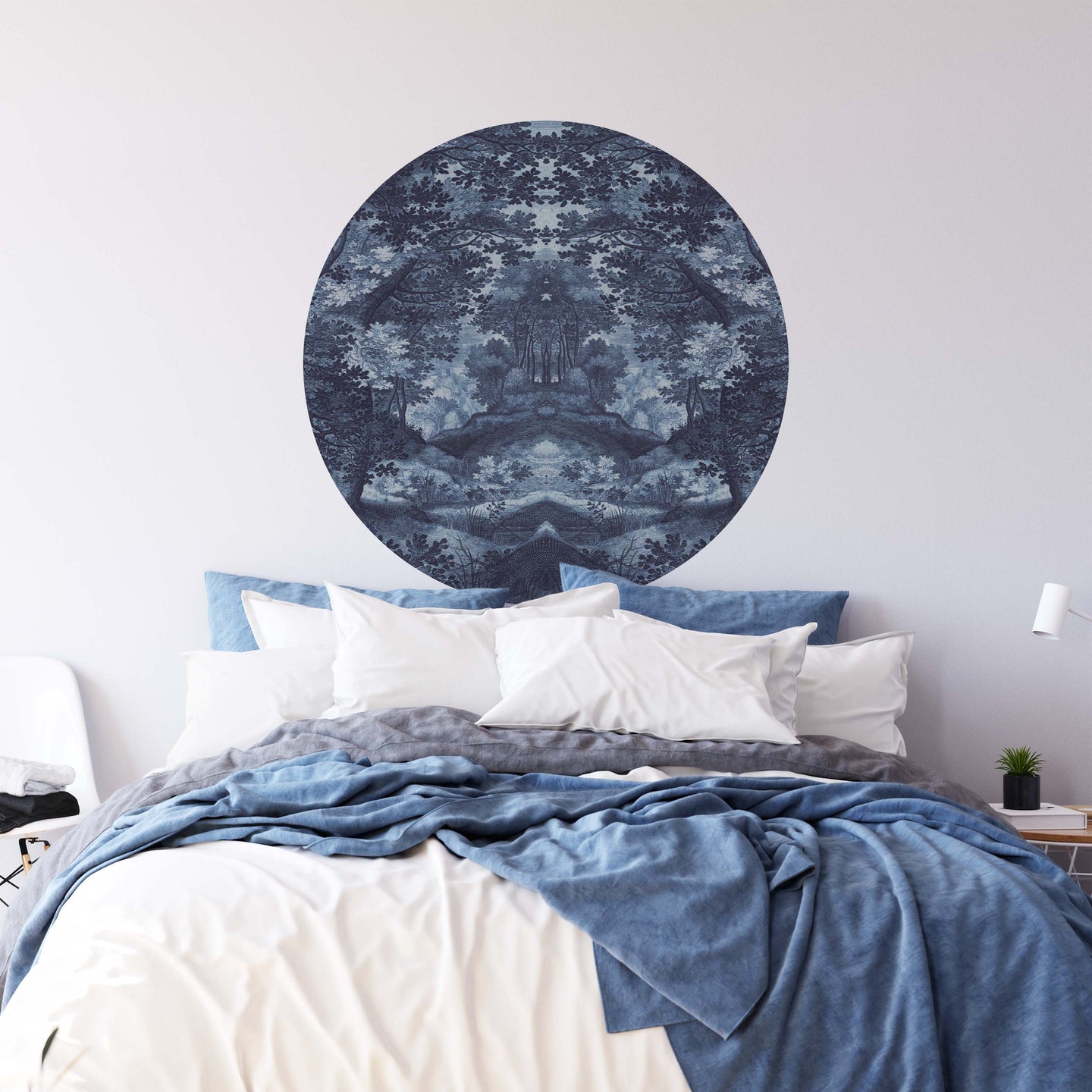 Create a beautiful focal point in your room, with the self-adhesive art circle: 'Into the Forest in Blue'. Each circle measures an extra-large 100cm in diameter, and is supplied in a single self-adhesive piece. Install on your wall in less than 5 minutes. For each item sold, one tree is planted. This helps to offset carbon released during production and shipping, and to create a net positive contribution over the tree's lifetime. Transform your home, and our planet.