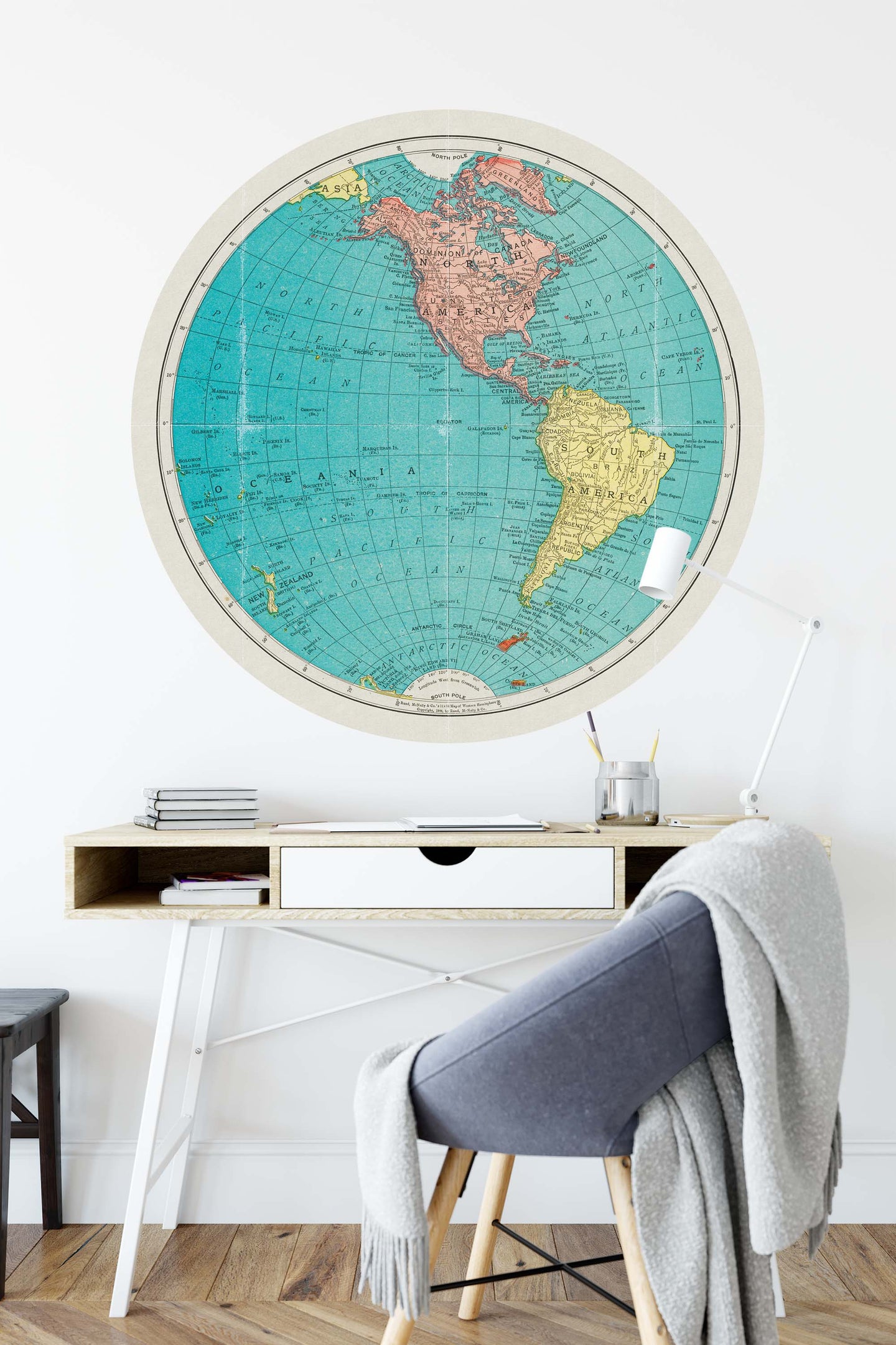 Create a beautiful focal point in your room, with the self-adhesive art circle: 'L'hémisphère ouest'. Each circle measures an extra-large 100cm in diameter, and is supplied in a single self-adhesive piece. Install on your wall in less than 5 minutes. For each item sold, one tree is planted. This helps to offset carbon released during production and shipping, and to create a net positive contribution over the tree's lifetime. Transform your home, and our planet.