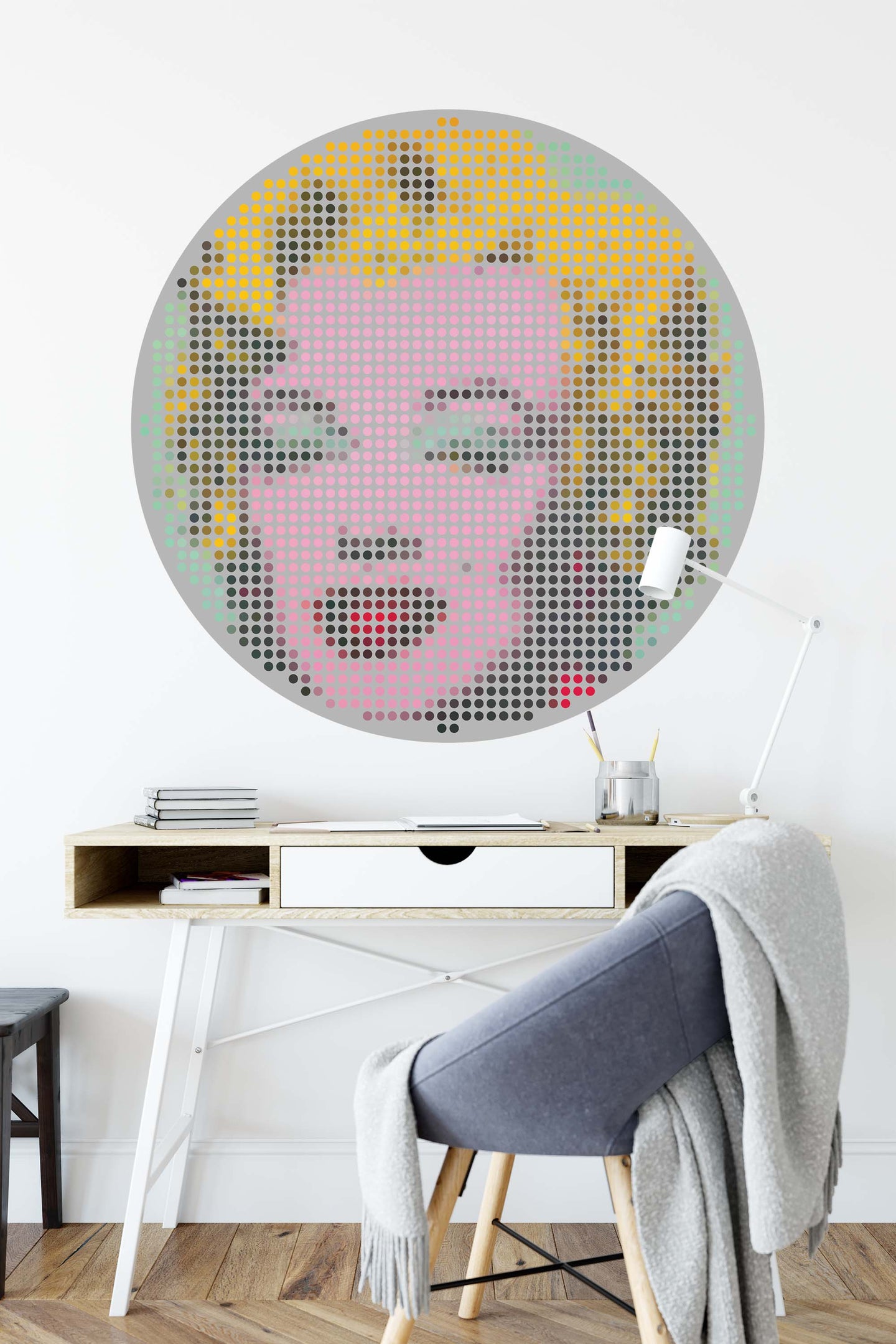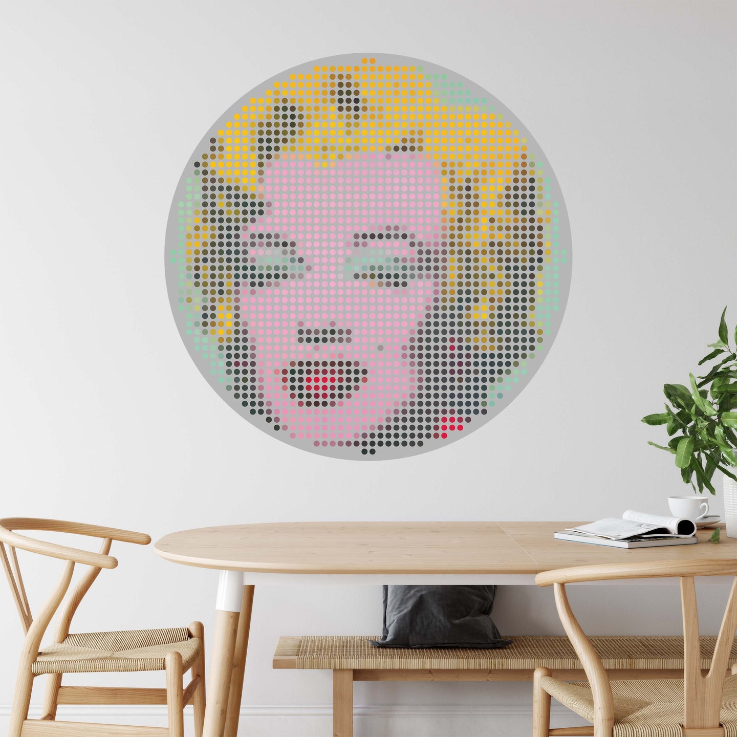 Create a beautiful focal point in your room, with the self-adhesive art circle: 'Iconiq Marilyn'. Each circle measures an extra-large 100cm in diameter, and is supplied in a single self-adhesive piece. Install on your wall in less than 5 minutes. For each item sold, one tree is planted. This helps to offset carbon released during production and shipping, and to create a net positive contribution over the tree's lifetime. Transform your home, and our planet.