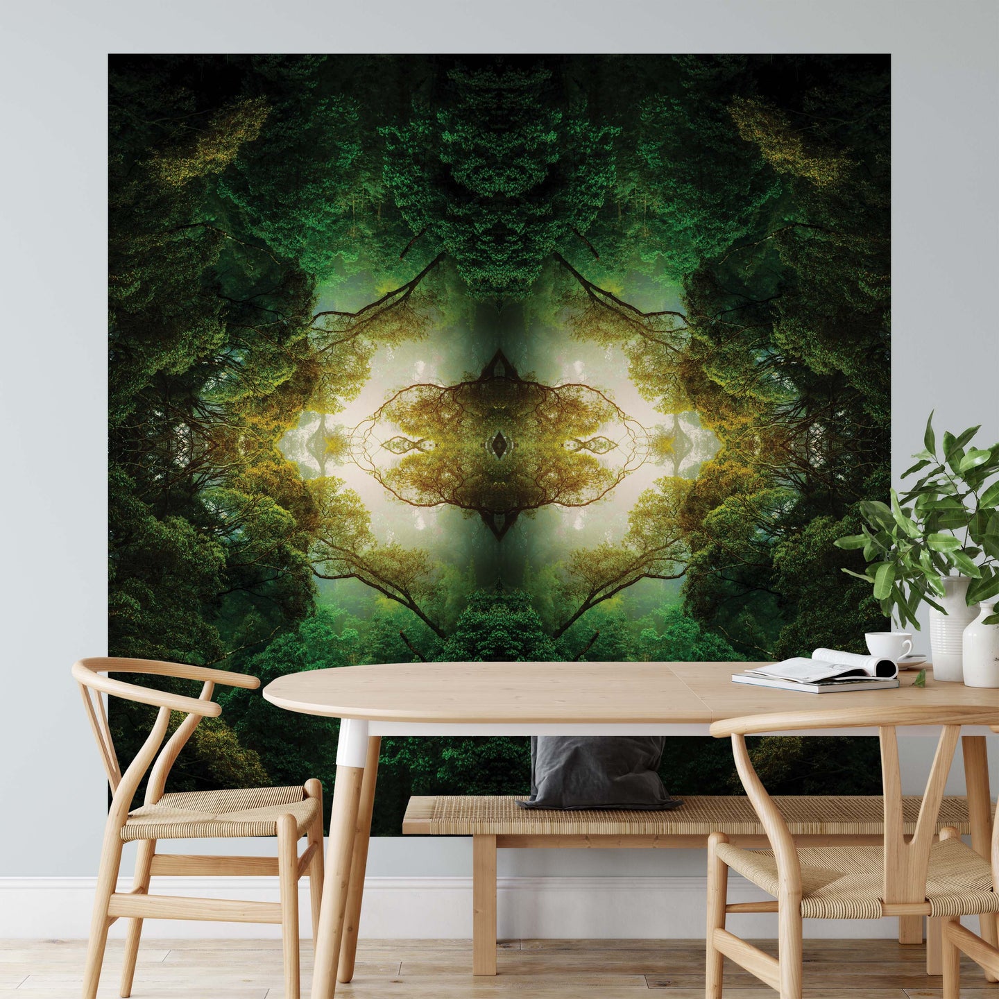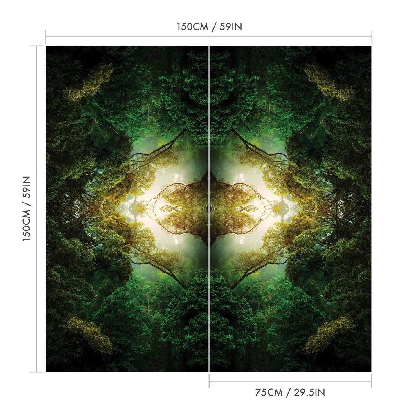 Create an epic focal point in your room, with the fully self-adhesive wallpaper mural: 'Forest Depths'. Each wallpaper is available in a choice of 2 sizes; 150cm x 150cm (XL) or 200cm x 200cm (XXL), and is supplied in 2 self-adhesive pieces. Install on your wall in less than 15 minutes. For each item sold, one tree is planted. This helps to offset carbon released during production and shipping, and to create a net positive contribution over the tree's lifetime. Transform your home, and our planet.