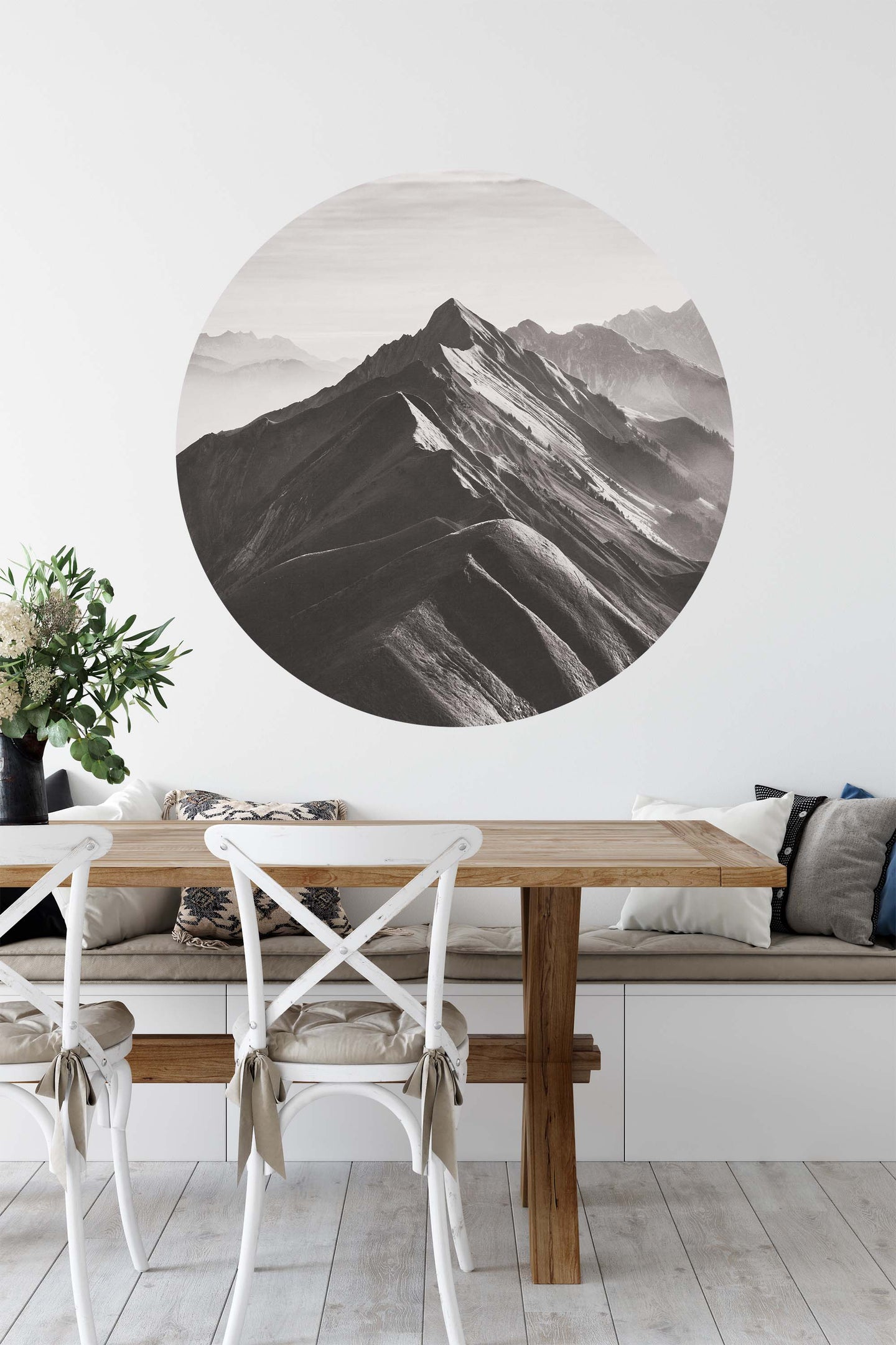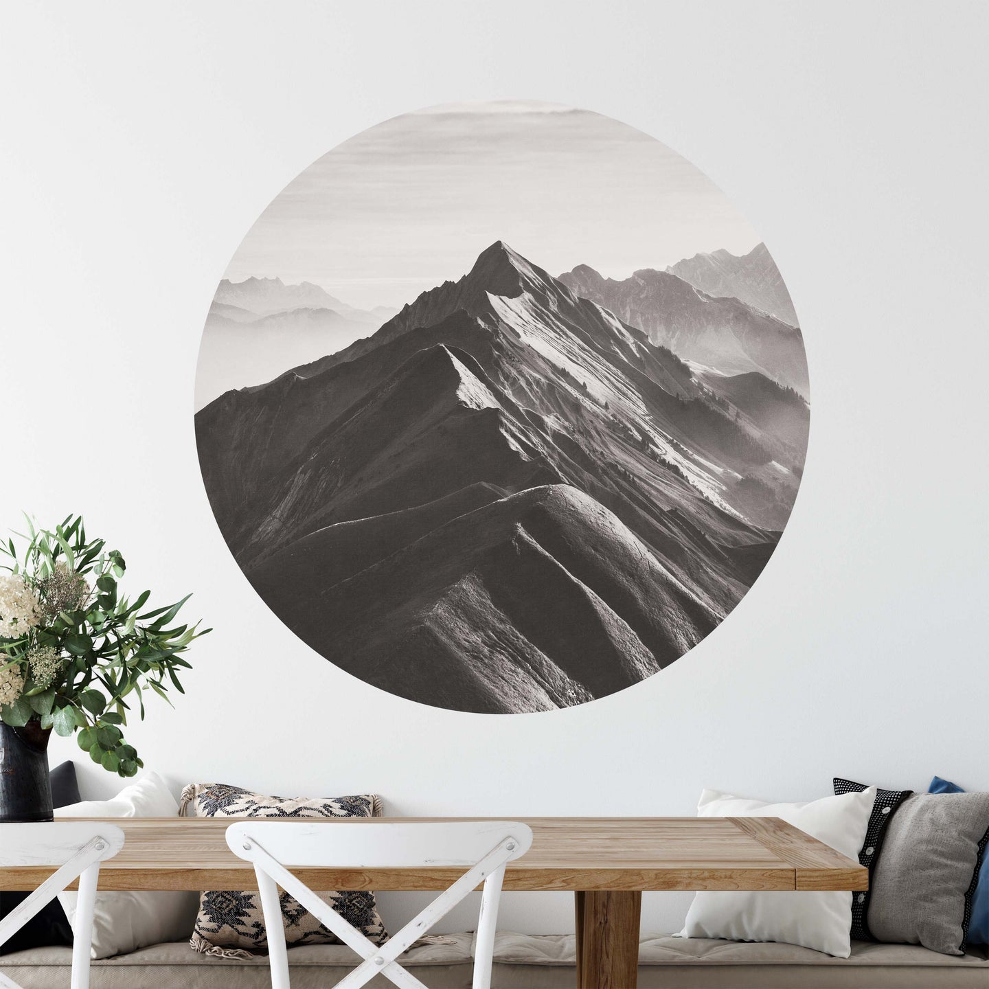 Create a beautiful focal point in your room, with the self-adhesive art circle: 'The Peak'. Each circle measures an extra-large 100cm in diameter, and is supplied in a single self-adhesive piece. Install on your wall in less than 5 minutes. For each item sold, one tree is planted. This helps to offset carbon released during production and shipping, and to create a net positive contribution over the tree's lifetime. Transform your home, and our planet.