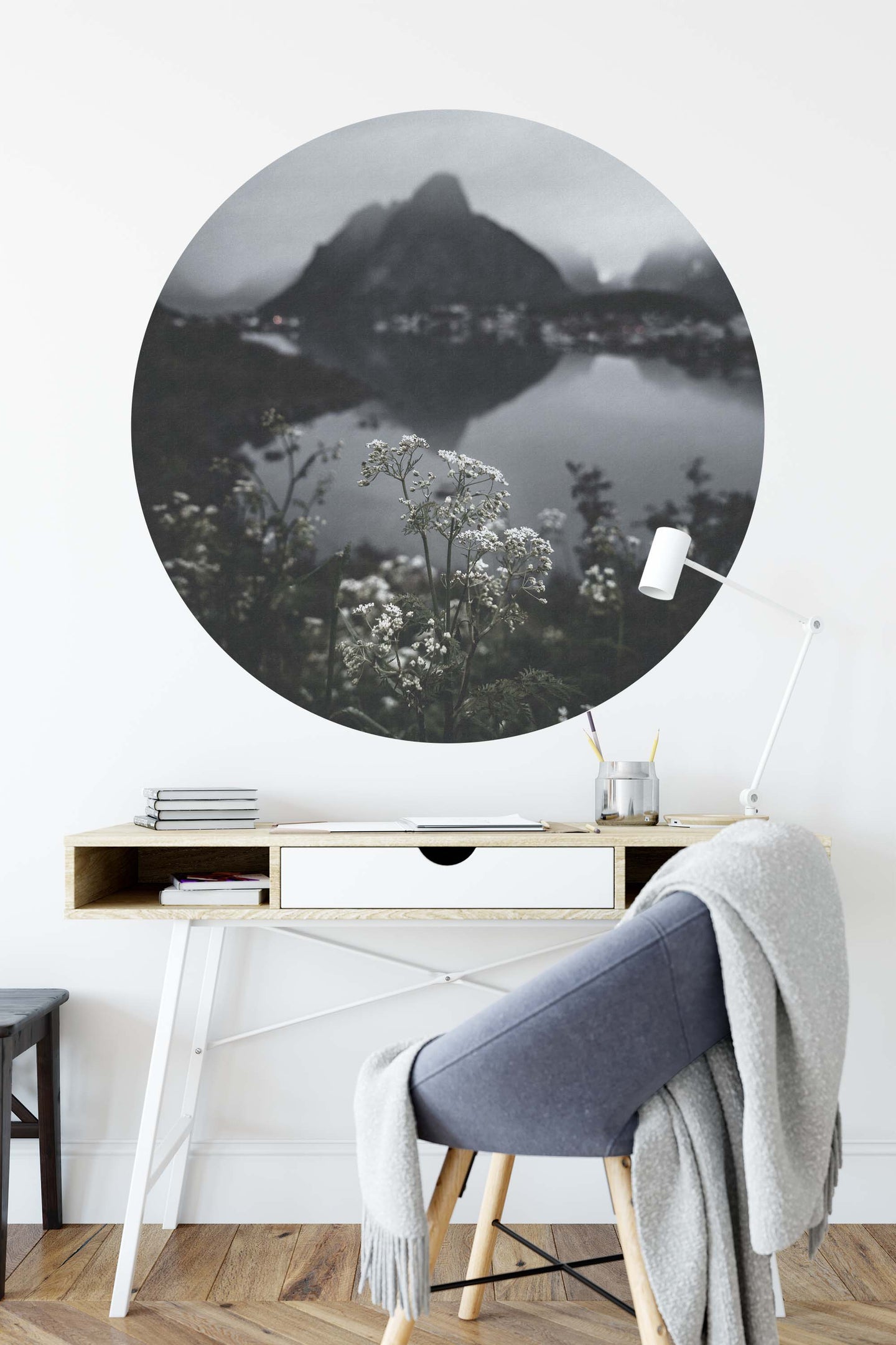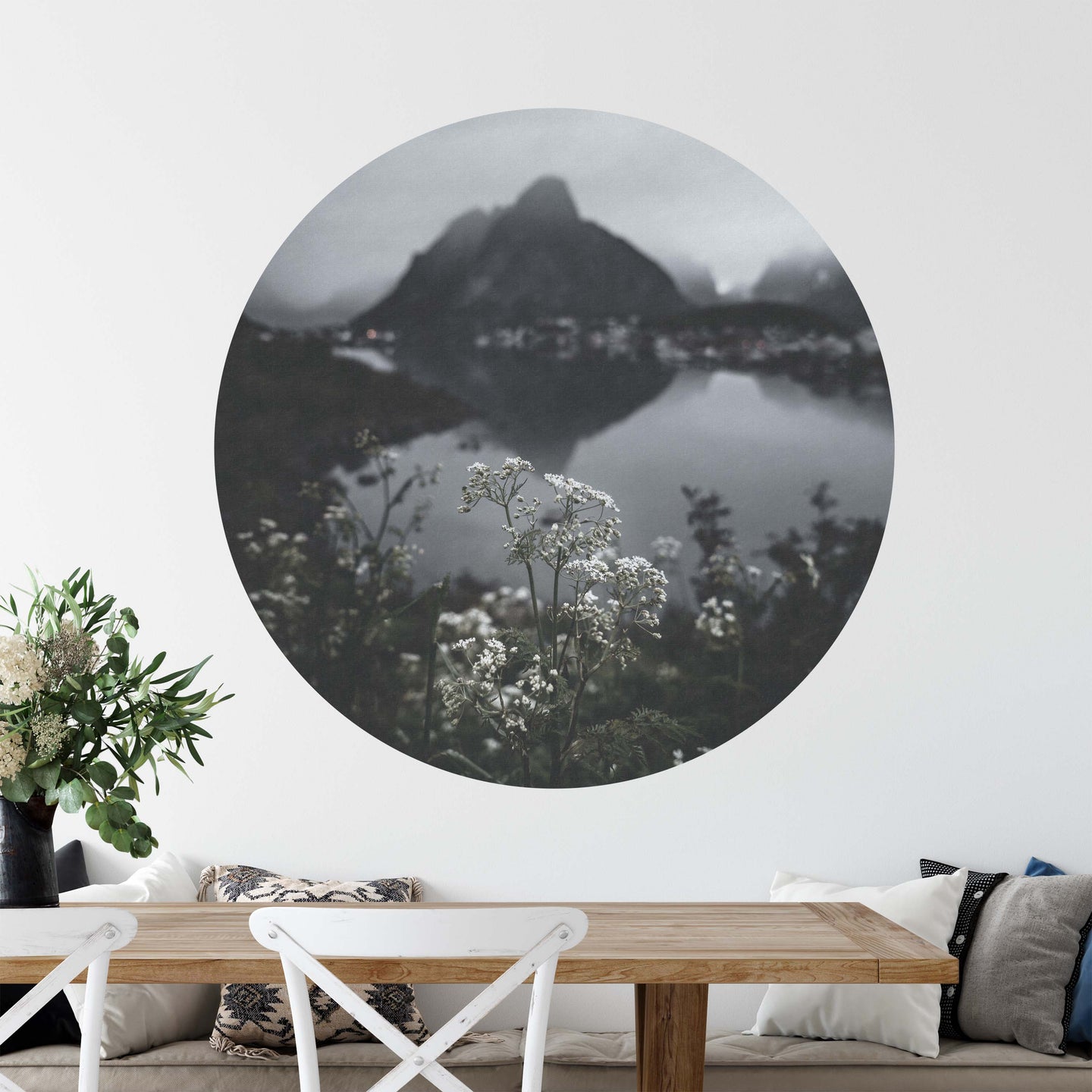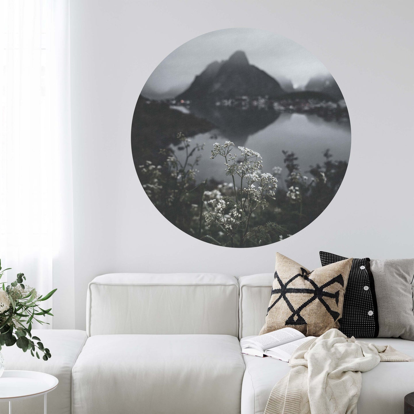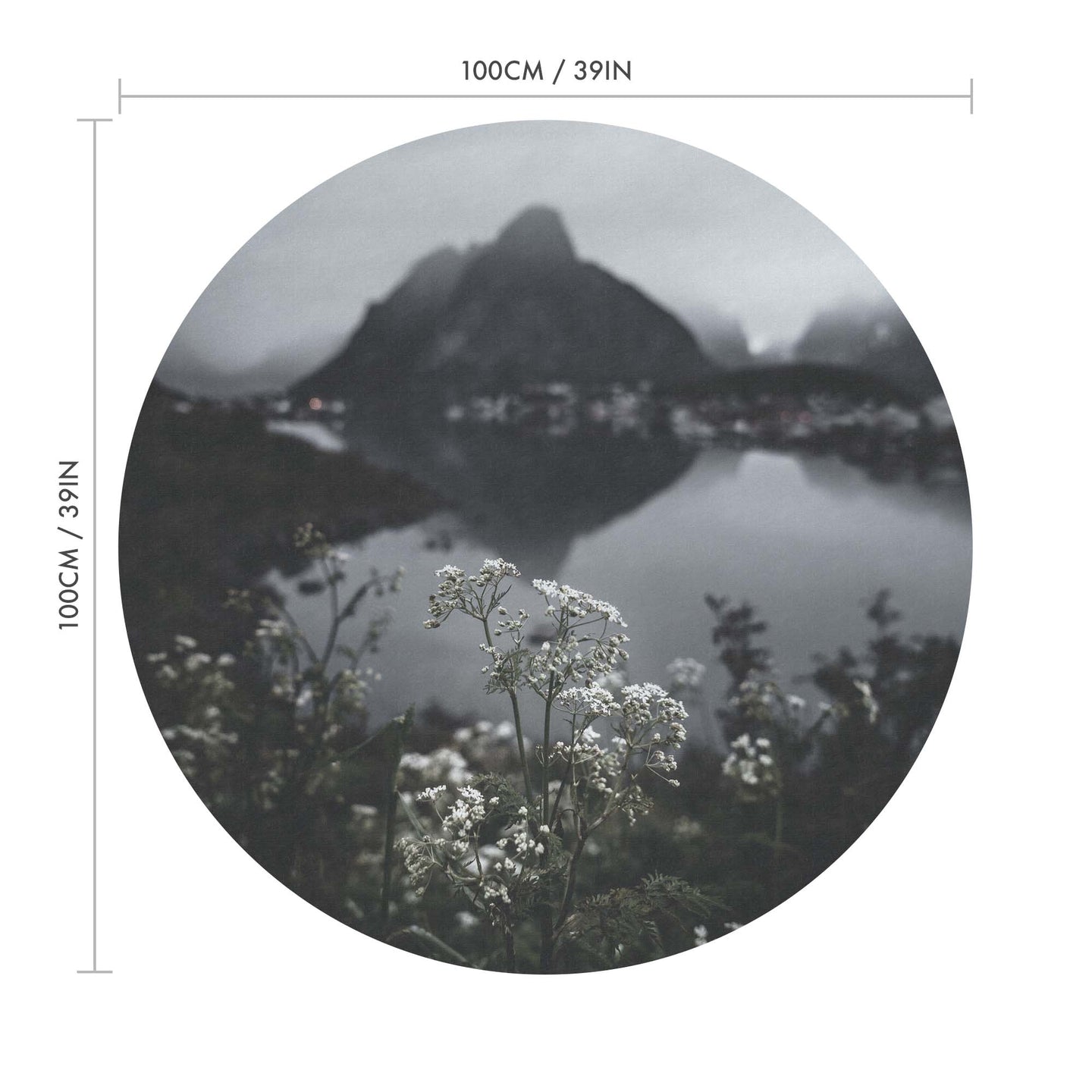 Create a beautiful focal point in your room, with the self-adhesive art circle: 'The Lake at the top of the World'. Each circle measures an extra-large 100cm in diameter, and is supplied in a single self-adhesive piece. Install on your wall in less than 5 minutes. For each item sold, one tree is planted. This helps to offset carbon released during production and shipping, and to create a net positive contribution over the tree's lifetime. Transform your home, and our planet.
