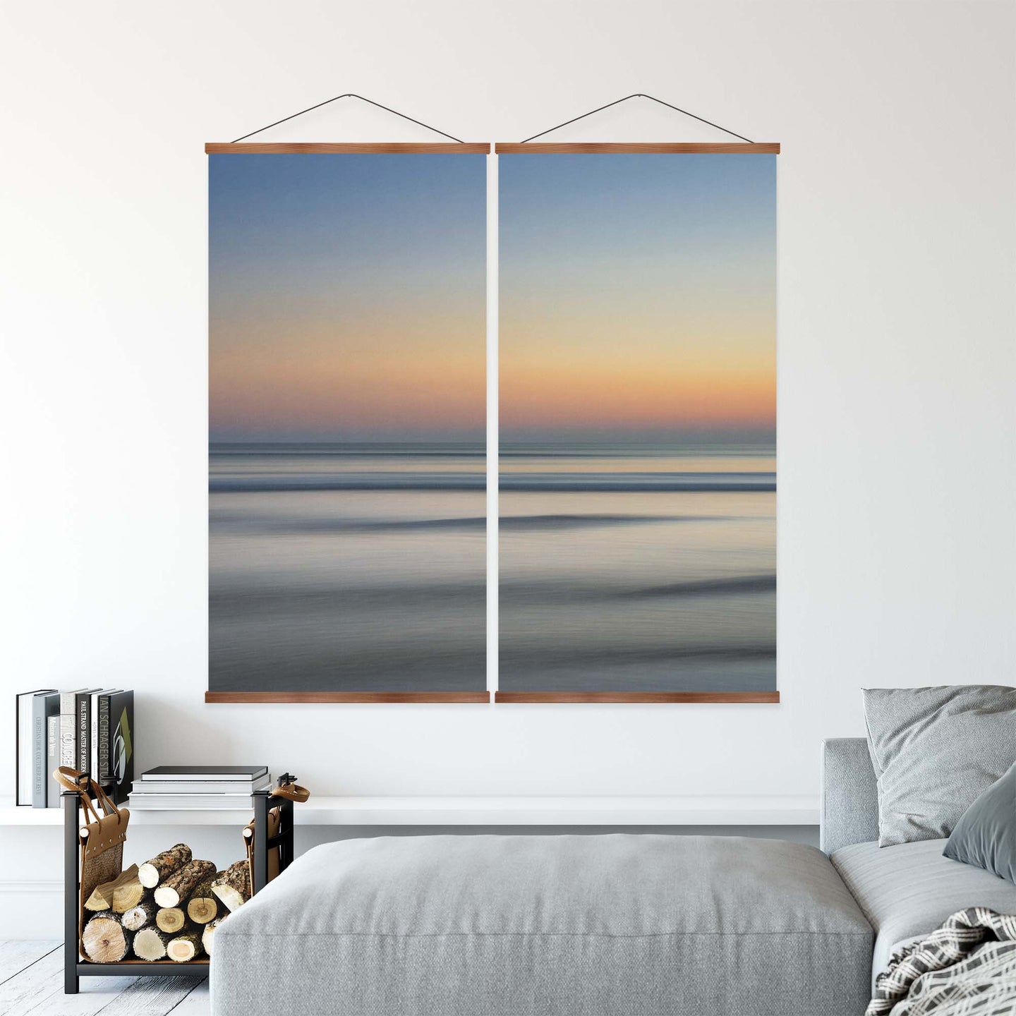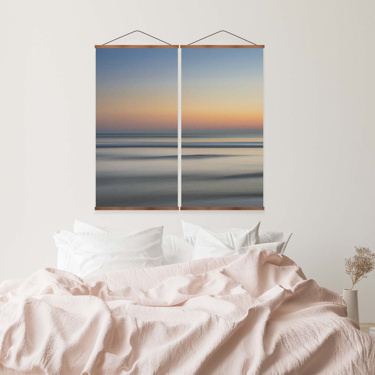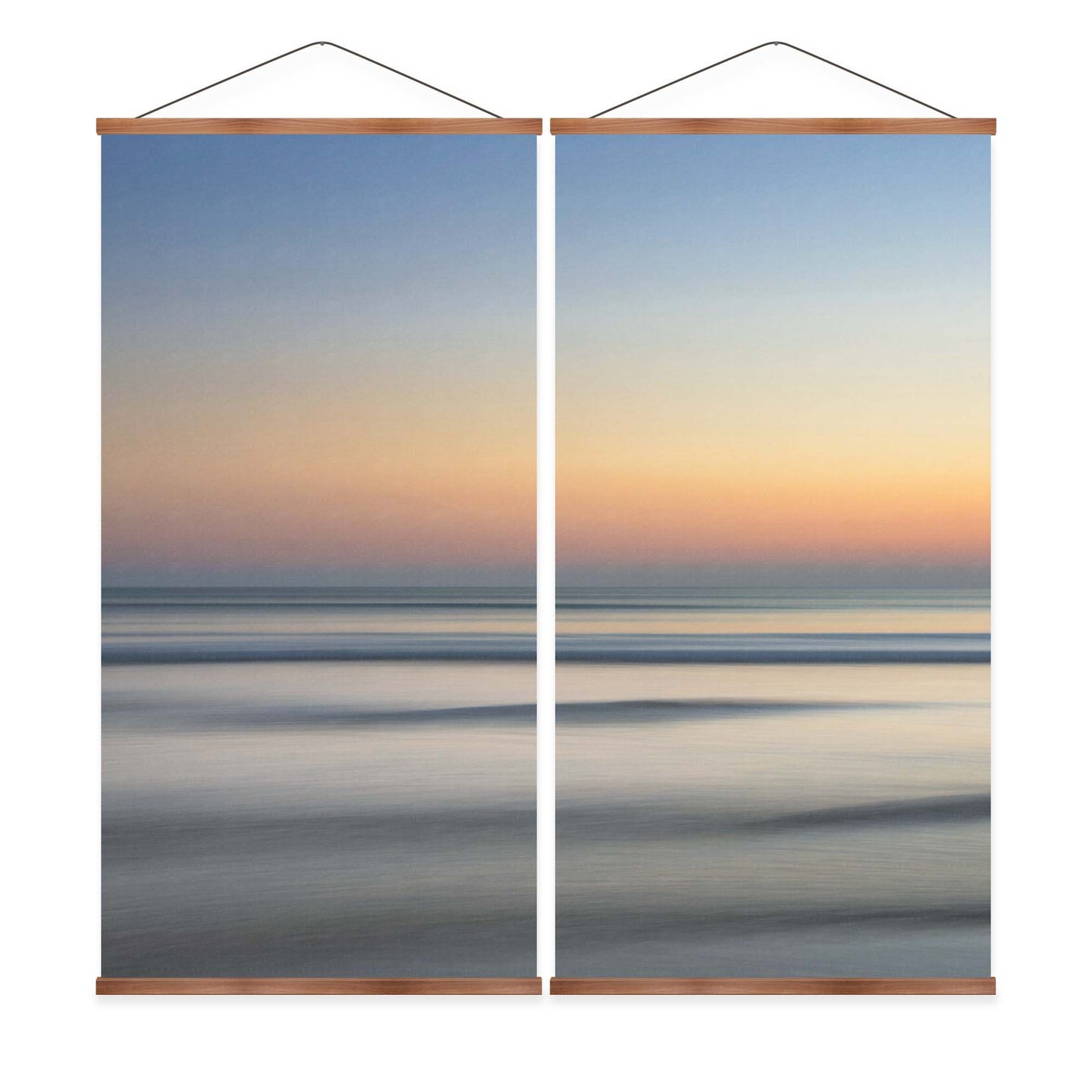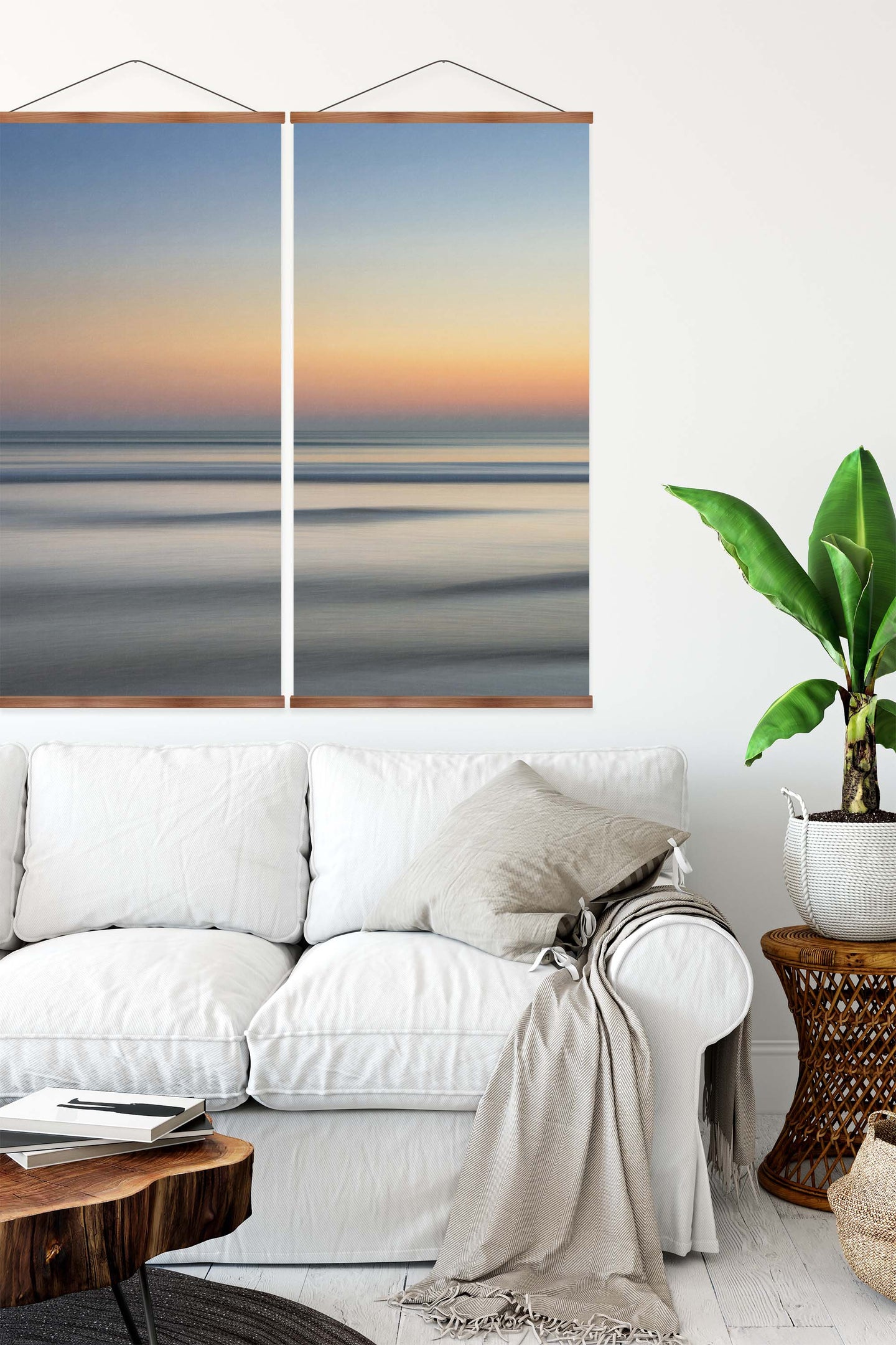 Create an instant room transformation, with the canvas tapestry print: 'Ombregraphic Sunset'. Printed on luxury 260g canvas, Tapestro canvas tapestries hang from magnetic wooden holders, in either teak or black wood. Supplied with a teak hanger. This print measures: 120cm x 120cm (47in x 47in). Supplied in: 2 Panels. For each item sold, one tree is planted. This helps to offset carbon released during production and shipping, and to create a net positive contribution over the tree's lifetime. Transform your home, and our planet.