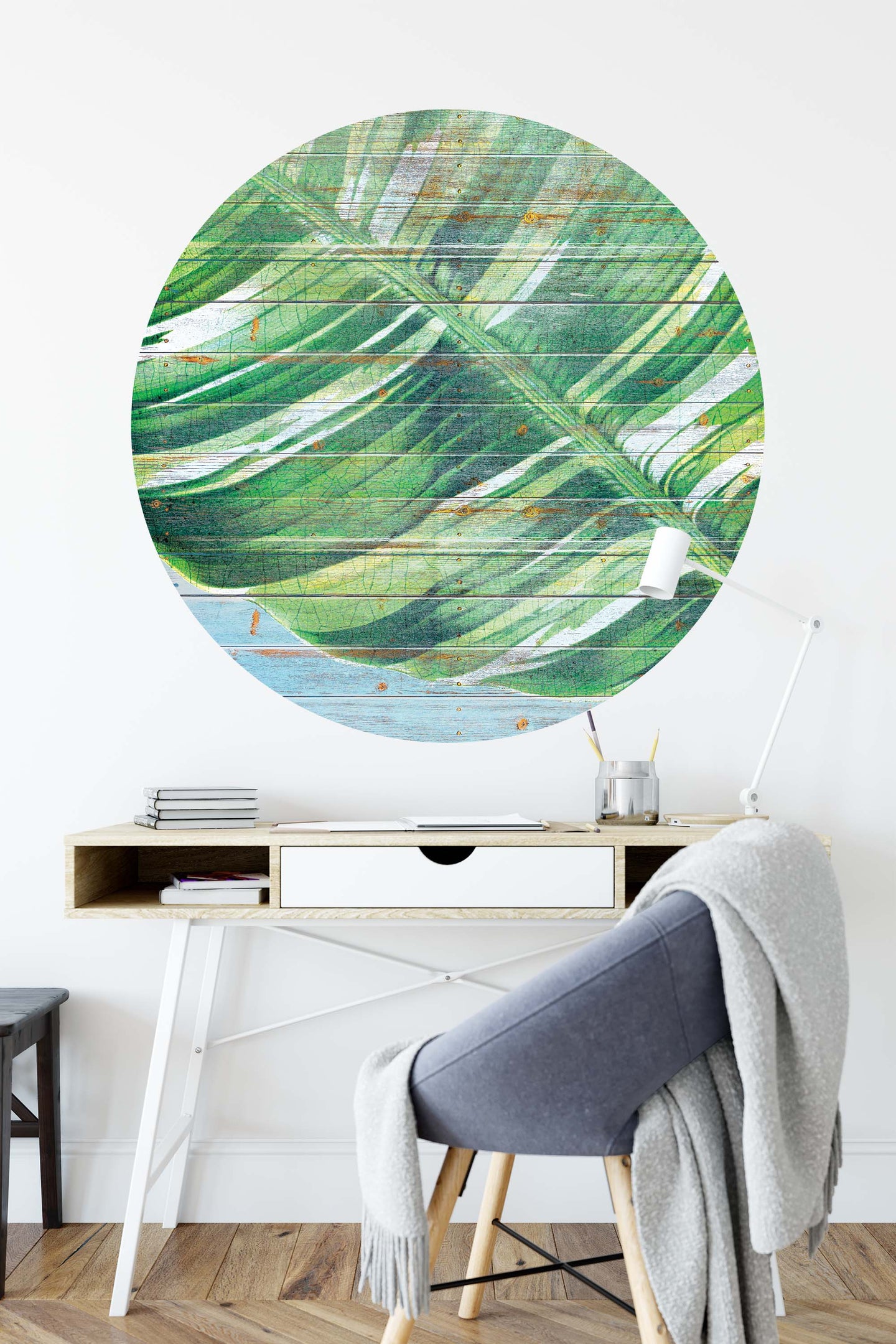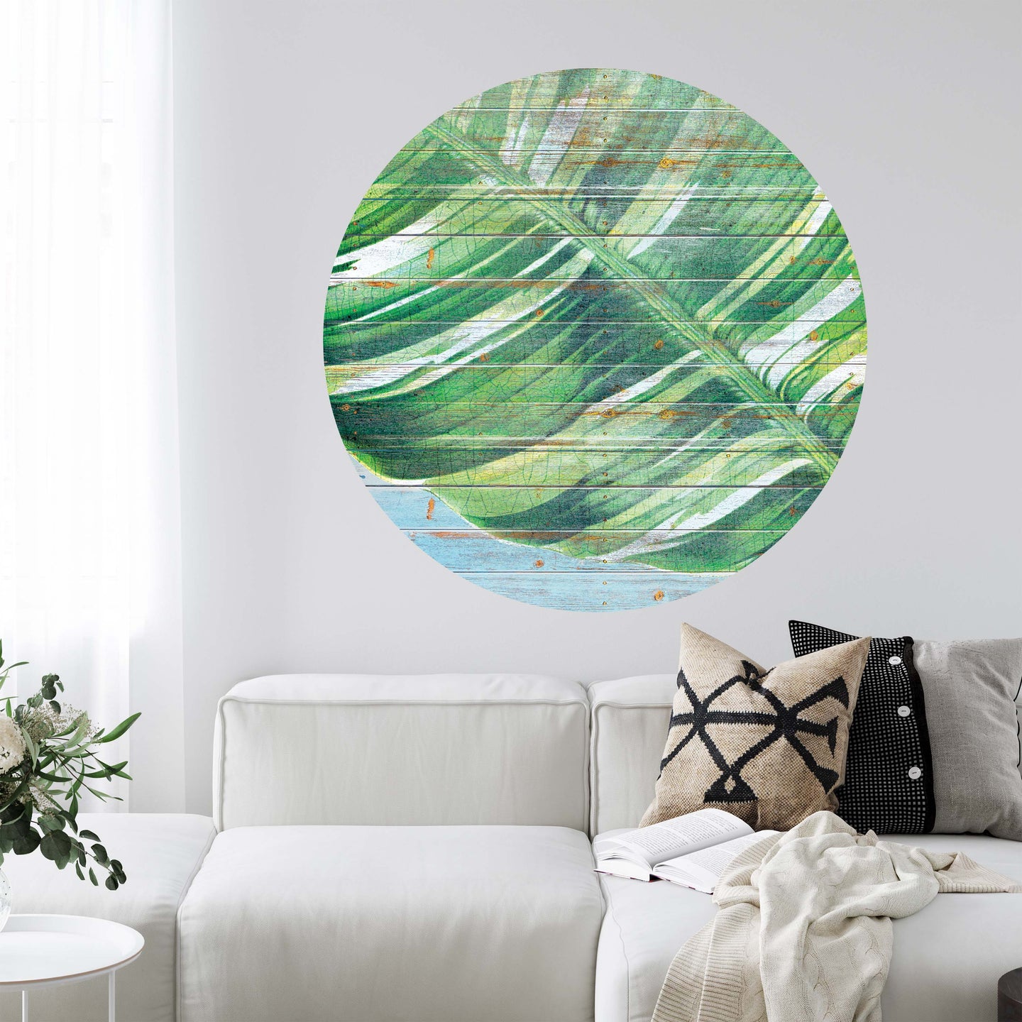 Create a beautiful focal point in your room, with the self-adhesive art circle: 'Island Planks'. Each circle measures an extra-large 100cm in diameter, and is supplied in a single self-adhesive piece. Install on your wall in less than 5 minutes. For each item sold, one tree is planted. This helps to offset carbon released during production and shipping, and to create a net positive contribution over the tree's lifetime. Transform your home, and our planet.