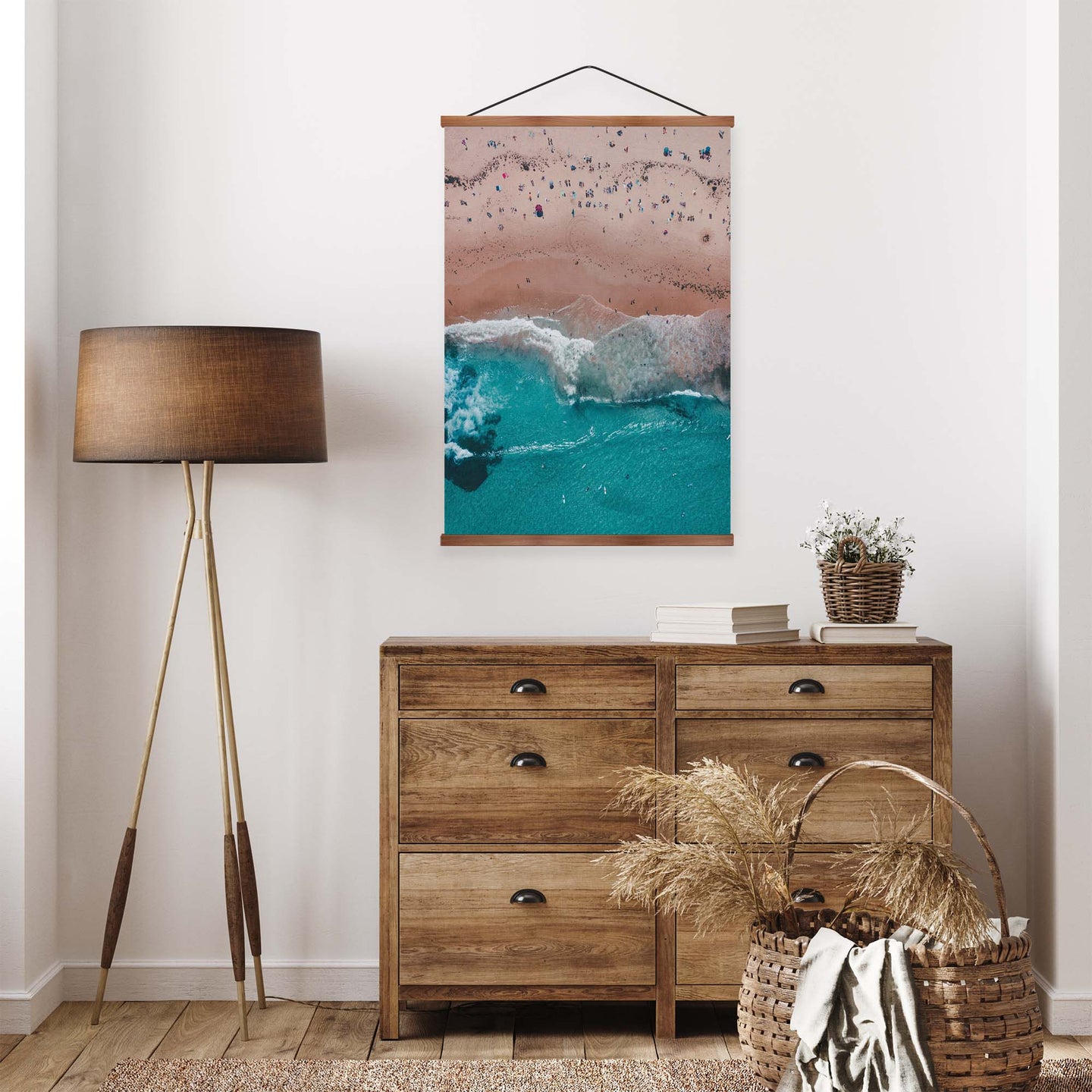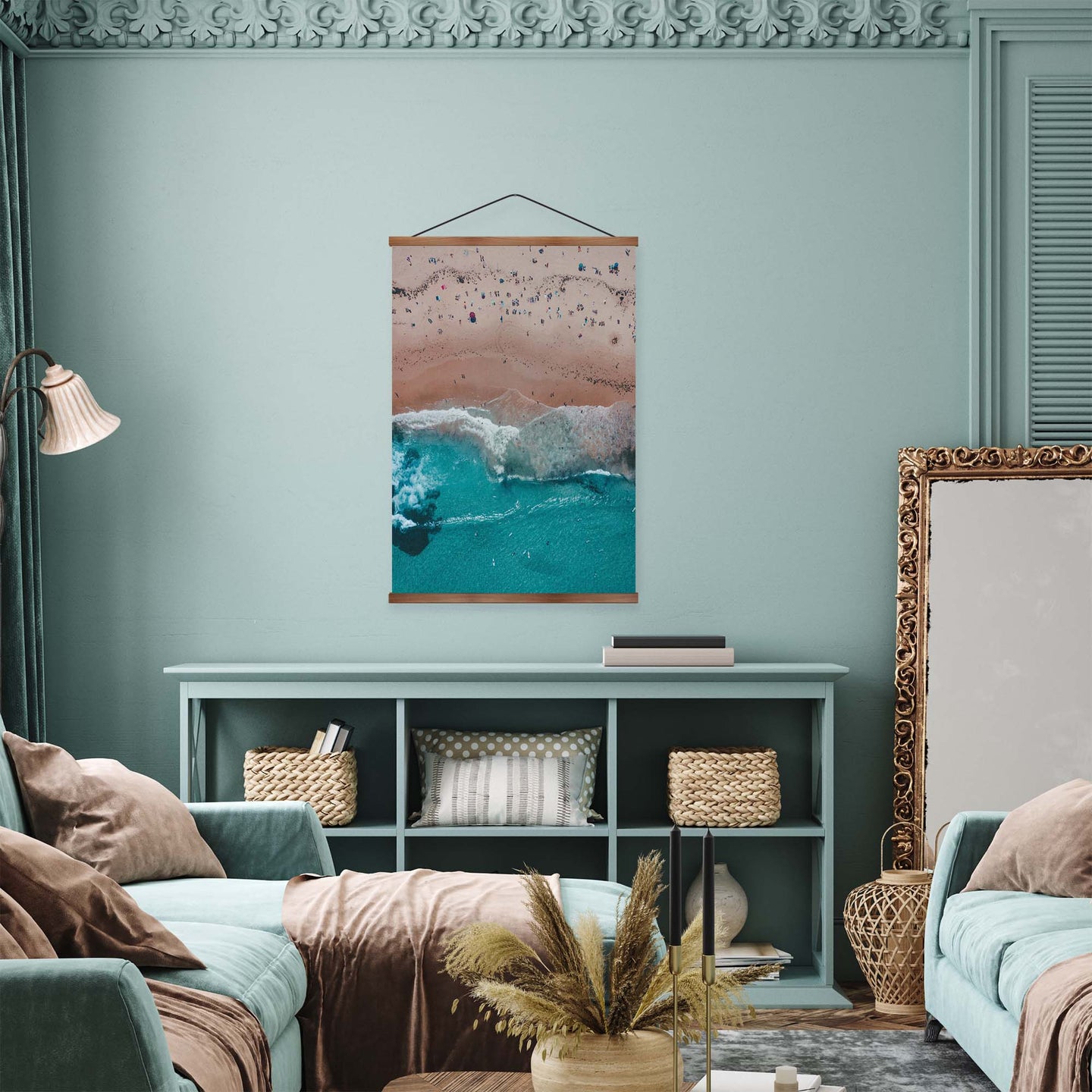 Create an instant room transformation, with the canvas tapestry print: 'Beach Layers I'. Printed on luxury 260g canvas, Tapestro canvas tapestries hang from magnetic wooden holders, in either teak or black wood. Supplied with a teak hanger. This print measures: 60cm x 90cm (24in x 36in). For each item sold, one tree is planted. This helps to offset carbon released during production and shipping, and to create a net positive contribution over the tree's lifetime. Transform your home, and our planet.