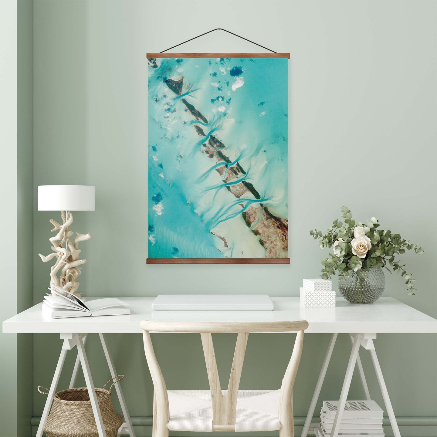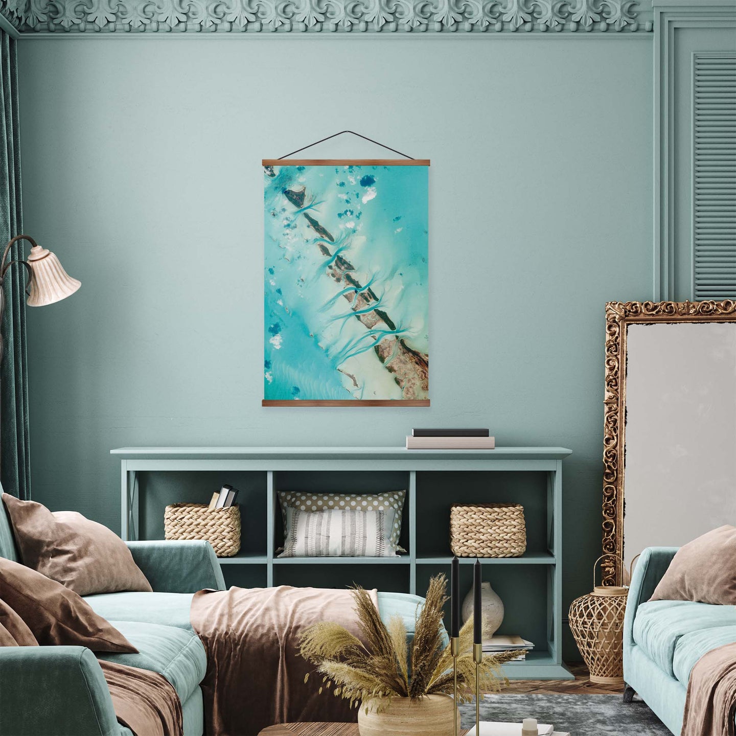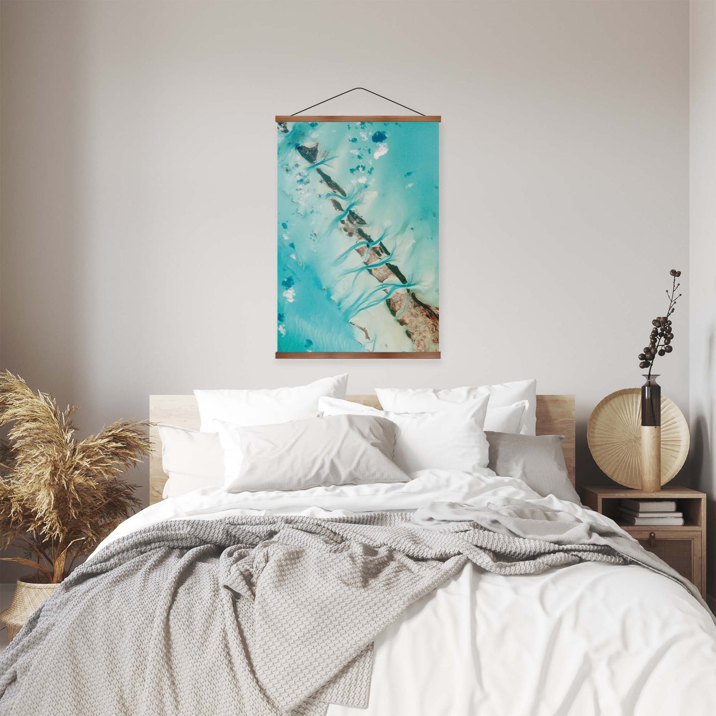Create an instant room transformation, with the canvas tapestry print: 'The Breaker'. Printed on luxury 260g canvas, Tapestro canvas tapestries hang from magnetic wooden holders, in either teak or black wood. Supplied with a teak hanger. This print measures: 60cm x 90cm (24in x 36in). For each item sold, one tree is planted. This helps to offset carbon released during production and shipping, and to create a net positive contribution over the tree's lifetime. Transform your home, and our planet.