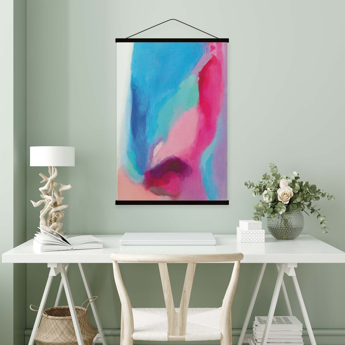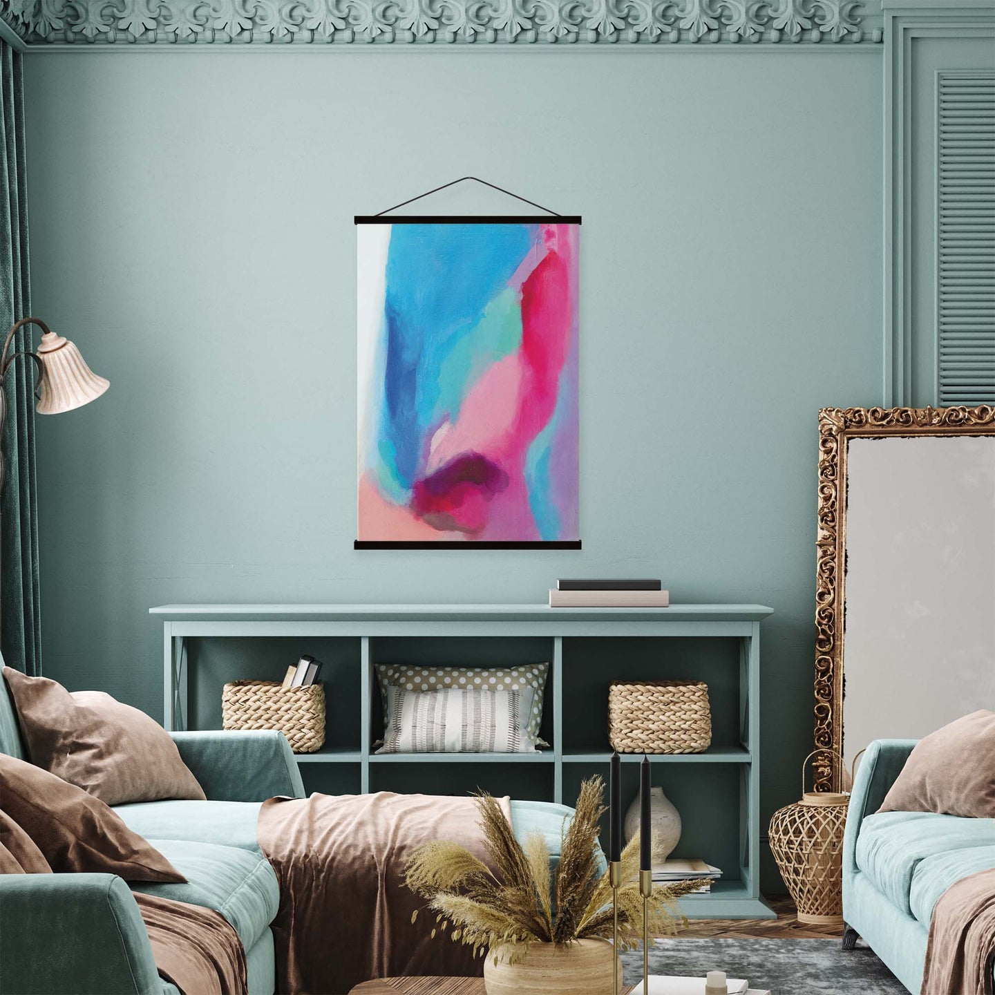 Create an instant room transformation, with the canvas tapestry print: 'Flow'. Printed on luxury 260g canvas, Tapestro canvas tapestries hang from magnetic wooden holders, in either teak or black wood. Supplied with a black hanger. This print measures: 60cm x 90cm (24in x 36in). For each item sold, one tree is planted. This helps to offset carbon released during production and shipping, and to create a net positive contribution over the tree's lifetime. Transform your home, and our planet.