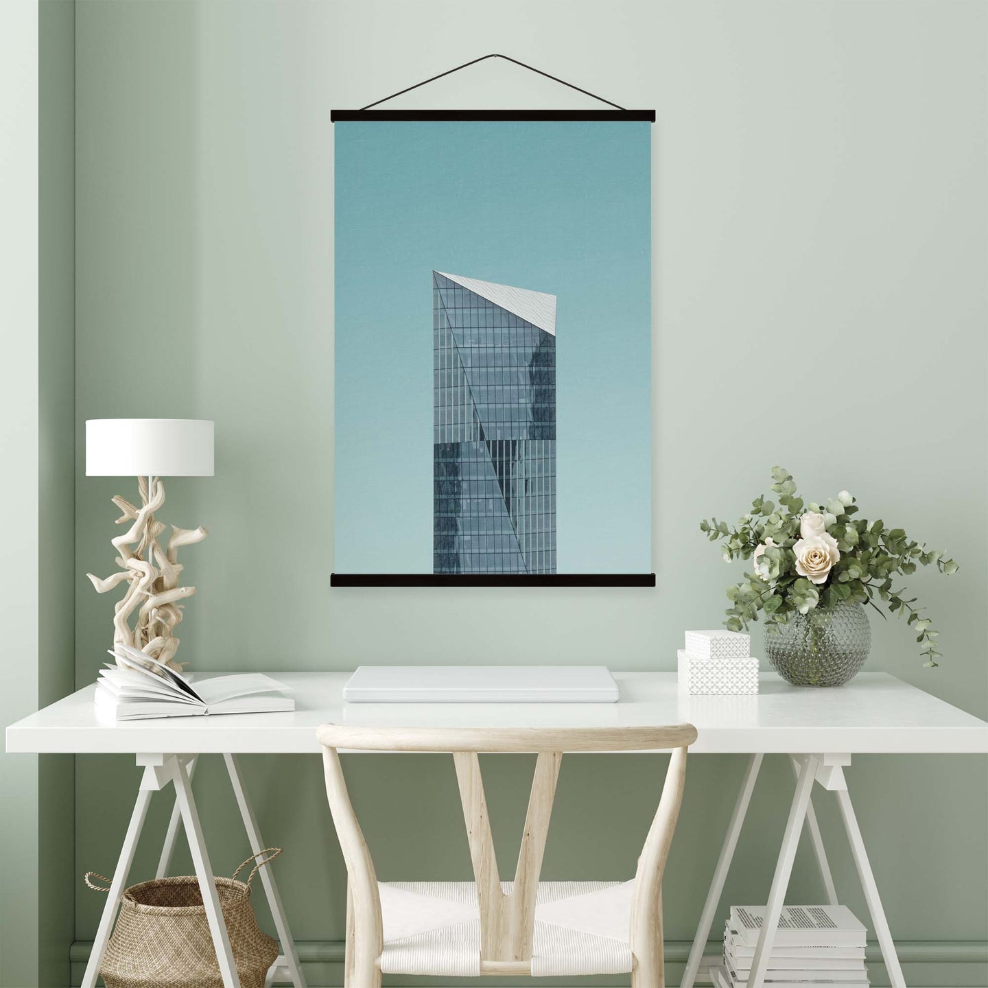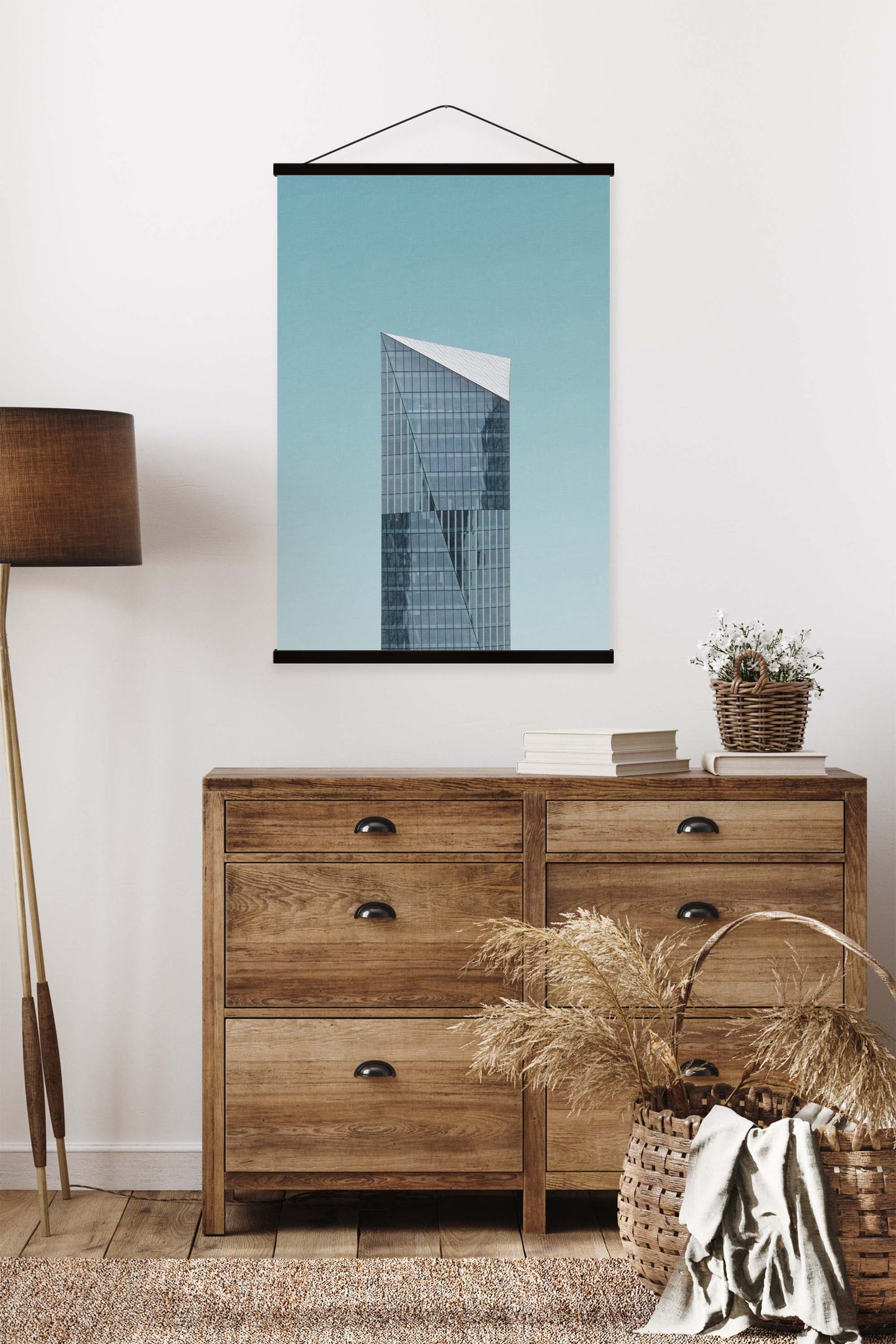 Create an instant room transformation, with the canvas tapestry print: 'Ombrestadt II'. Printed on luxury 260g canvas, Tapestro canvas tapestries hang from magnetic wooden holders, in either teak or black wood. Supplied with a black hanger. This print measures: 60cm x 90cm (24in x 36in). For each item sold, one tree is planted. This helps to offset carbon released during production and shipping, and to create a net positive contribution over the tree's lifetime. Transform your home, and our planet.