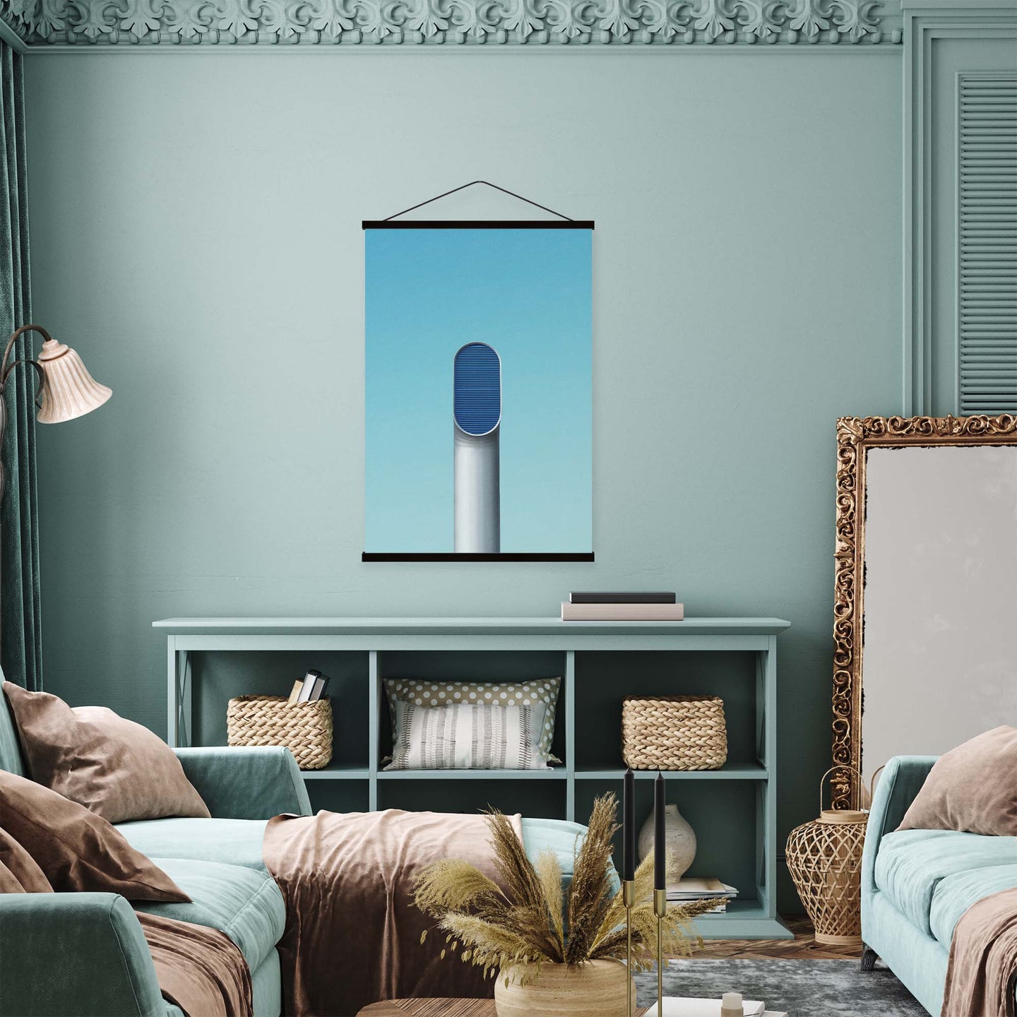 Create an instant room transformation, with the canvas tapestry print: 'Ombrestadt IV'. Printed on luxury 260g canvas, Tapestro canvas tapestries hang from magnetic wooden holders, in either teak or black wood. Supplied with a black hanger. This print measures: 60cm x 90cm (24in x 36in). For each item sold, one tree is planted. This helps to offset carbon released during production and shipping, and to create a net positive contribution over the tree's lifetime. Transform your home, and our planet.