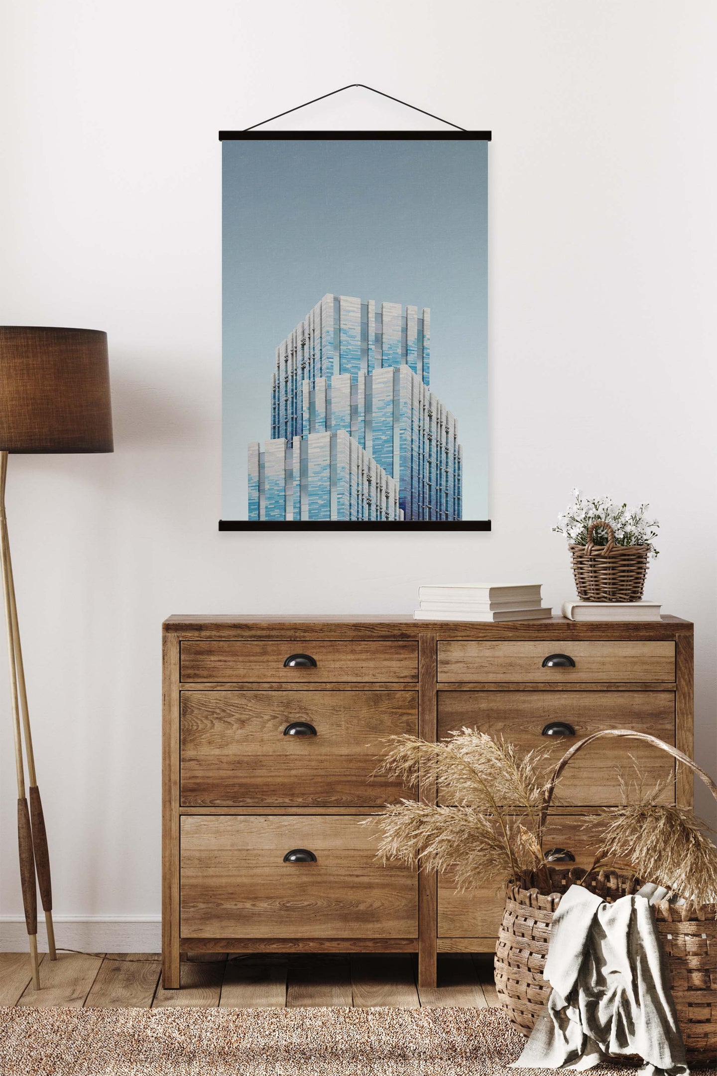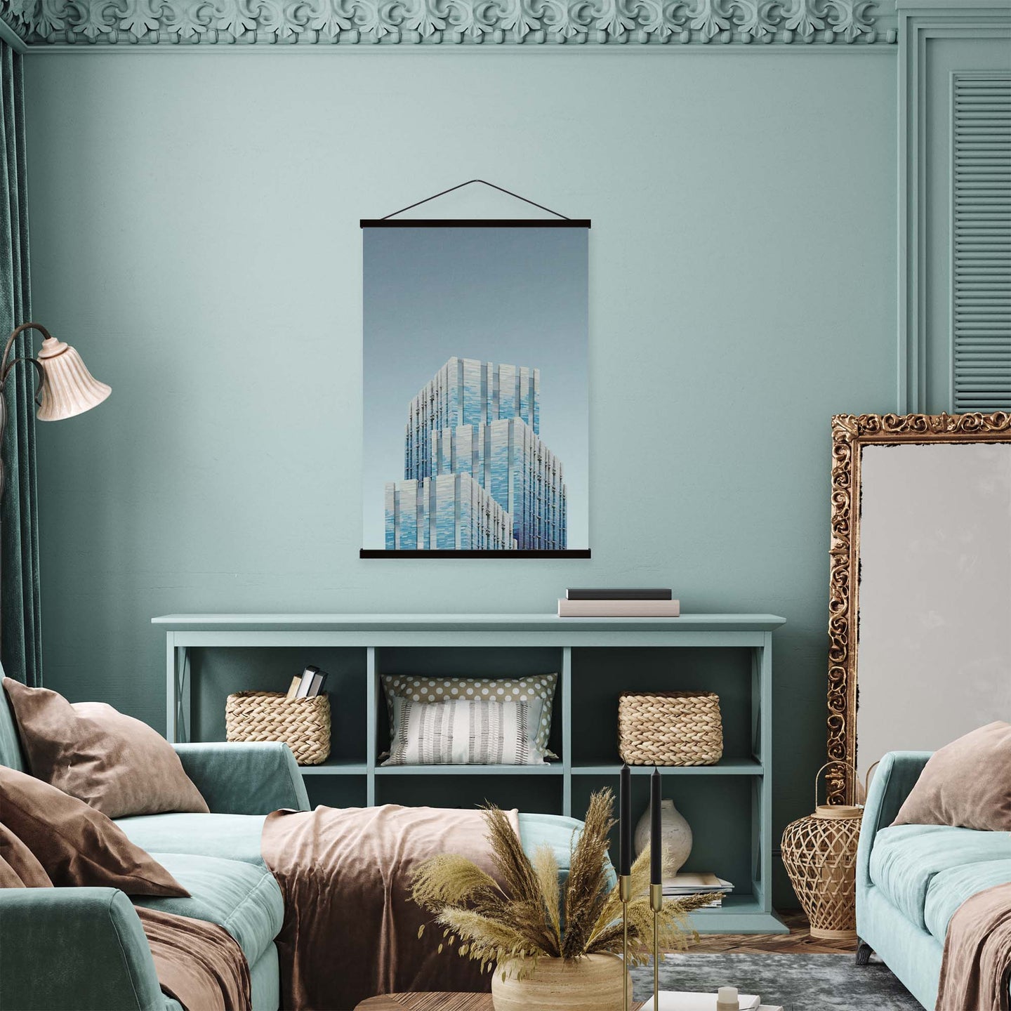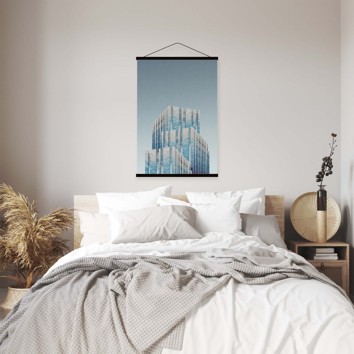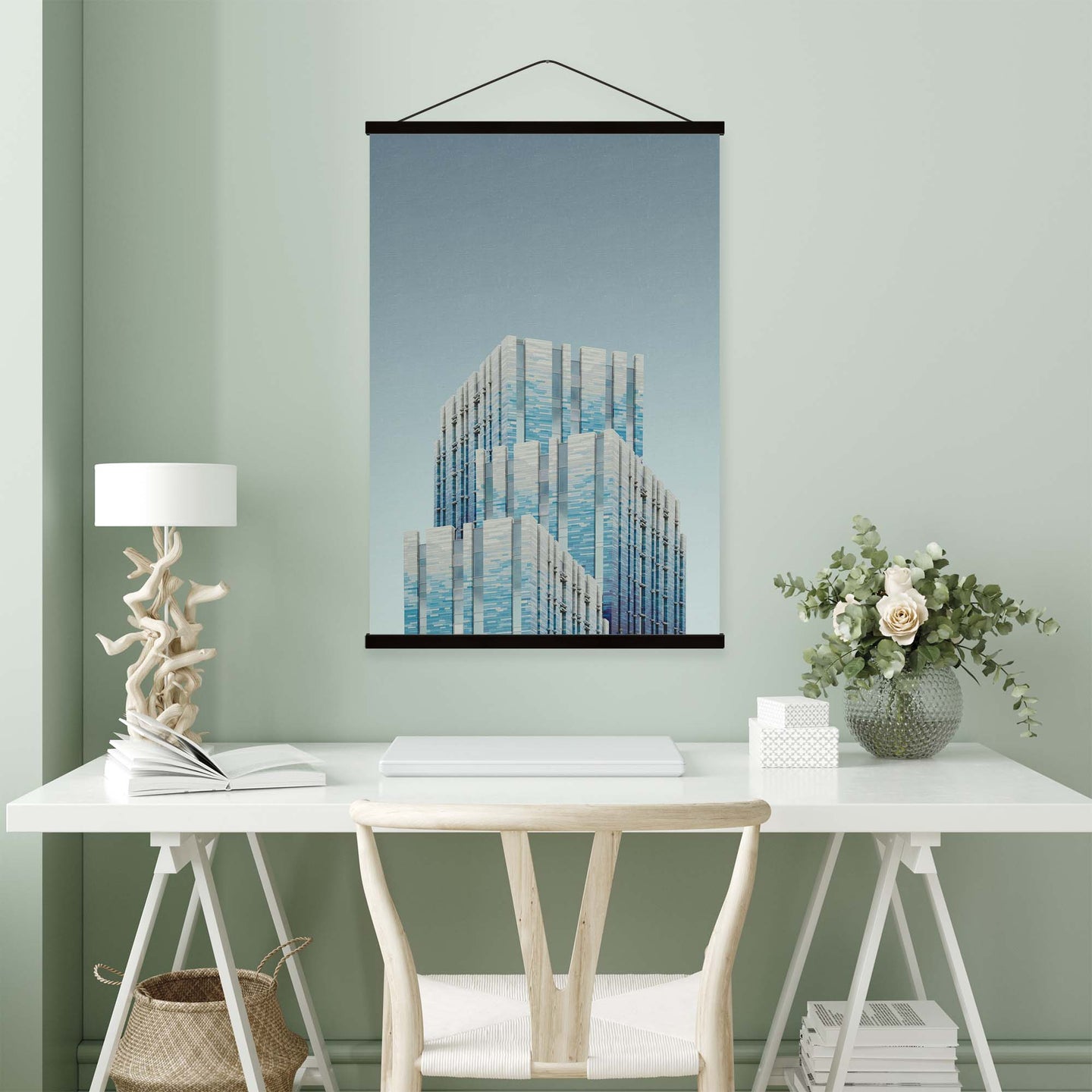 Create an instant room transformation, with the canvas tapestry print: 'Ombrestadt V'. Printed on luxury 260g canvas, Tapestro canvas tapestries hang from magnetic wooden holders, in either teak or black wood. Supplied with a black hanger. This print measures: 60cm x 90cm (24in x 36in). For each item sold, one tree is planted. This helps to offset carbon released during production and shipping, and to create a net positive contribution over the tree's lifetime. Transform your home, and our planet.
