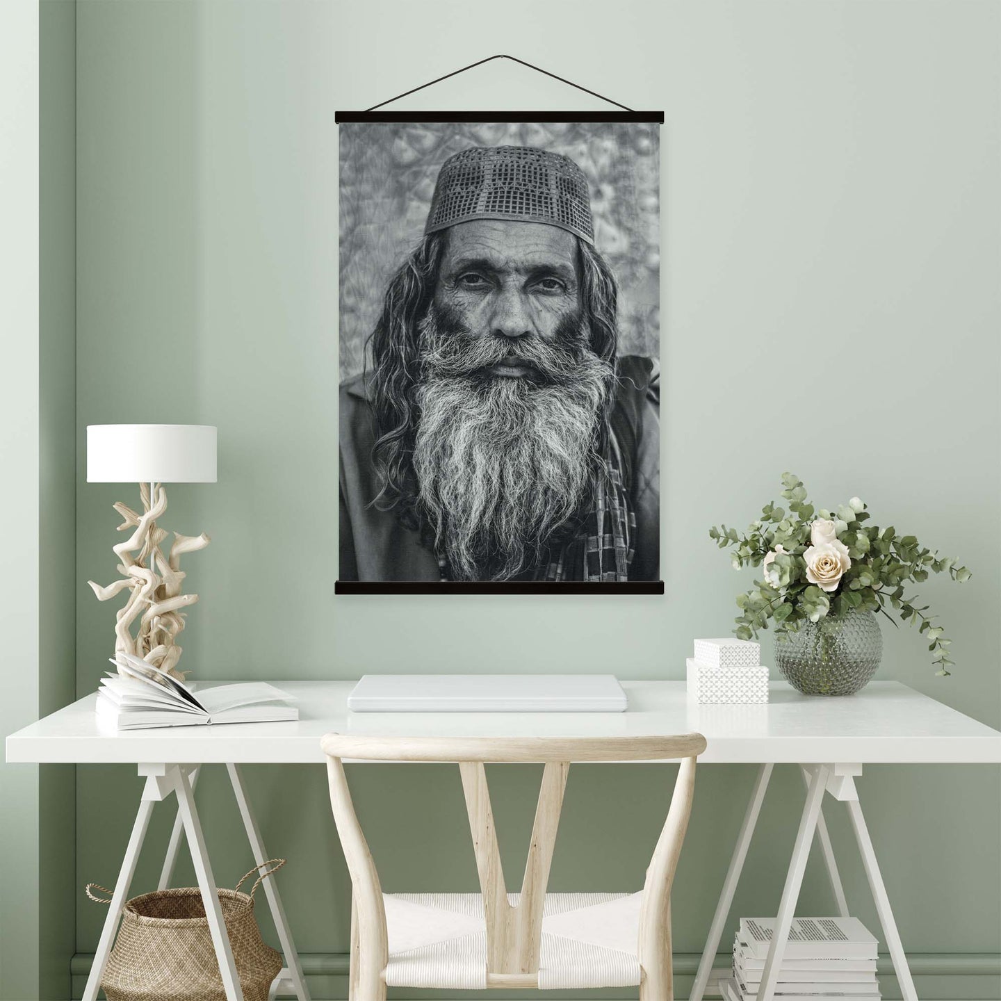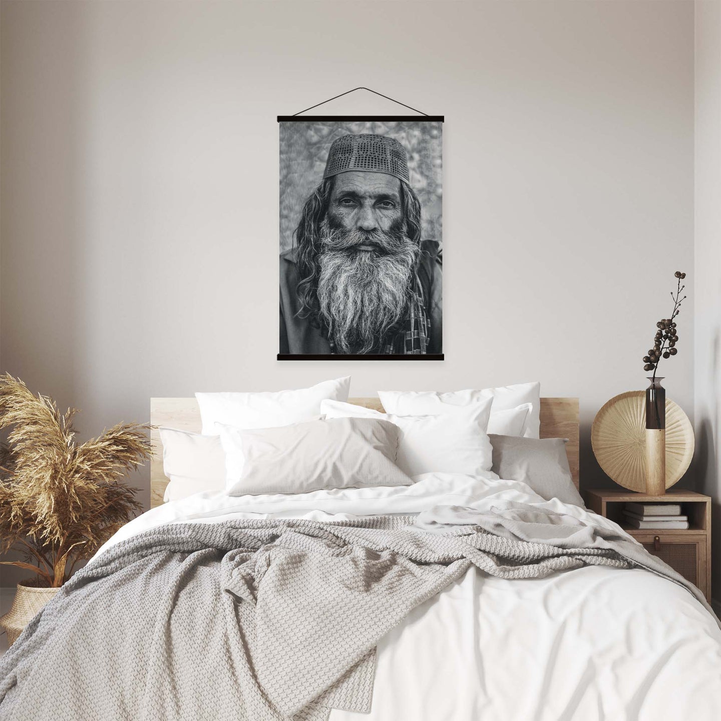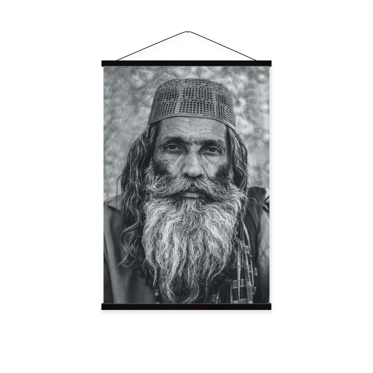 Create an instant room transformation, with the canvas tapestry print: 'Portraits of Humanity I'. Printed on luxury 260g canvas, Tapestro canvas tapestries hang from magnetic wooden holders, in either teak or black wood. Supplied with a black hanger. This print measures: 60cm x 90cm (24in x 36in). For each item sold, one tree is planted. This helps to offset carbon released during production and shipping, and to create a net positive contribution over the tree's lifetime. Transform your home, and our planet.