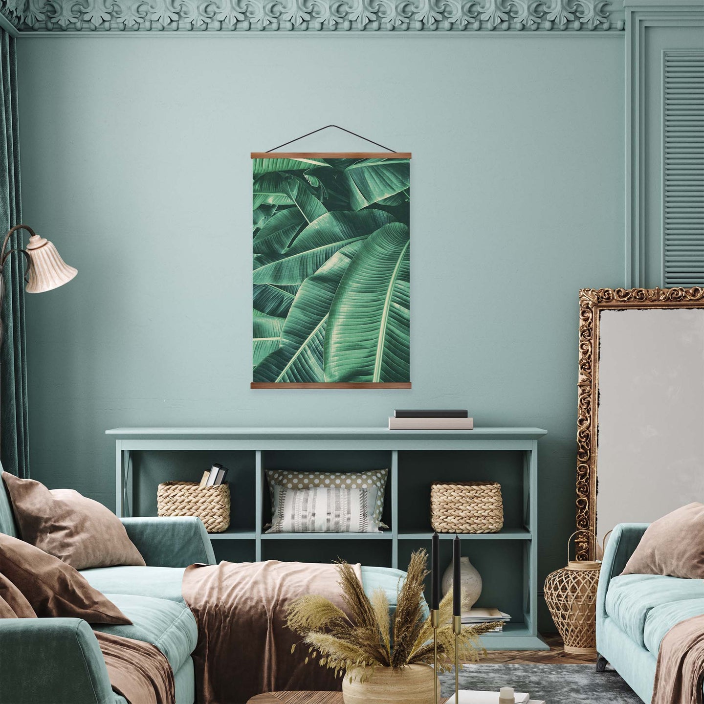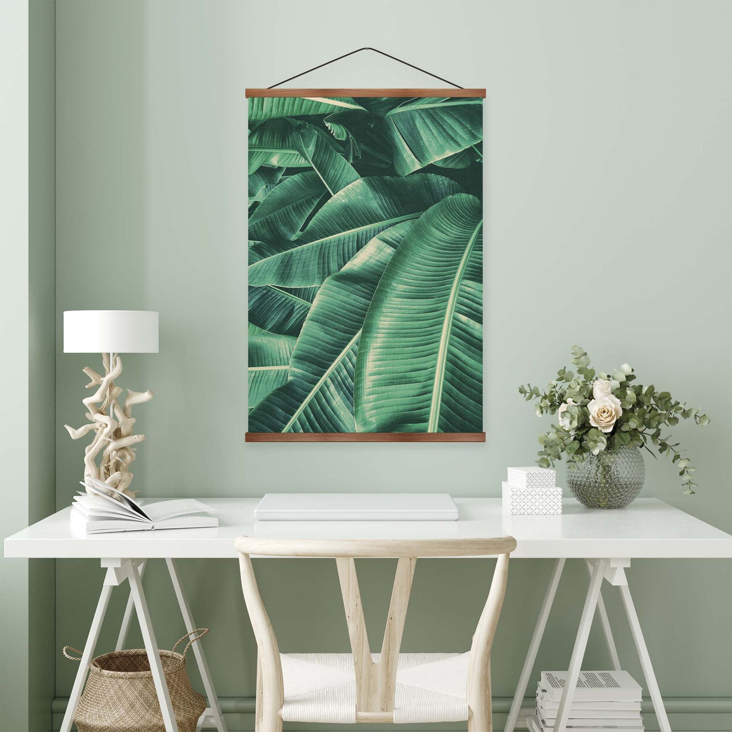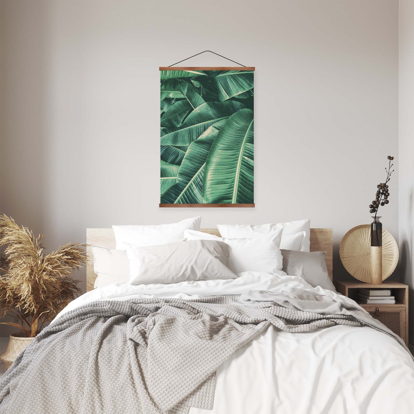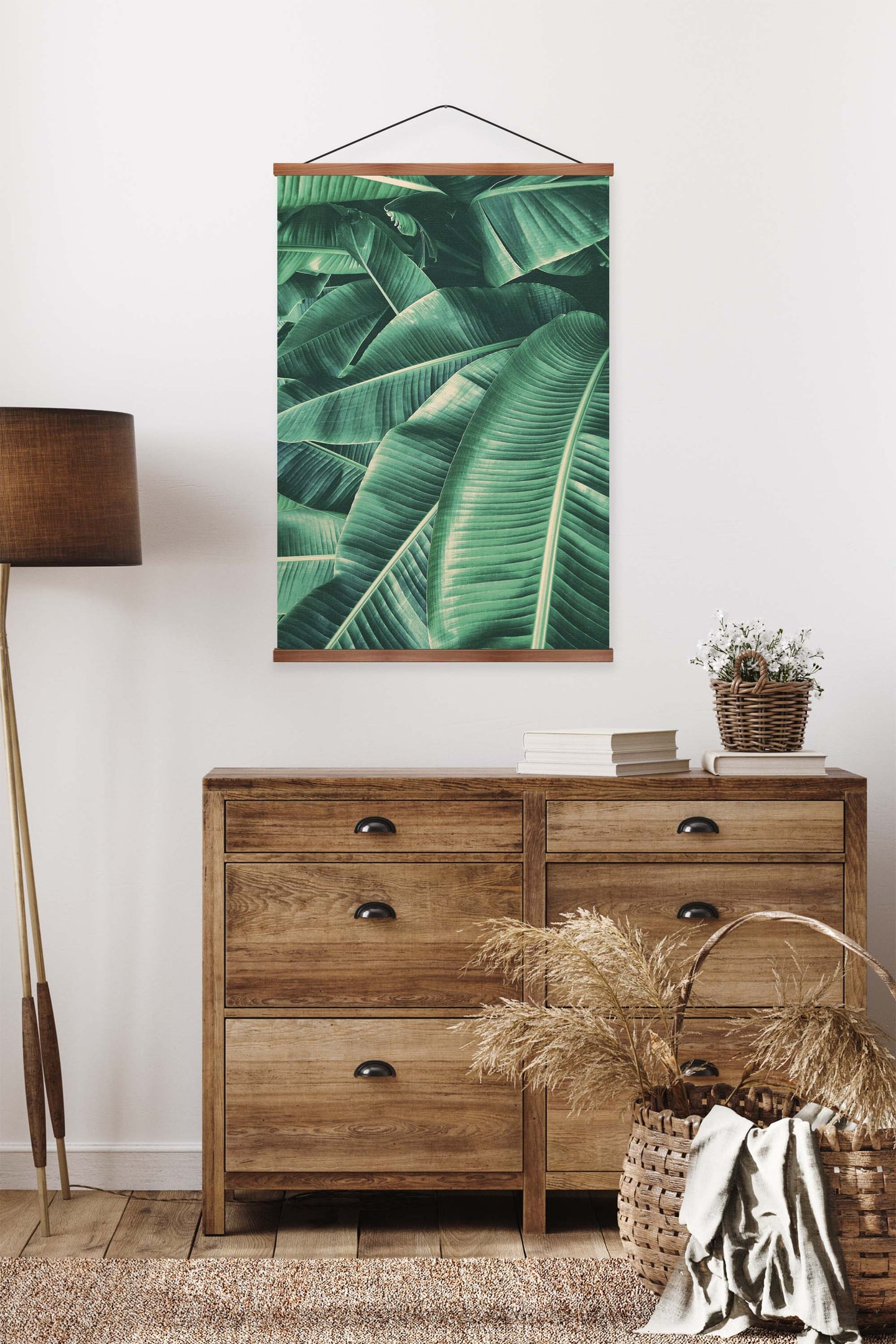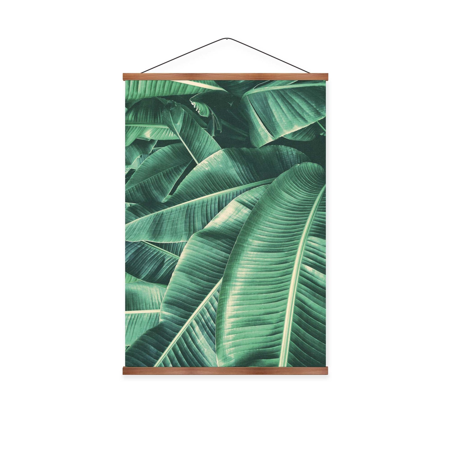 Create an instant room transformation, with the canvas tapestry print: 'Vert des Tropiques'. Printed on luxury 260g canvas, Tapestro canvas tapestries hang from magnetic wooden holders, in either teak or black wood. Supplied with a teak hanger. This print measures: 60cm x 90cm (24in x 36in). For each item sold, one tree is planted. This helps to offset carbon released during production and shipping, and to create a net positive contribution over the tree's lifetime. Transform your home, and our planet.