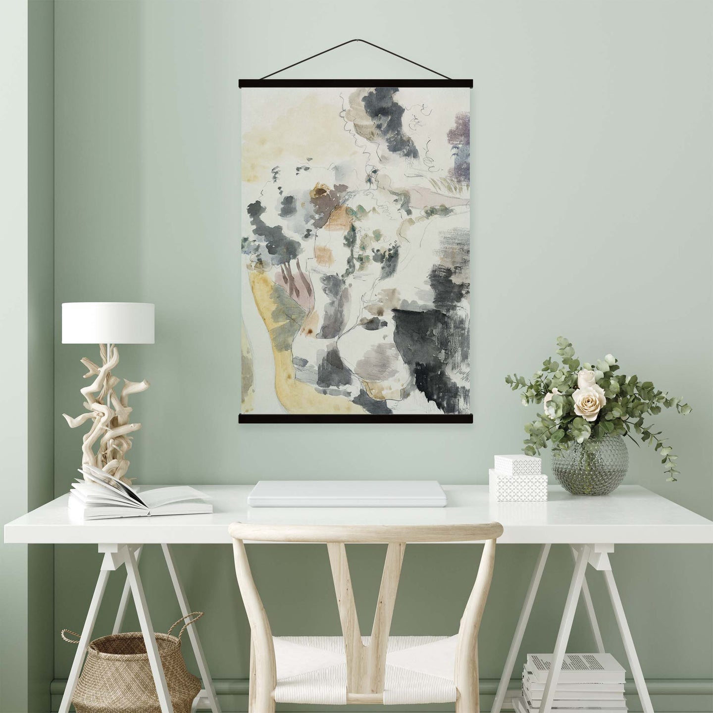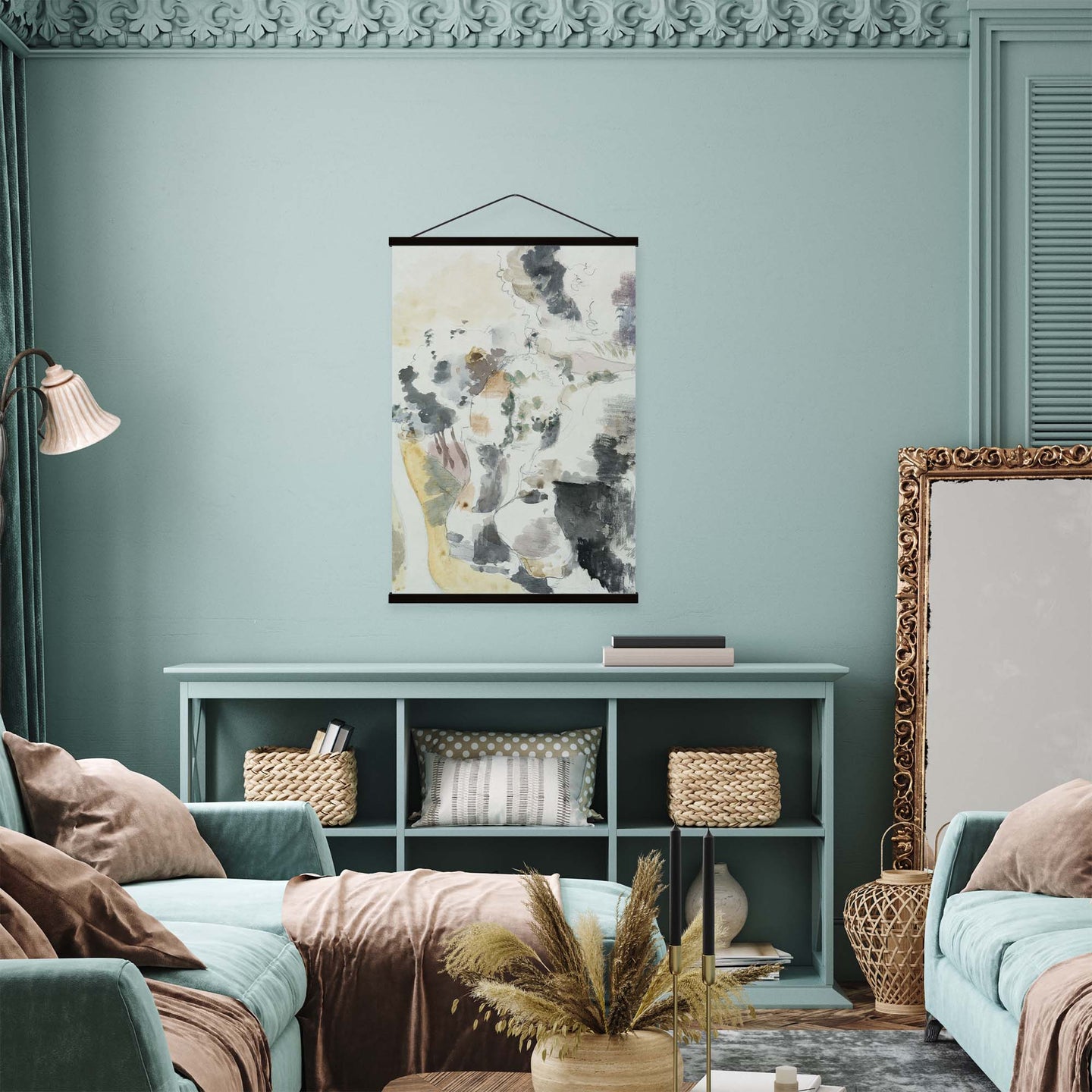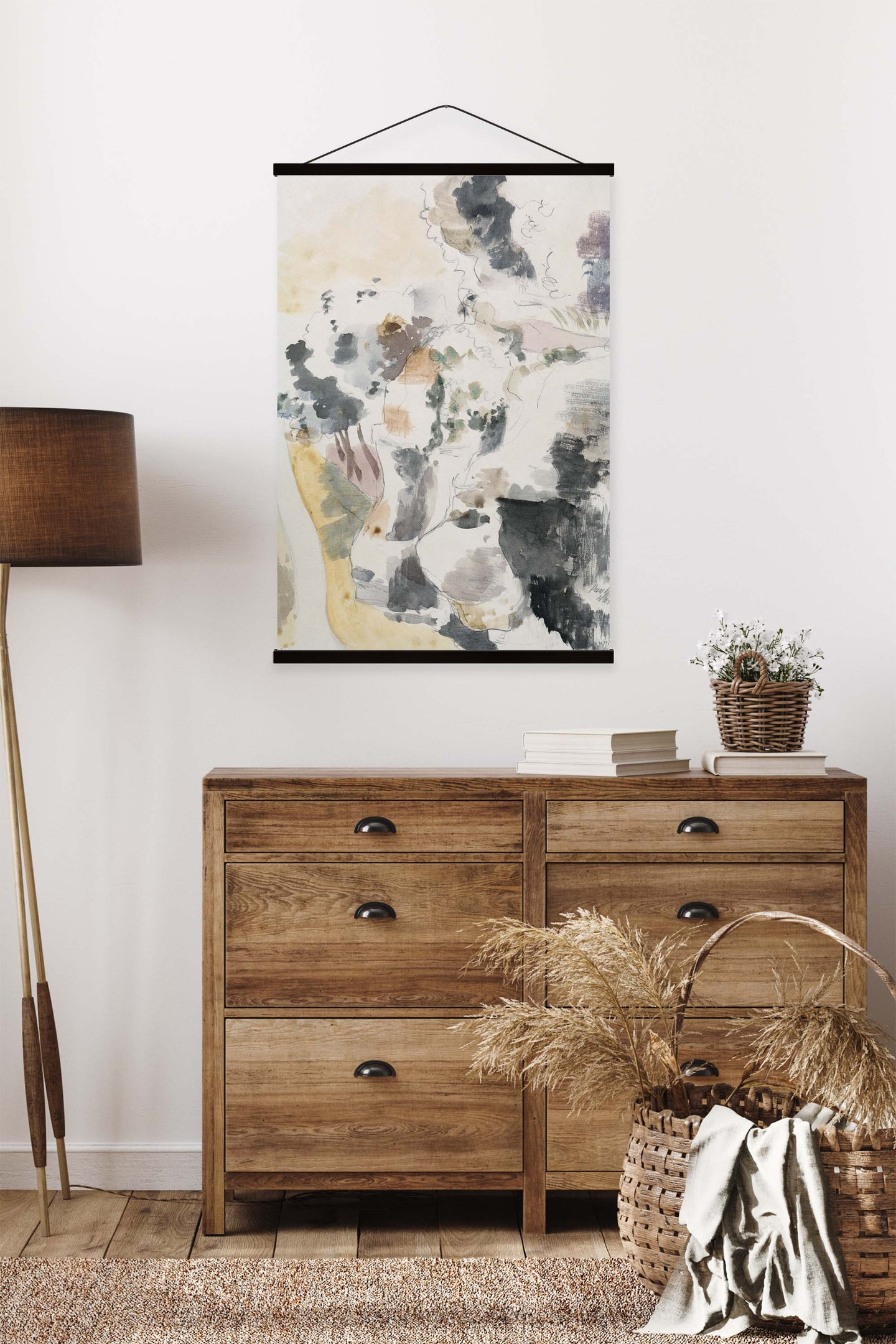 Create an instant room transformation, with the canvas tapestry print: 'Cliffs Vintage Print by Paul Nash'. Printed on luxury 260g canvas, Tapestro canvas tapestries hang from magnetic wooden holders, in either teak or black wood. Supplied with a black hanger. This print measures: 60cm x 90cm (24in x 36in). For each item sold, one tree is planted. This helps to offset carbon released during production and shipping, and to create a net positive contribution over the tree's lifetime. Transform your home, and our planet.