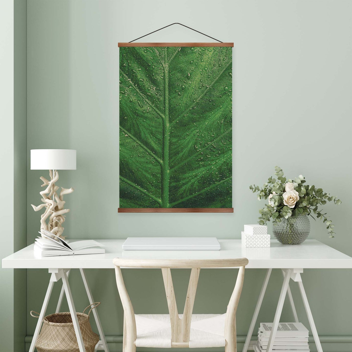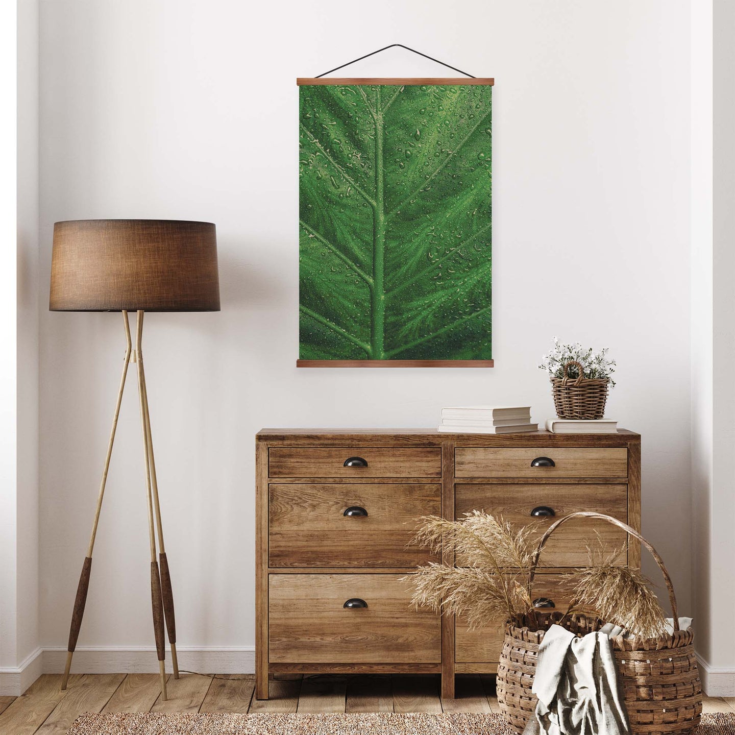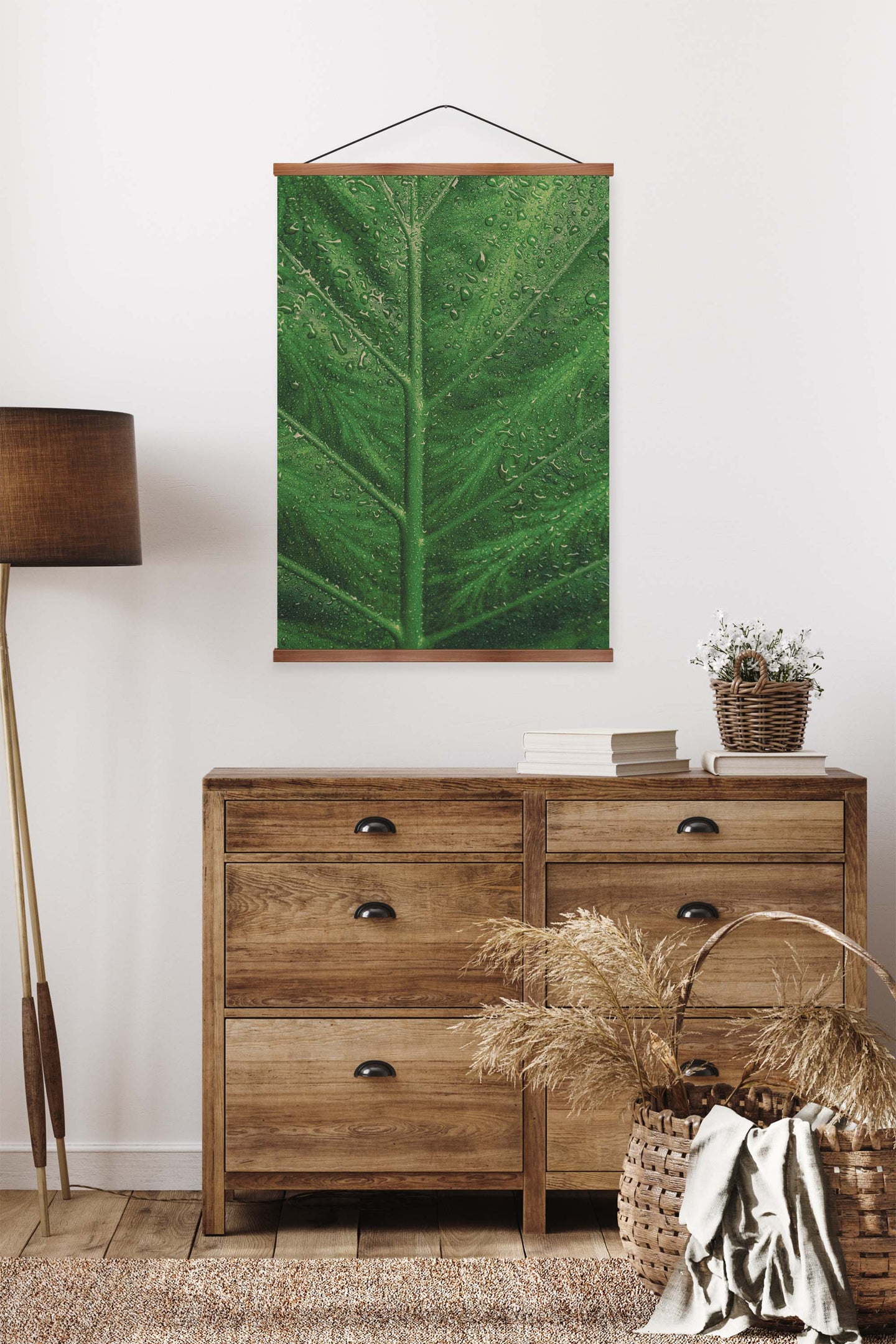 Create an instant room transformation, with the canvas tapestry print: 'Deep Green'. Printed on luxury 260g canvas, Tapestro canvas tapestries hang from magnetic wooden holders, in either teak or black wood. Supplied with a teak hanger. This print measures: 60cm x 90cm (24in x 36in). For each item sold, one tree is planted. This helps to offset carbon released during production and shipping, and to create a net positive contribution over the tree's lifetime. Transform your home, and our planet.