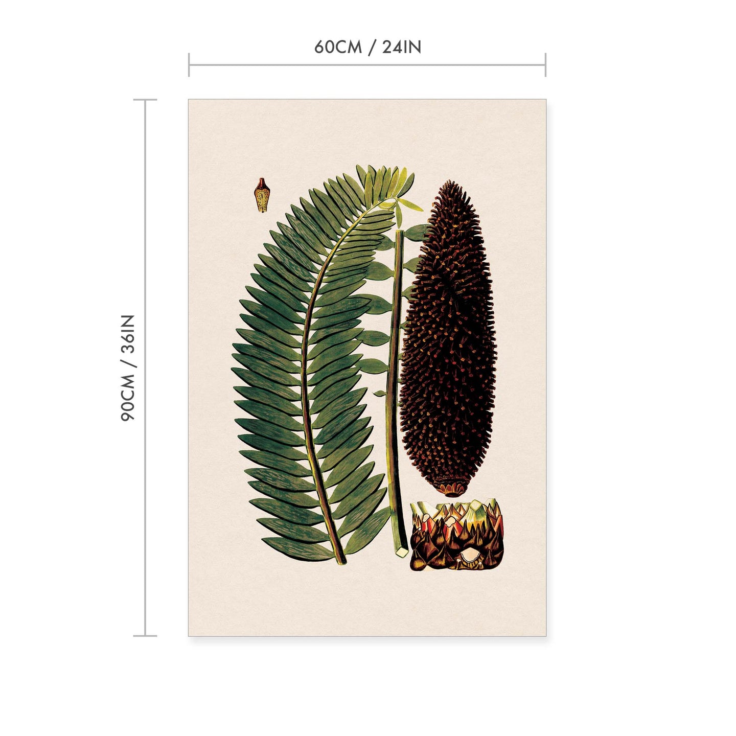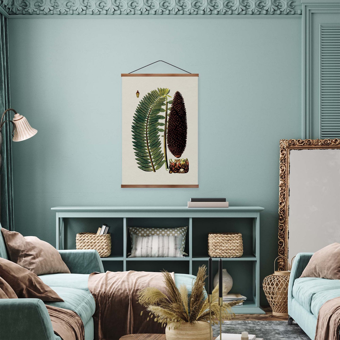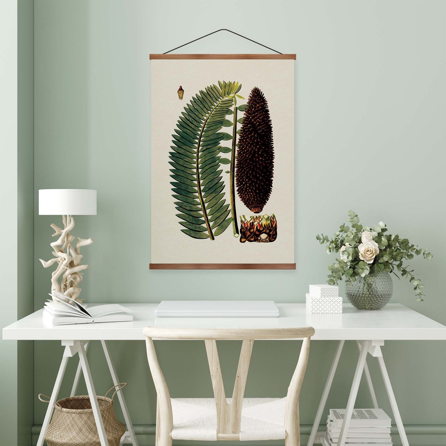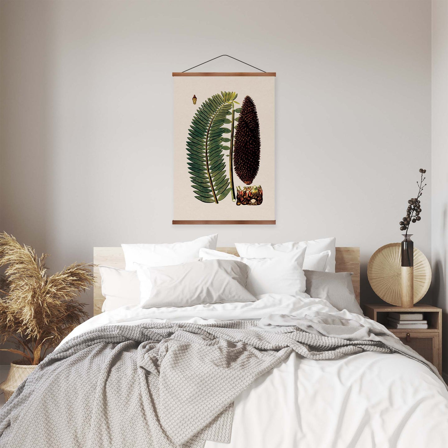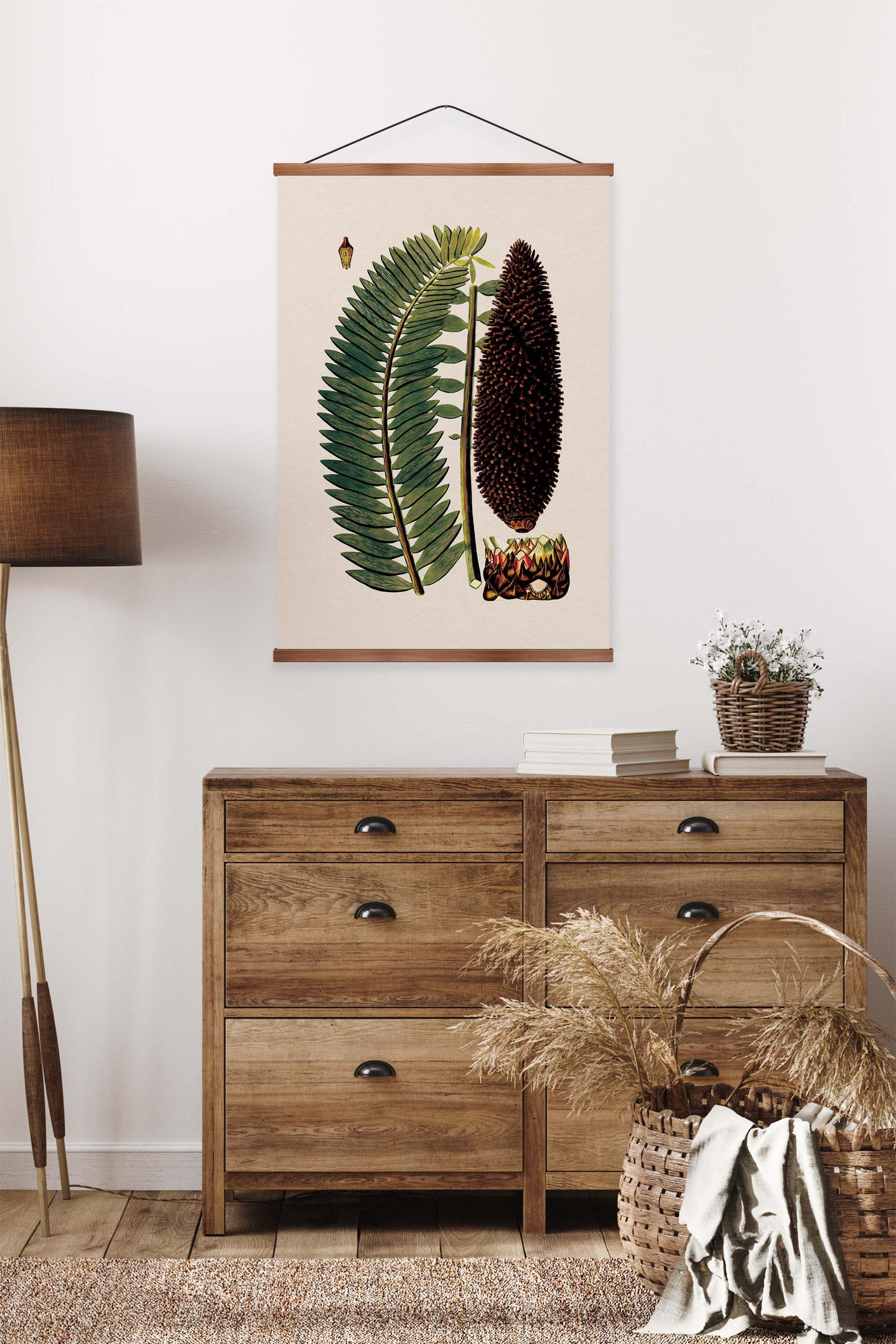 Create an instant room transformation, with the canvas tapestry print: 'Zamia Palm Vintage Print'. Printed on luxury 260g canvas, Tapestro canvas tapestries hang from magnetic wooden holders, in either teak or black wood. Supplied with a teak hanger. This print measures: 60cm x 90cm (24in x 36in). For each item sold, one tree is planted. This helps to offset carbon released during production and shipping, and to create a net positive contribution over the tree's lifetime. Transform your home, and our planet.