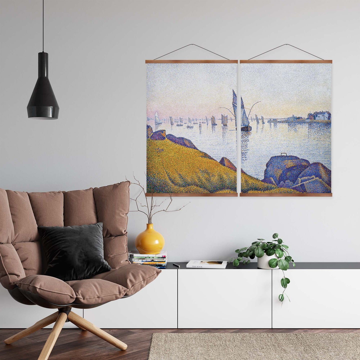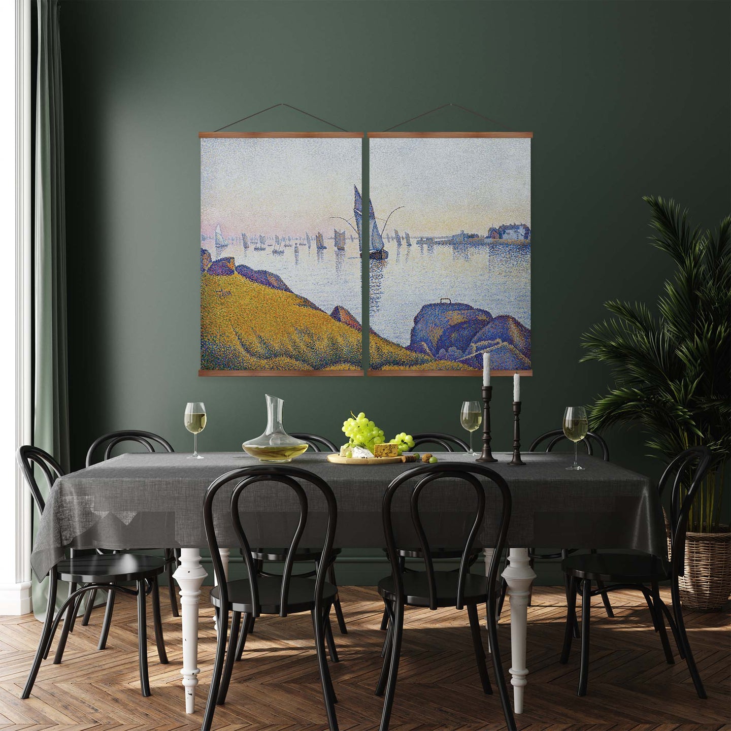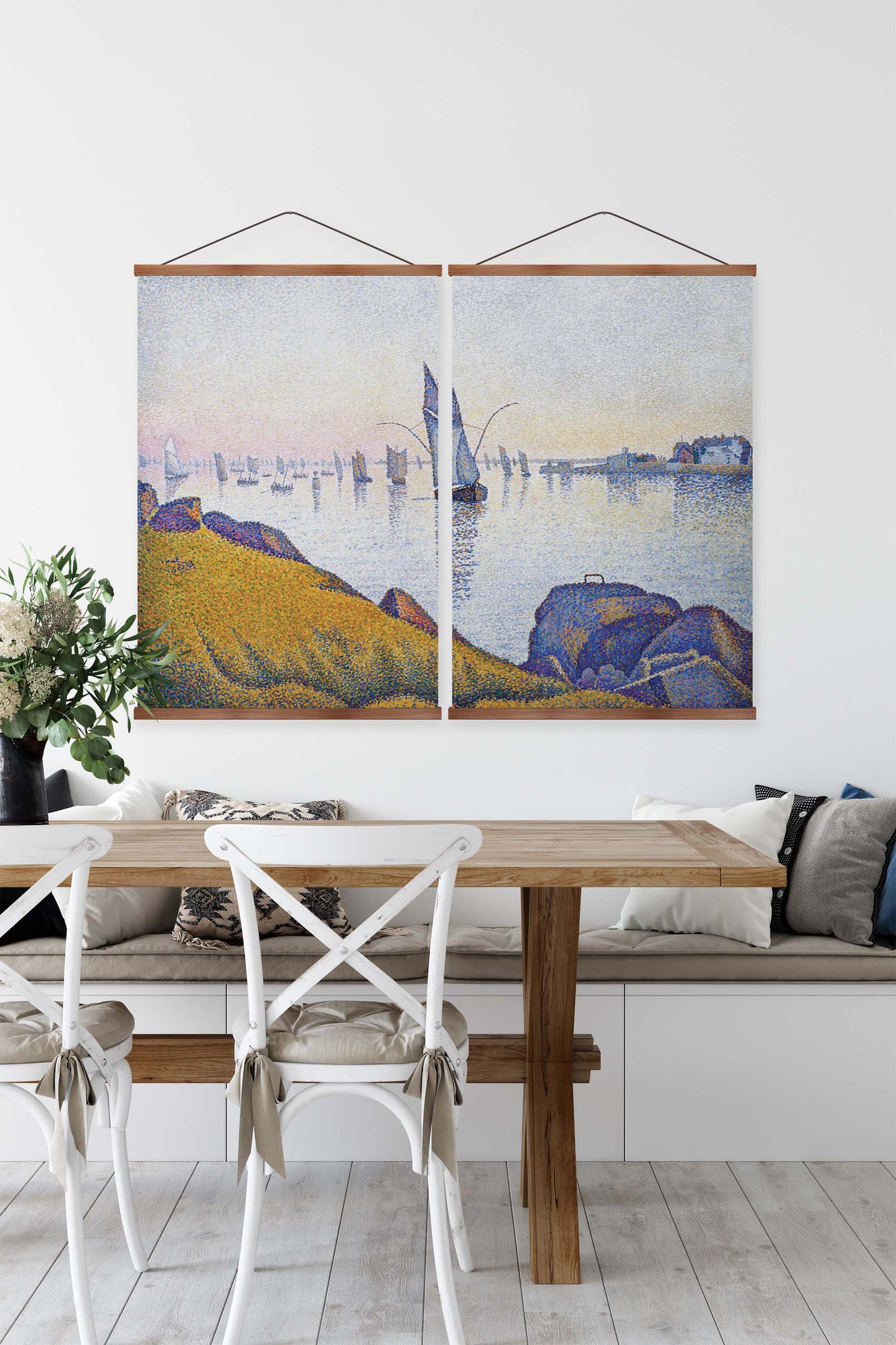 Create an instant room transformation, with the canvas tapestry print: 'Evening Calm by Allegro Maestoso'. Printed on luxury 260g canvas, Tapestro canvas tapestries hang from magnetic wooden holders, in either teak or black wood. Supplied with a teak hanger. This print measures: 120cm x 90cm (47in x 36in). Supplied in: 2 Panels. For each item sold, one tree is planted. This helps to offset carbon released during production and shipping, and to create a net positive contribution over the tree's lifetime. Transform your home, and our planet.