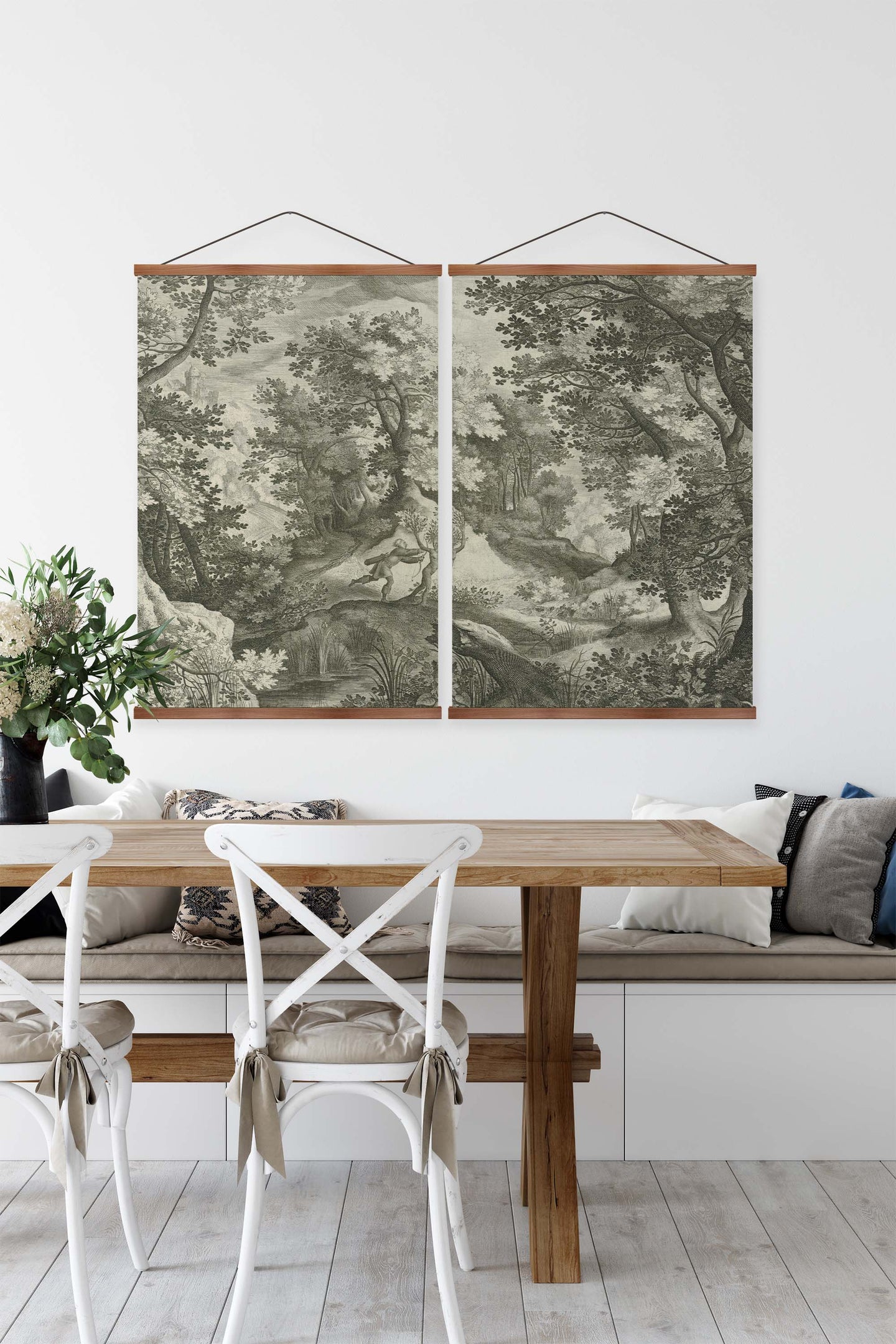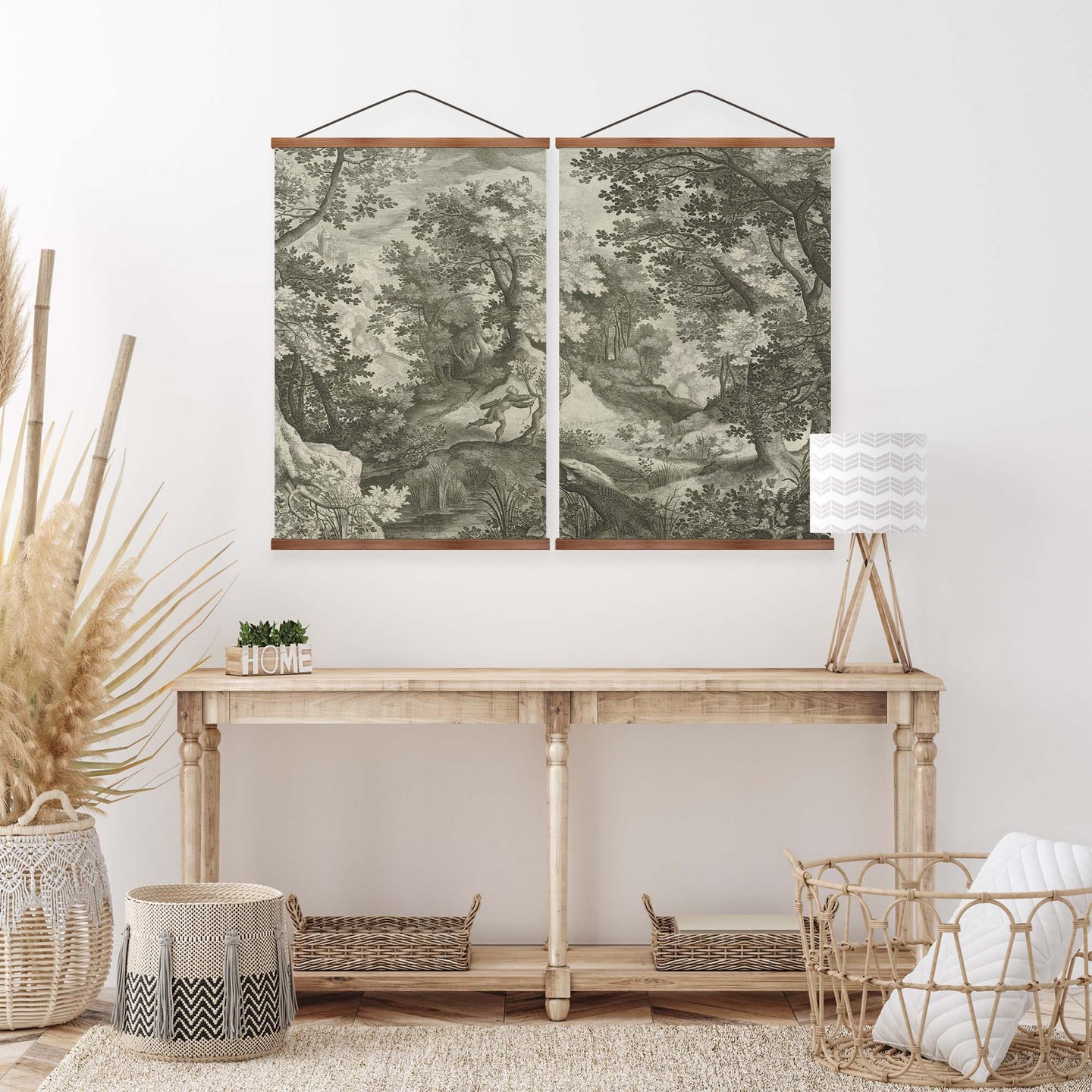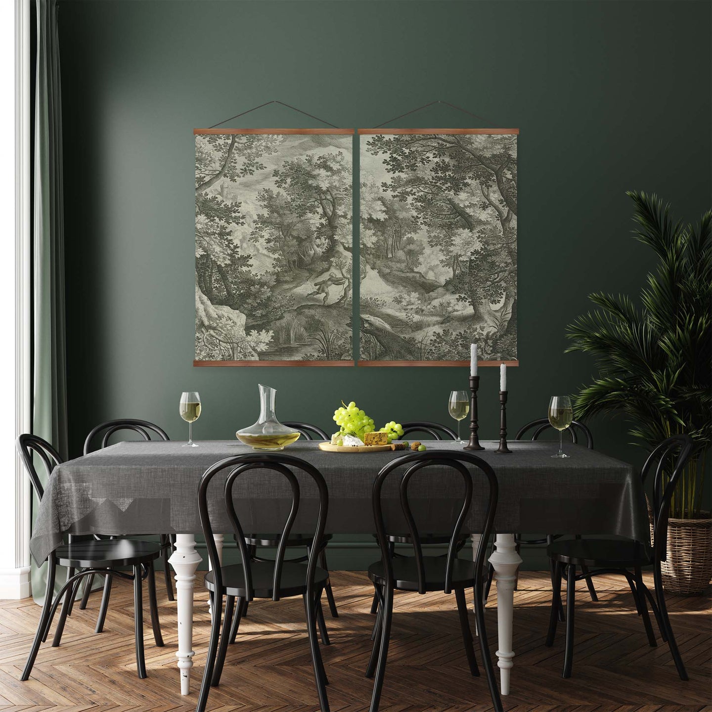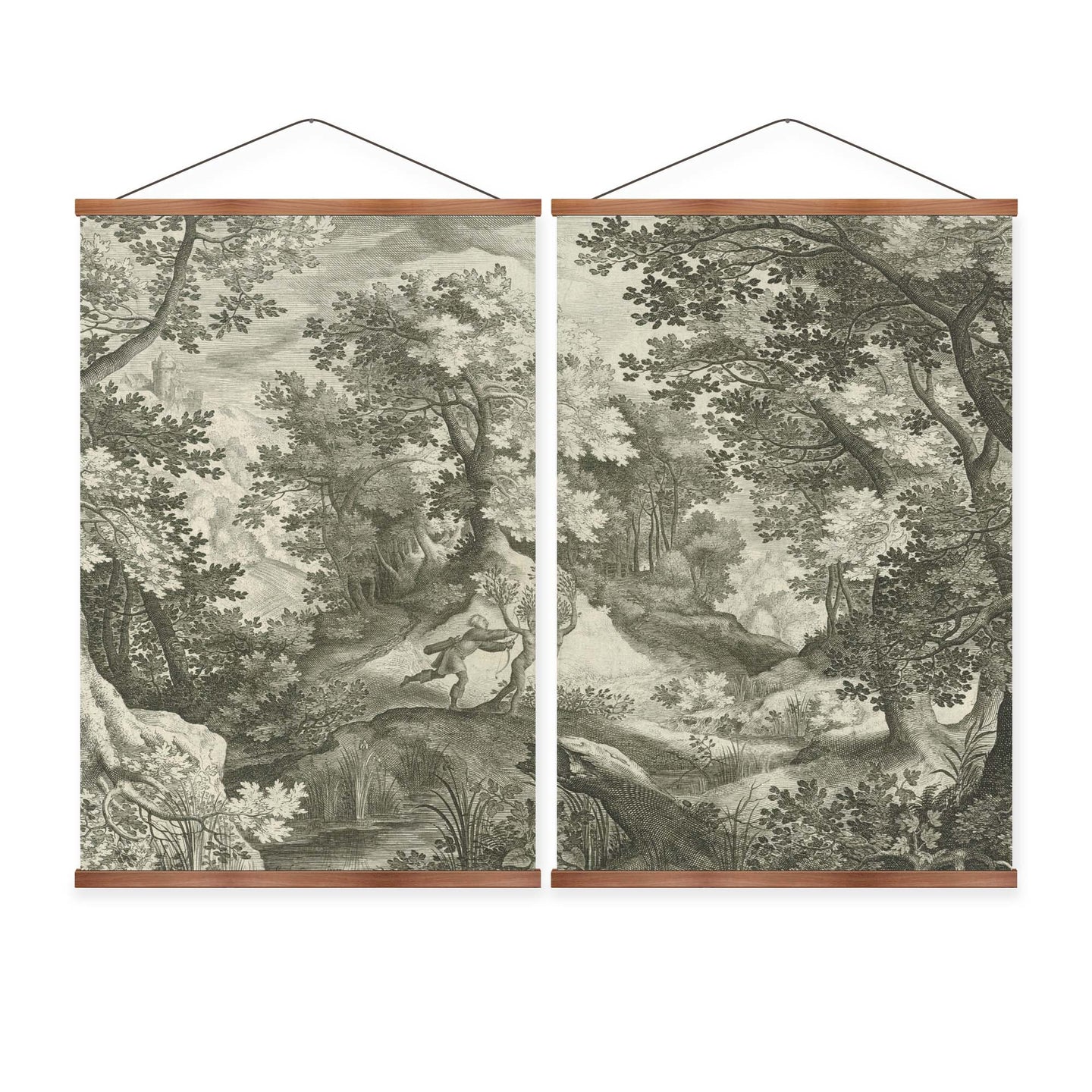 Create an instant room transformation, with the canvas tapestry print: 'Apollo and Daphne Vintage Gravure'. Printed on luxury 260g canvas, Tapestro canvas tapestries hang from magnetic wooden holders, in either teak or black wood. Supplied with a teak hanger. This print measures: 120cm x 90cm (47in x 36in). Supplied in: 2 Panels. For each item sold, one tree is planted. This helps to offset carbon released during production and shipping, and to create a net positive contribution over the tree's lifetime. Transform your home, and our planet.