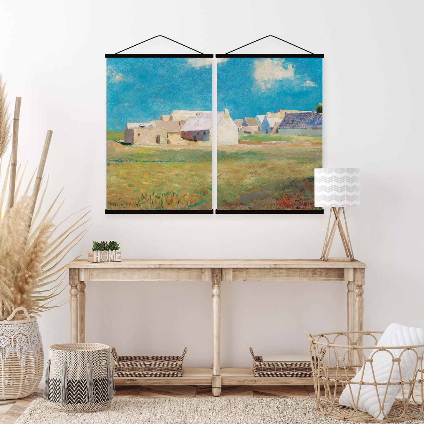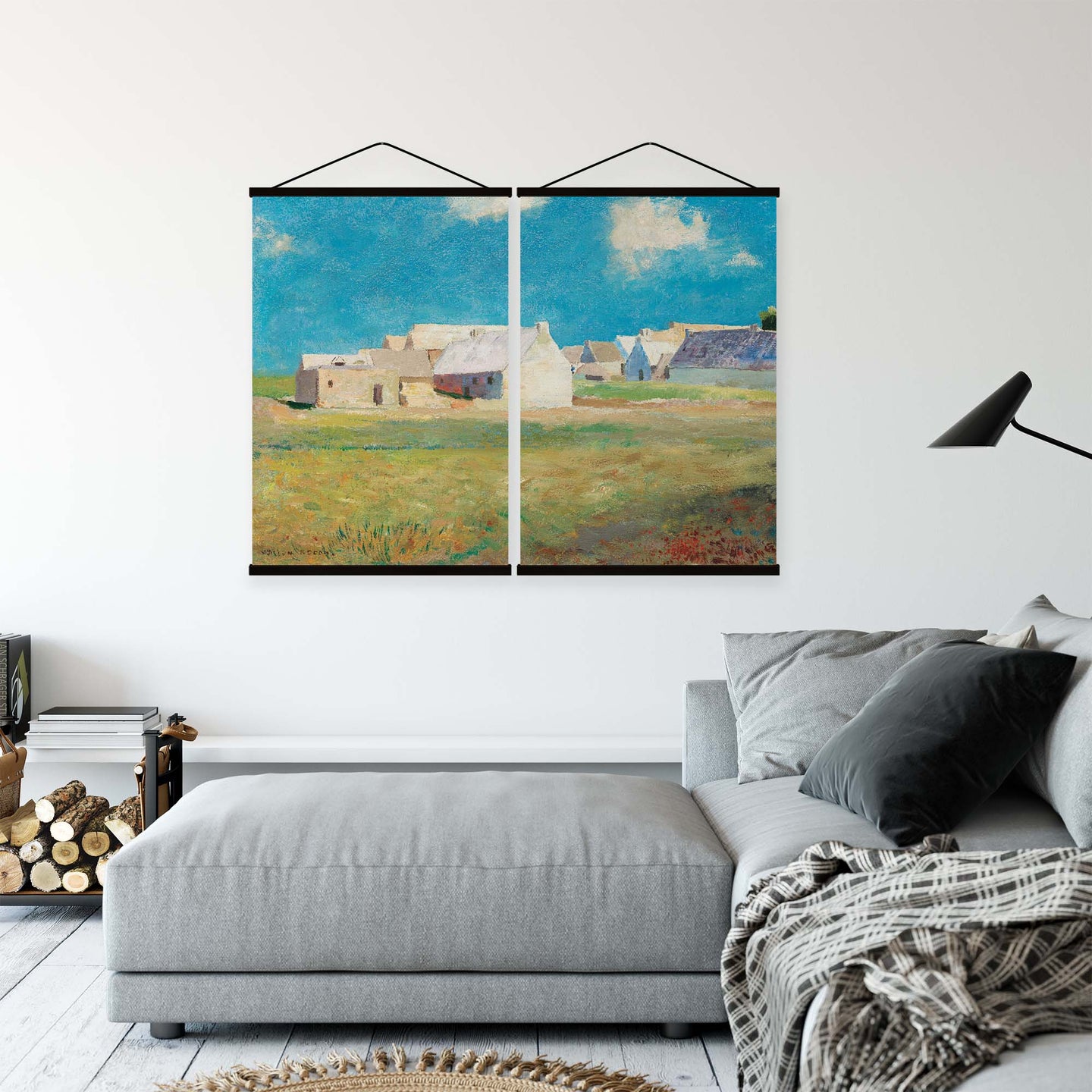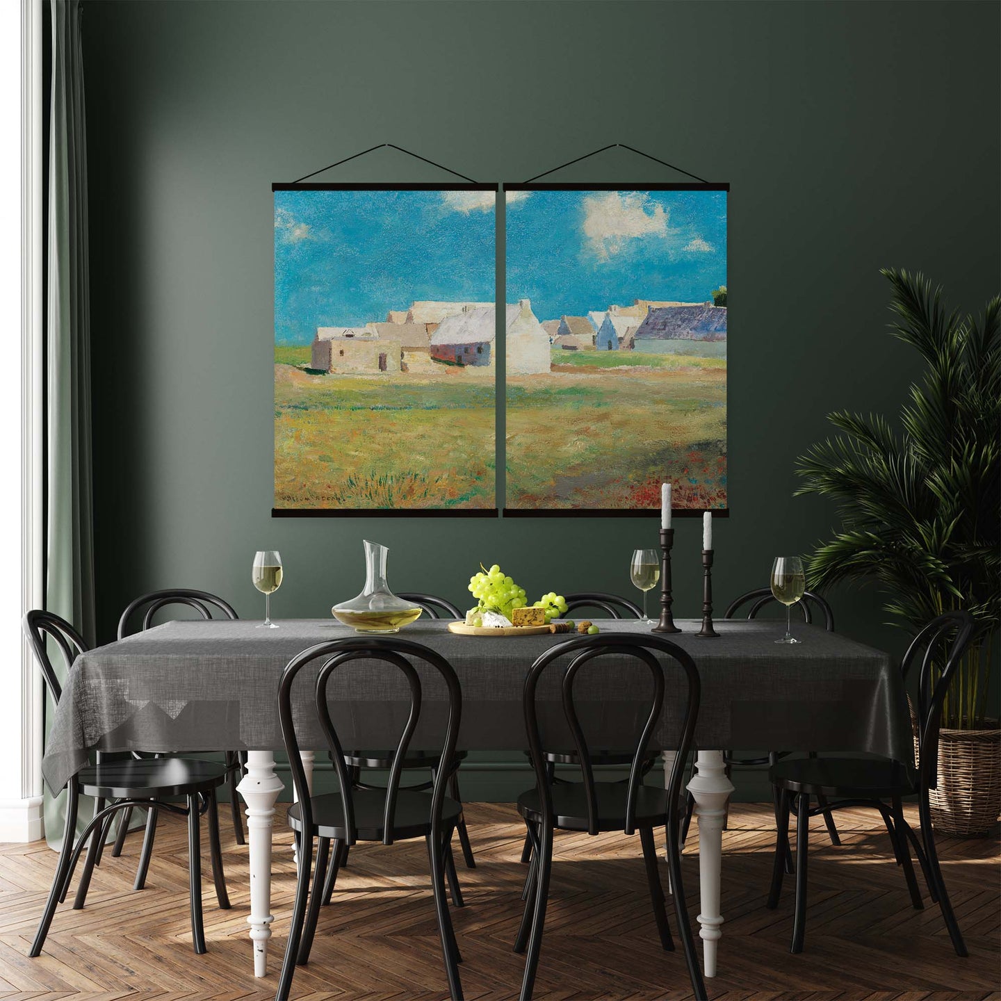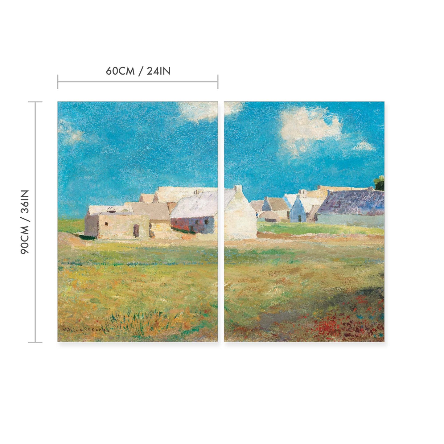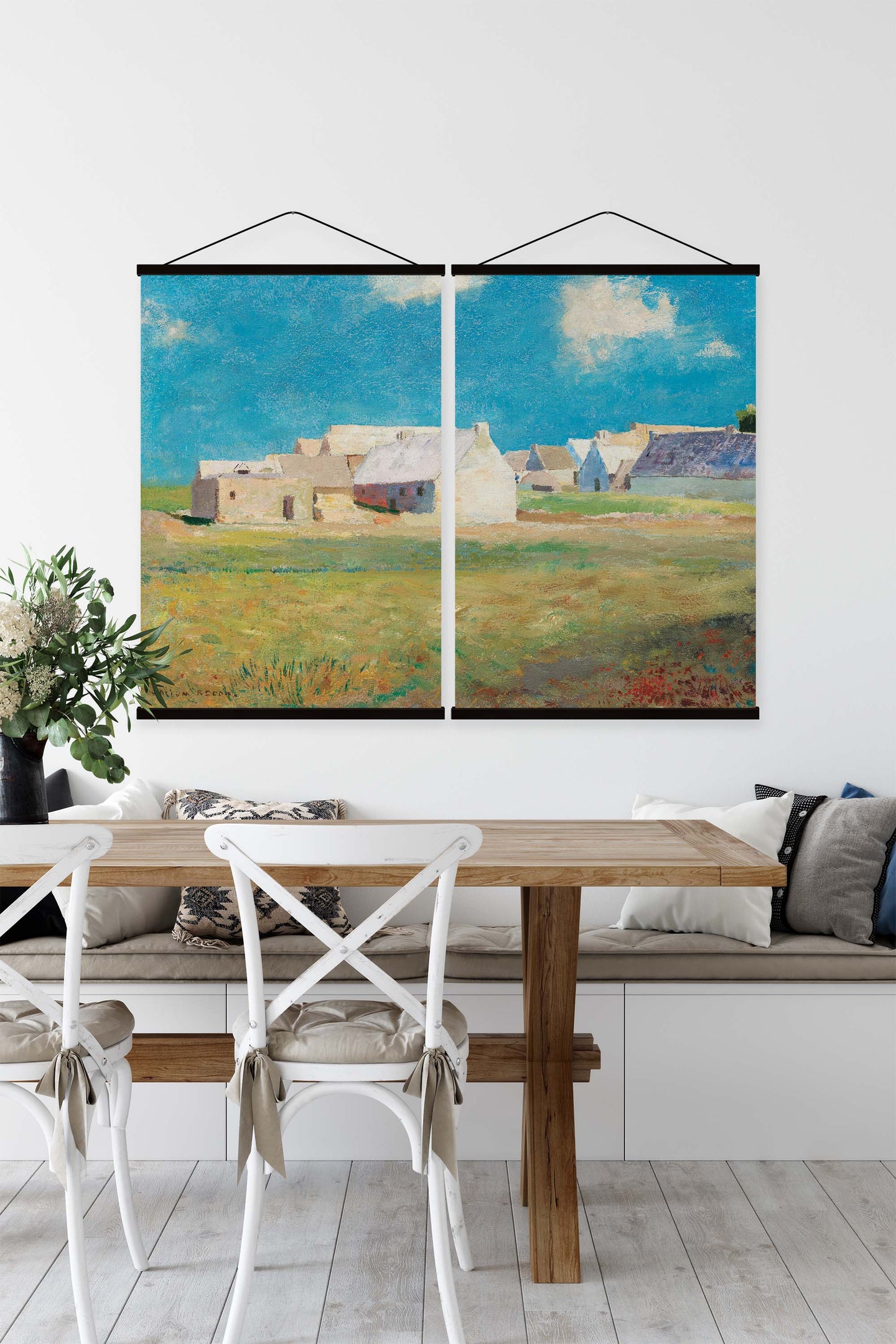 Create an instant room transformation, with the canvas tapestry print: 'Breton Village by Odilon Redon'. Printed on luxury 260g canvas, Tapestro canvas tapestries hang from magnetic wooden holders, in either teak or black wood. Supplied with a black hanger. This print measures: 120cm x 90cm (47in x 36in). Supplied in: 2 Panels. For each item sold, one tree is planted. This helps to offset carbon released during production and shipping, and to create a net positive contribution over the tree's lifetime. Transform your home, and our planet.