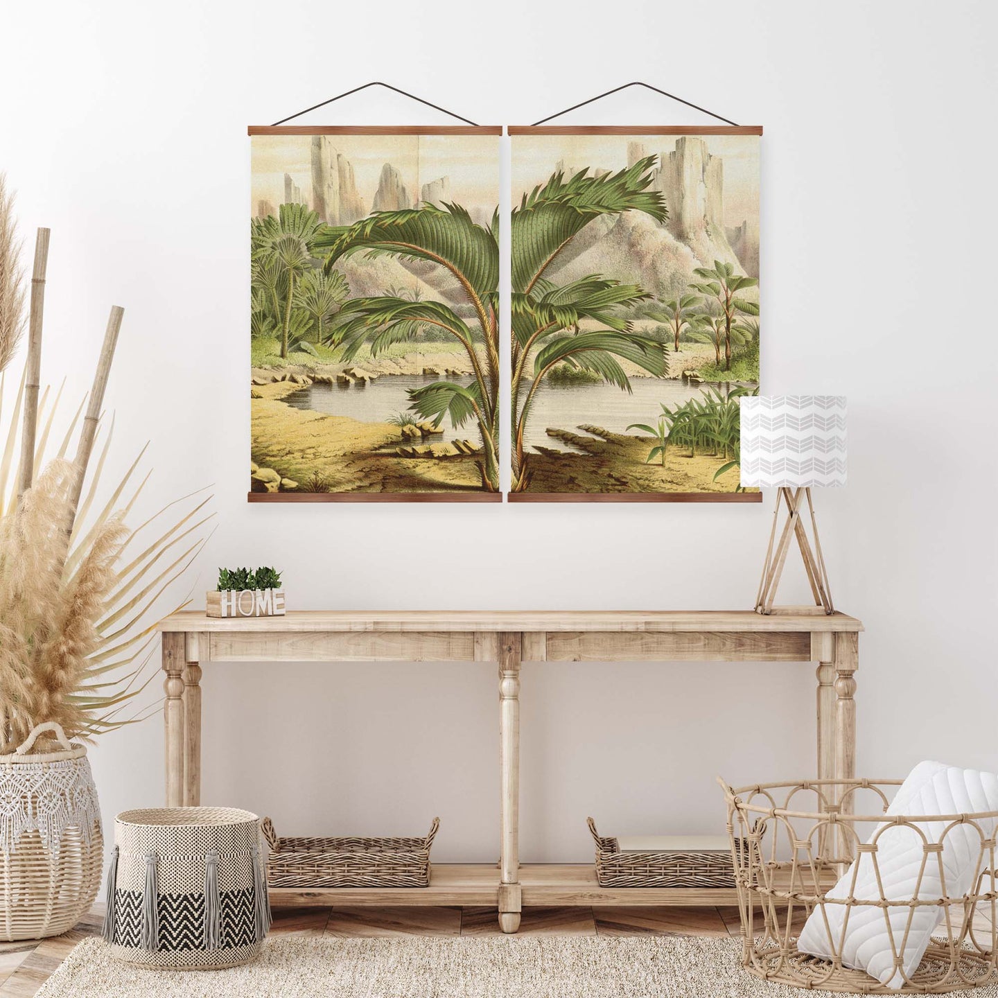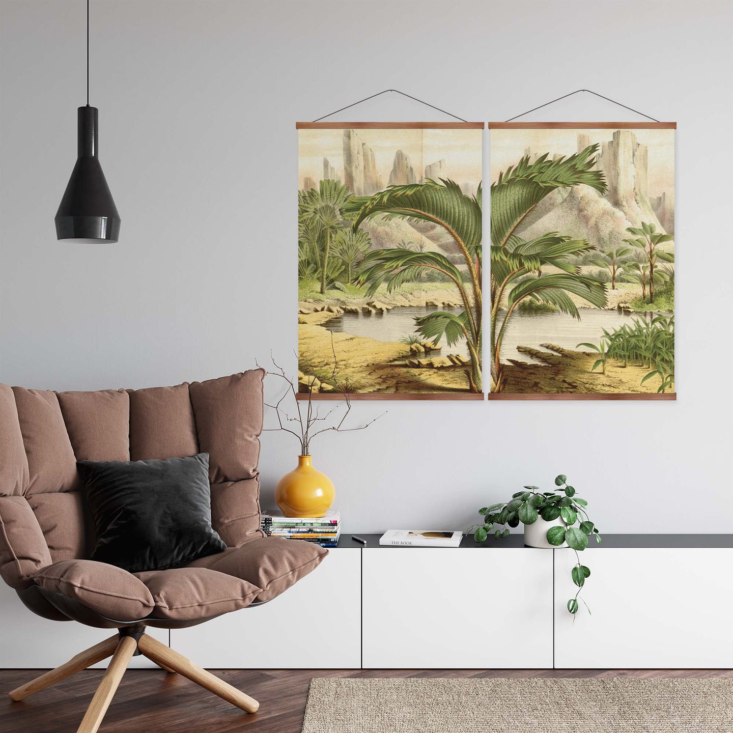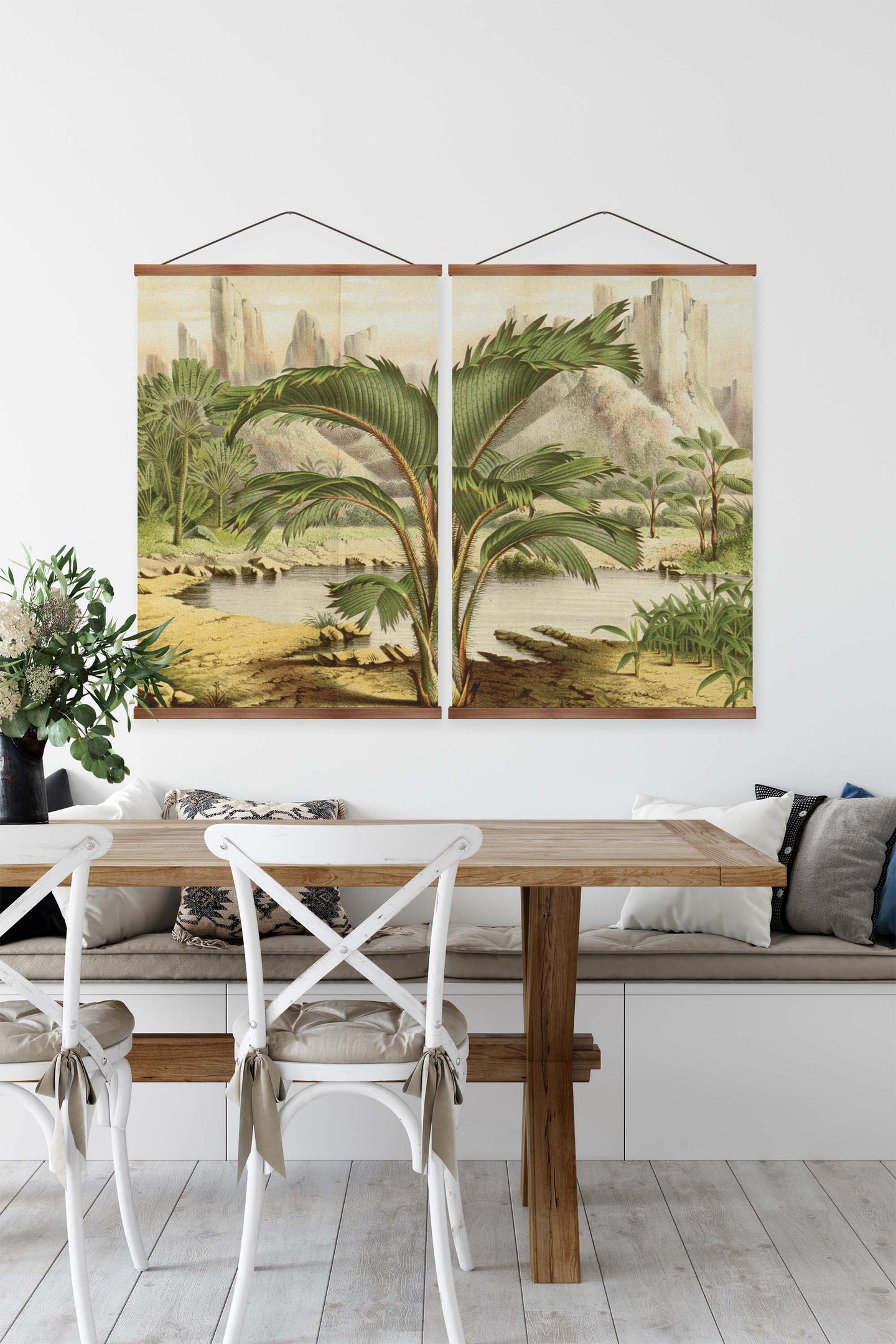 Create an instant room transformation, with the canvas tapestry print: 'Flore des Serres Vintage Tropical Print'. Printed on luxury 260g canvas, Tapestro canvas tapestries hang from magnetic wooden holders, in either teak or black wood. Supplied with a teak hanger. This print measures: 120cm x 90cm (47in x 36in). Supplied in: 2 Panels. For each item sold, one tree is planted. This helps to offset carbon released during production and shipping, and to create a net positive contribution over the tree's lifetime. Transform your home, and our planet.