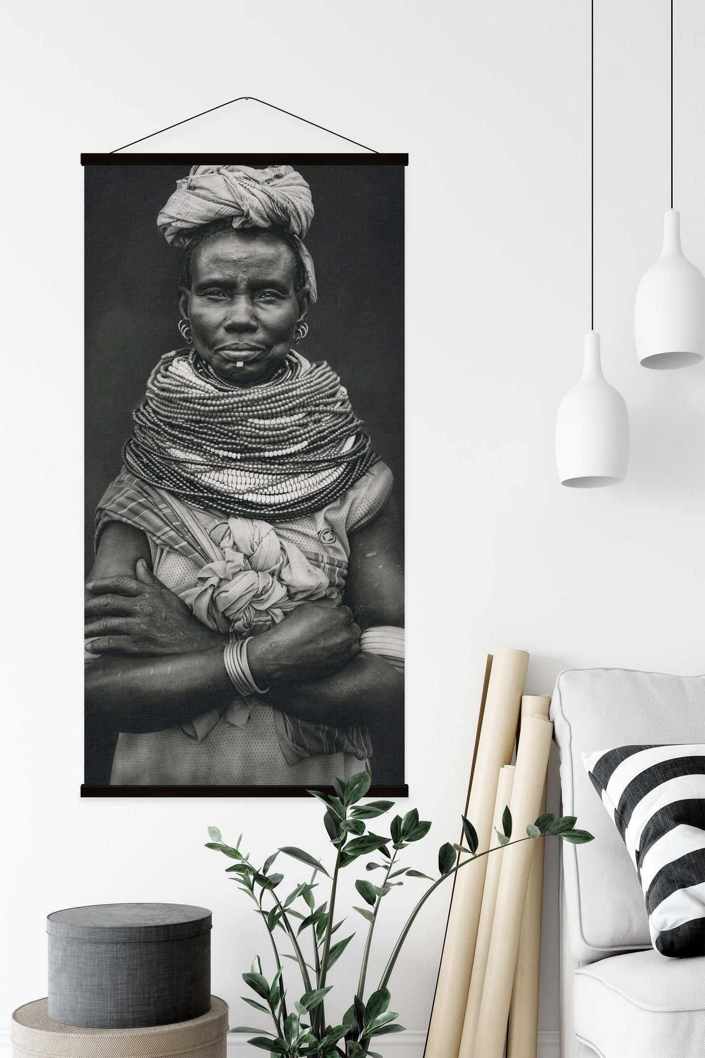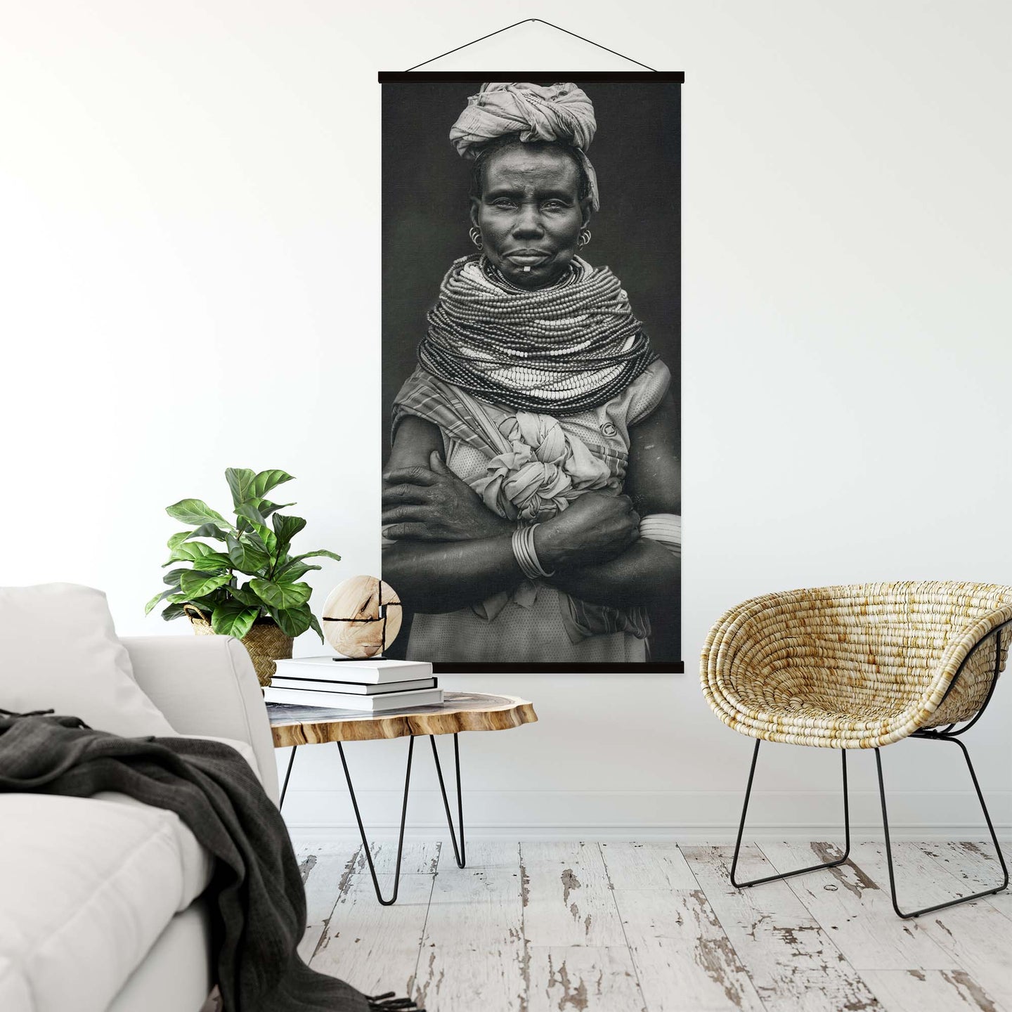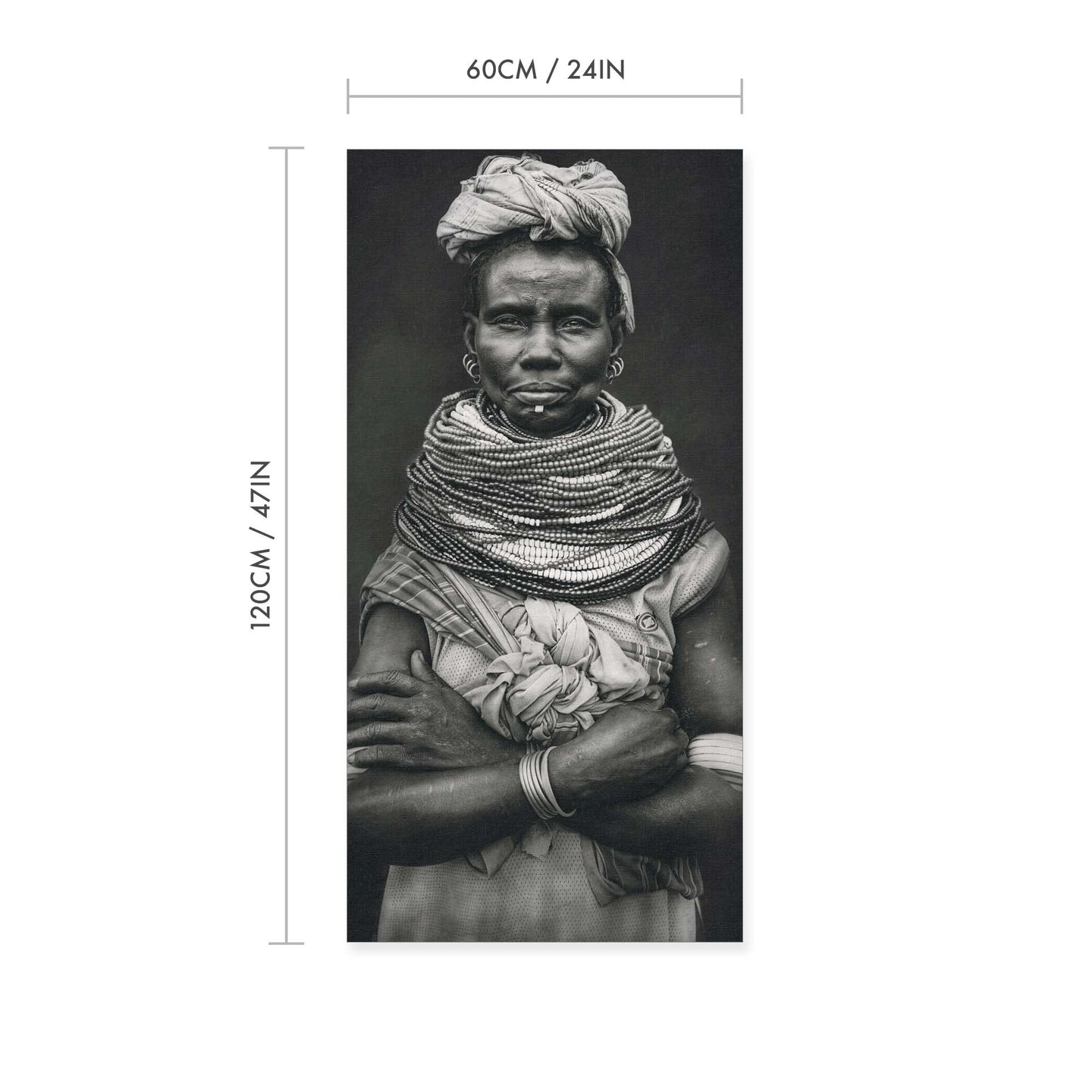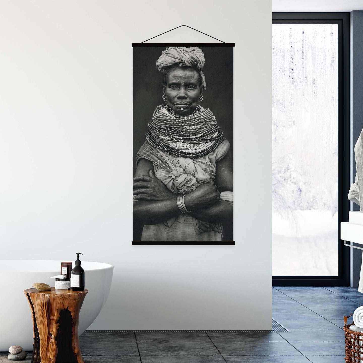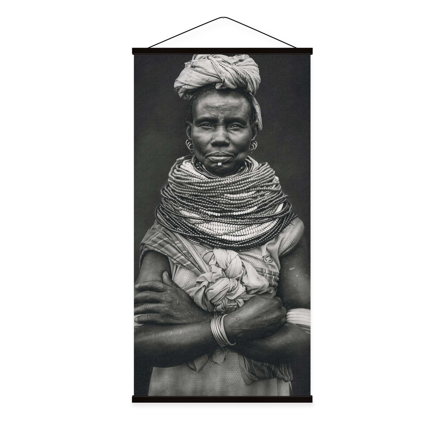 Create an instant room transformation, with the canvas tapestry print: 'Nyangatom by Svetlin Yosifov'. Printed on luxury 260g canvas, Tapestro canvas tapestries hang from magnetic wooden holders, in either teak or black wood. Supplied with a black hanger. This print measures: 60cm x 120cm (24in x 47in). For each item sold, one tree is planted. This helps to offset carbon released during production and shipping, and to create a net positive contribution over the tree's lifetime. Transform your home, and our planet.