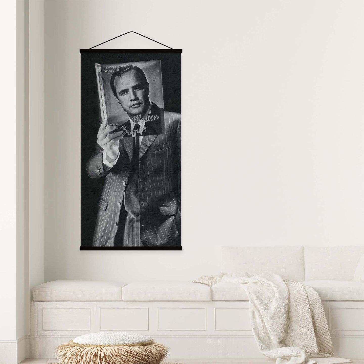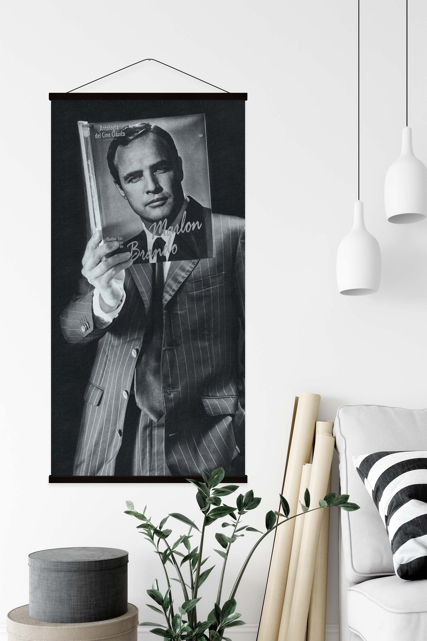 Create an instant room transformation, with the canvas tapestry print: 'Marlon by Kike Balenzategui'. Printed on luxury 260g canvas, Tapestro canvas tapestries hang from magnetic wooden holders, in either teak or black wood. Supplied with a black hanger. This print measures: 60cm x 120cm (24in x 47in). For each item sold, one tree is planted. This helps to offset carbon released during production and shipping, and to create a net positive contribution over the tree's lifetime. Transform your home, and our planet.