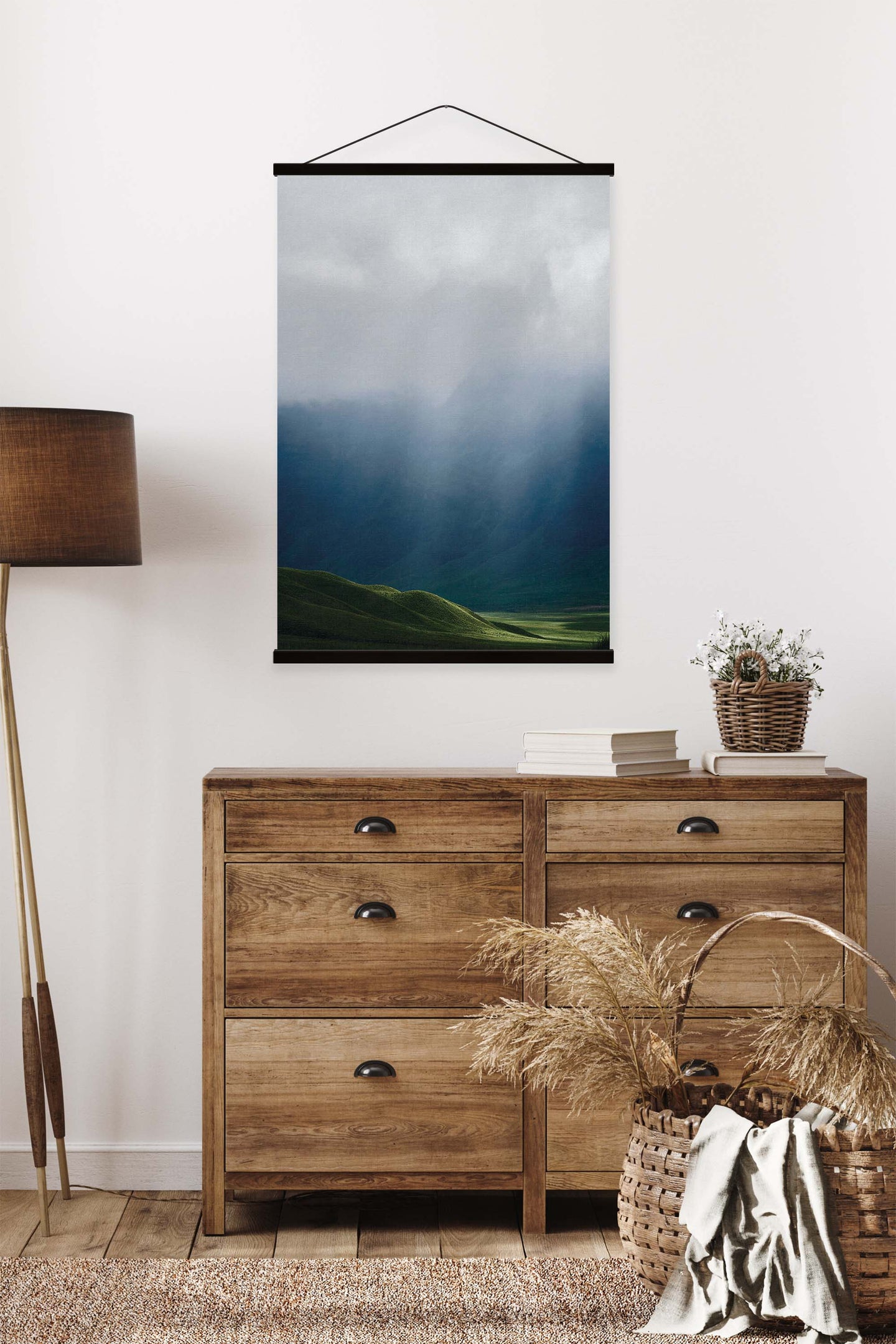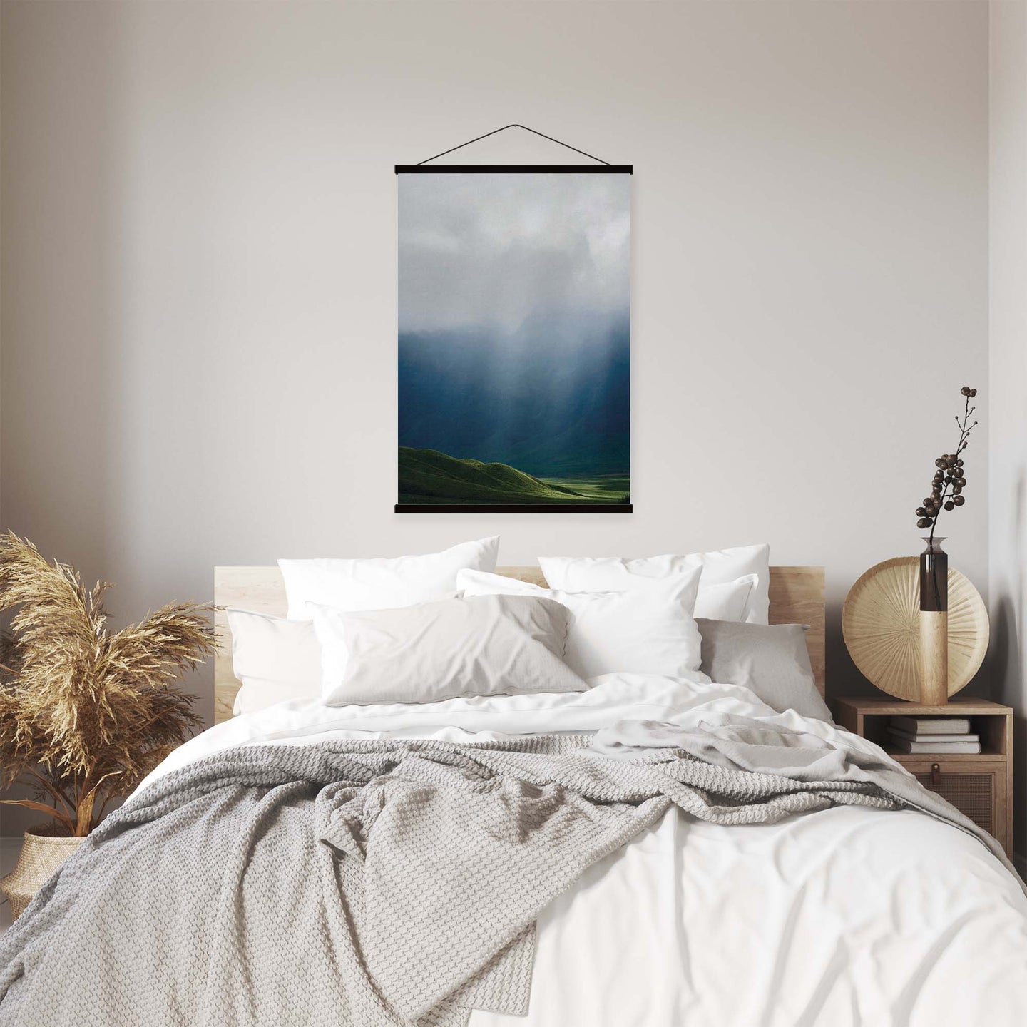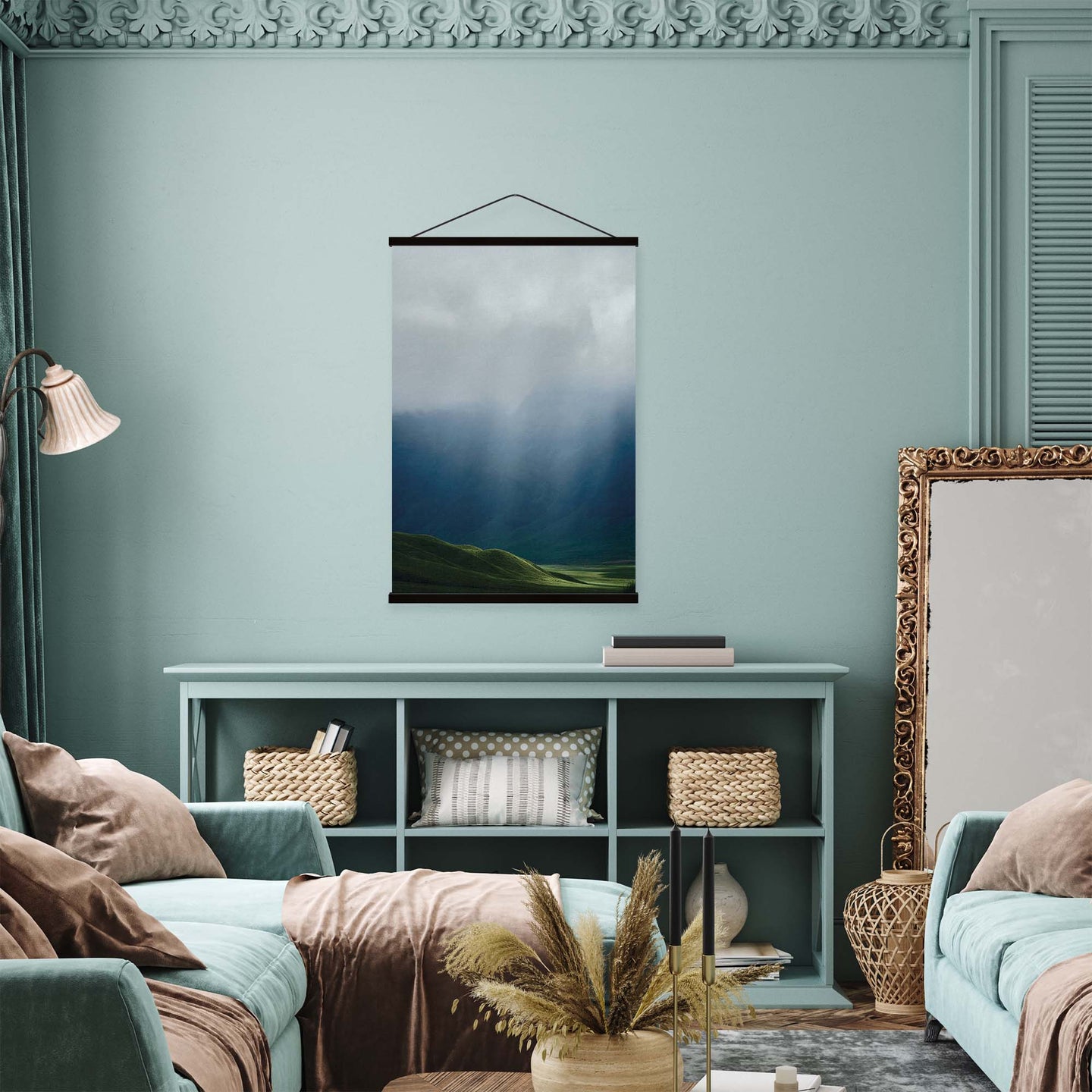Create an instant room transformation, with the canvas tapestry print: 'Light by Andy Ritonga'. Printed on luxury 260g canvas, Tapestro canvas tapestries hang from magnetic wooden holders, in either teak or black wood. Supplied with a black hanger. This print measures: 60cm x 90cm (24in x 36in). For each item sold, one tree is planted. This helps to offset carbon released during production and shipping, and to create a net positive contribution over the tree's lifetime. Transform your home, and our planet.