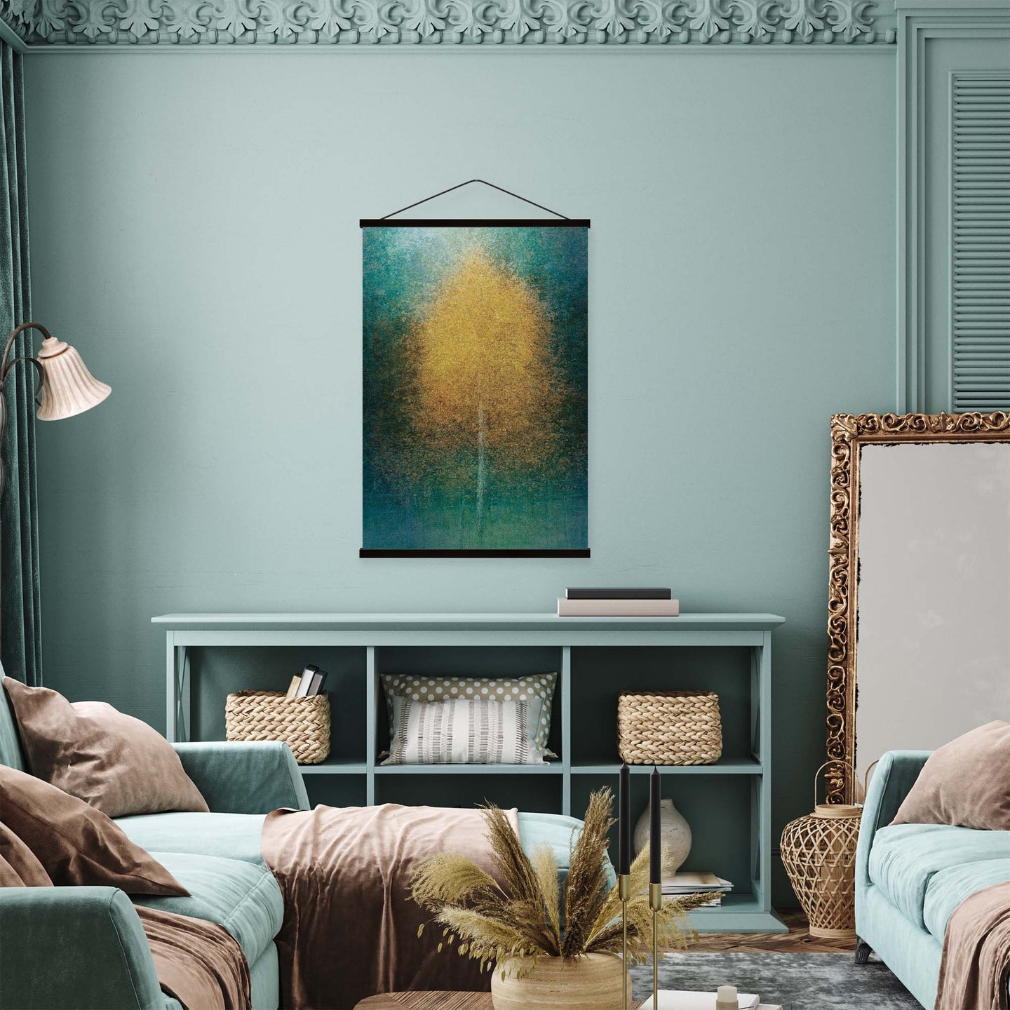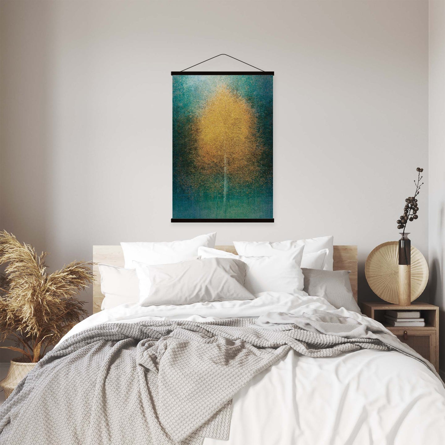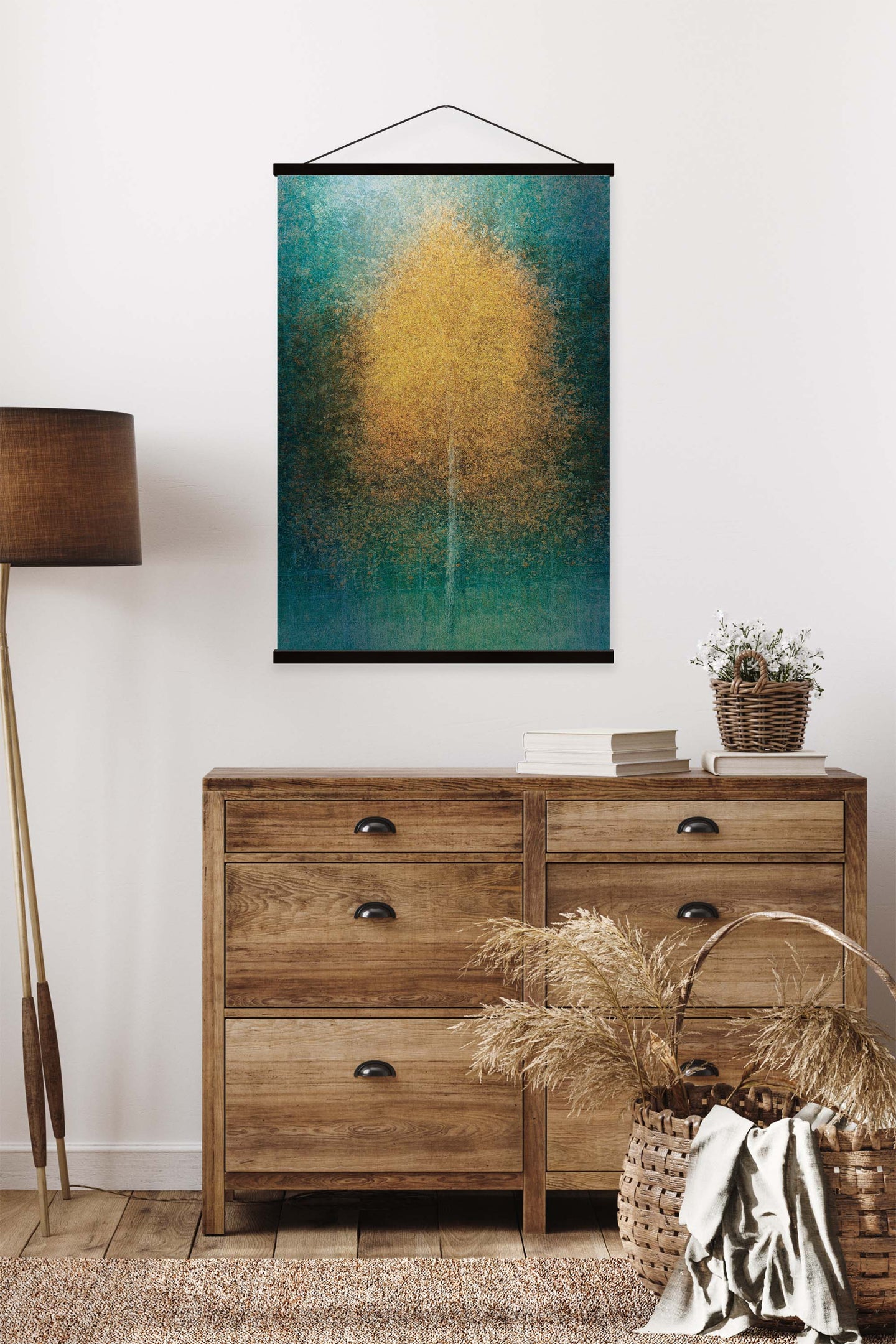 Create an instant room transformation, with the canvas tapestry print: 'Young at Heart by Katarina Holmstrom'. Printed on luxury 260g canvas, Tapestro canvas tapestries hang from magnetic wooden holders, in either teak or black wood. Supplied with a black hanger. This print measures: 60cm x 90cm (24in x 36in). For each item sold, one tree is planted. This helps to offset carbon released during production and shipping, and to create a net positive contribution over the tree's lifetime. Transform your home, and our planet.