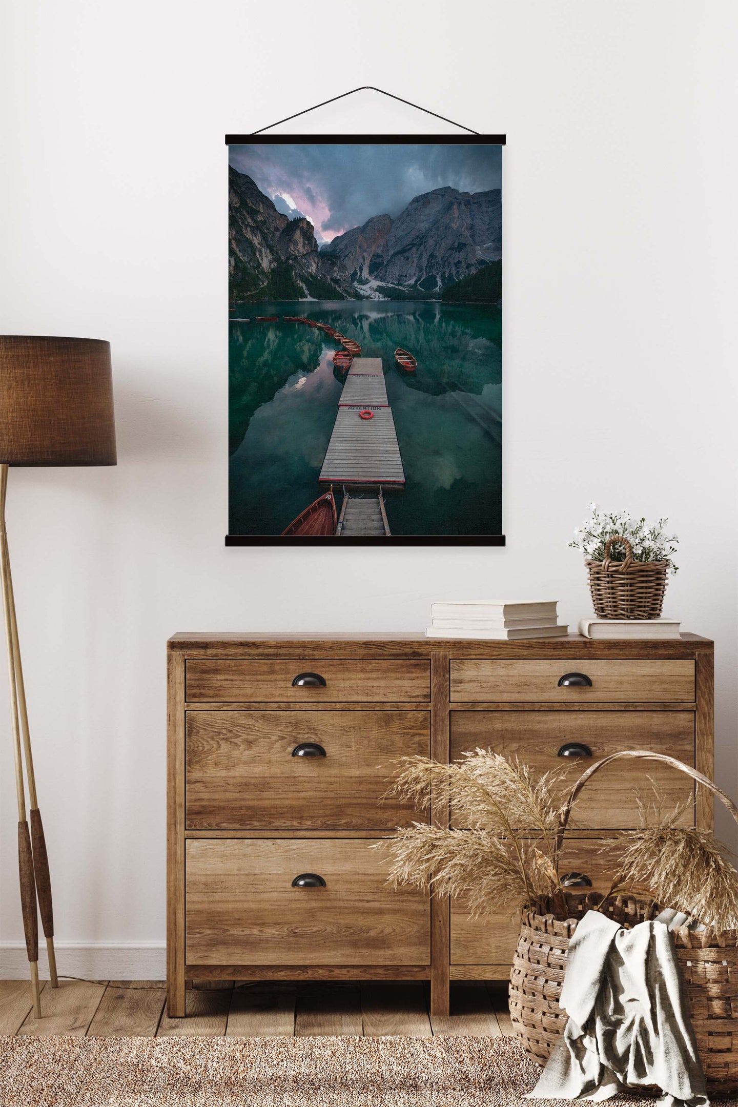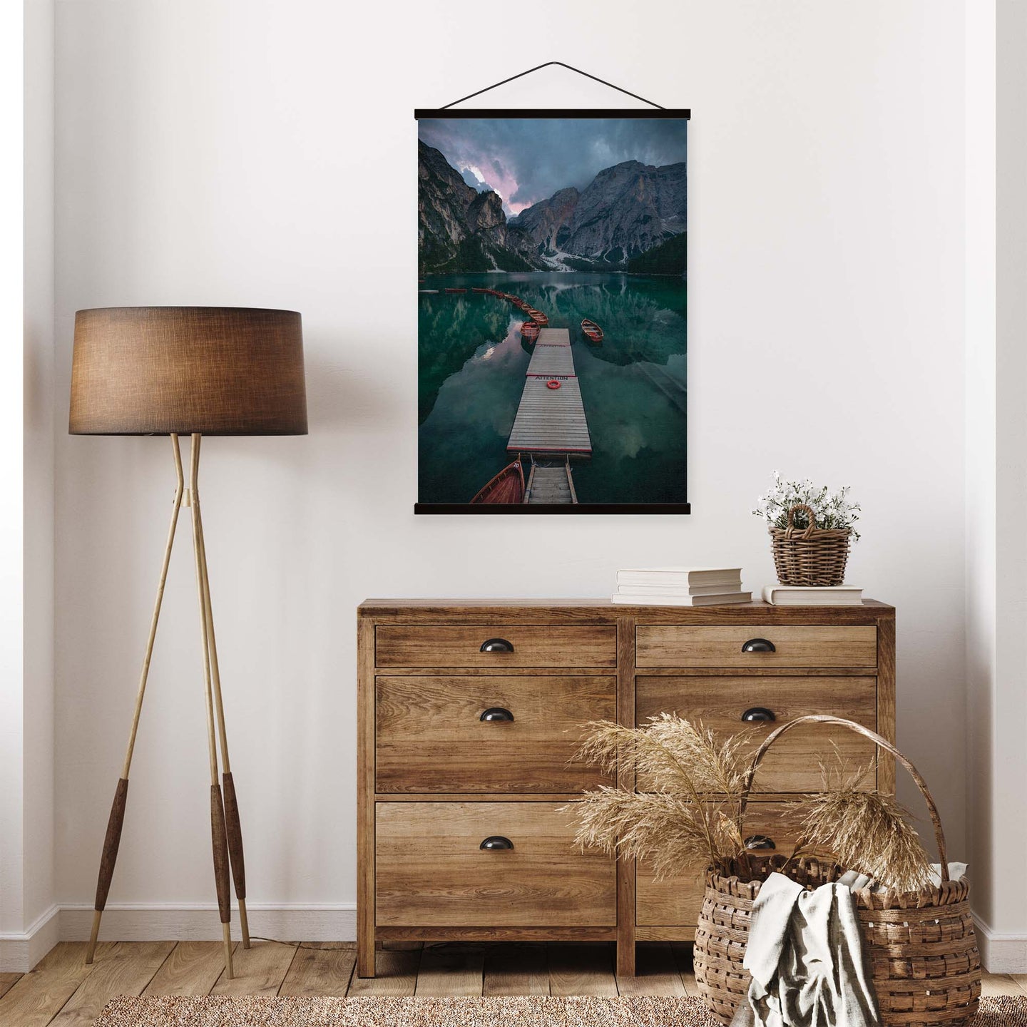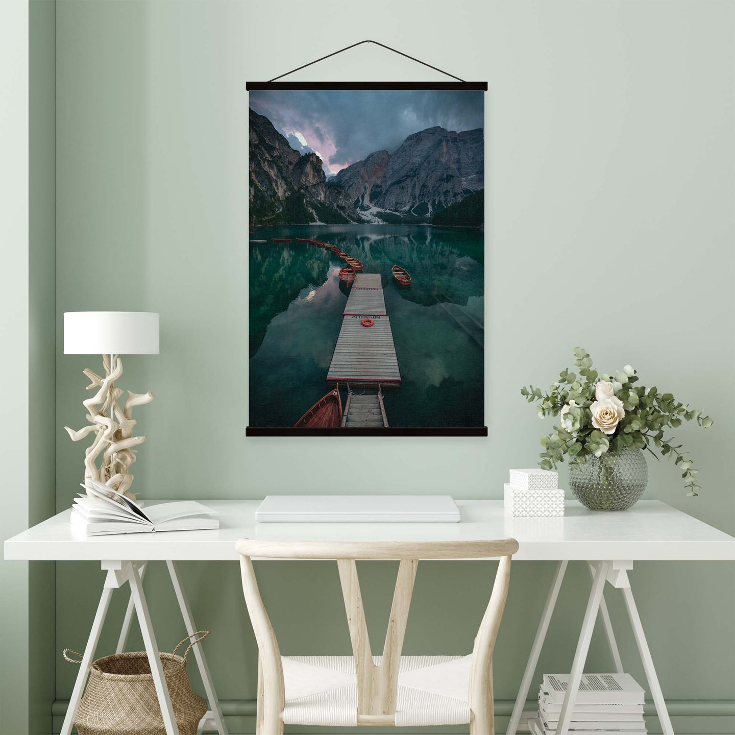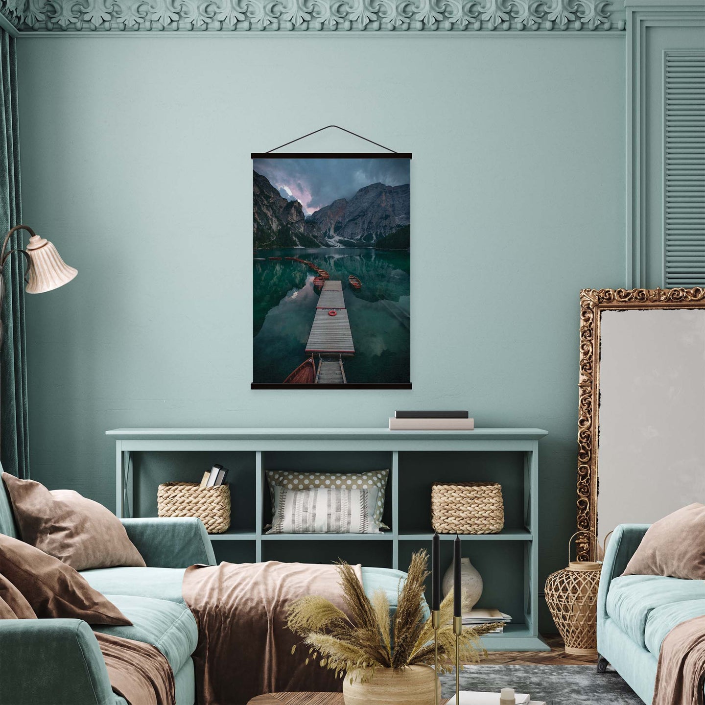 Create an instant room transformation, with the canvas tapestry print: 'Braies Reflections by Marco Tagliarino'. Printed on luxury 260g canvas, Tapestro canvas tapestries hang from magnetic wooden holders, in either teak or black wood. Supplied with a black hanger. This print measures: 60cm x 90cm (24in x 36in). For each item sold, one tree is planted. This helps to offset carbon released during production and shipping, and to create a net positive contribution over the tree's lifetime. Transform your home, and our planet.