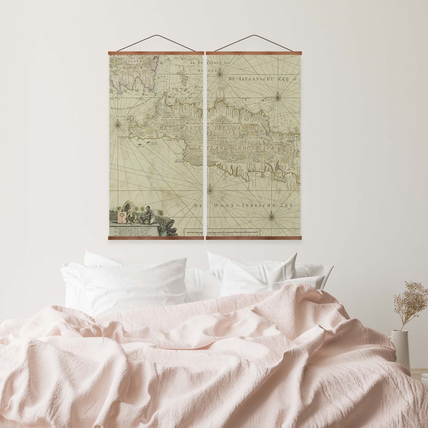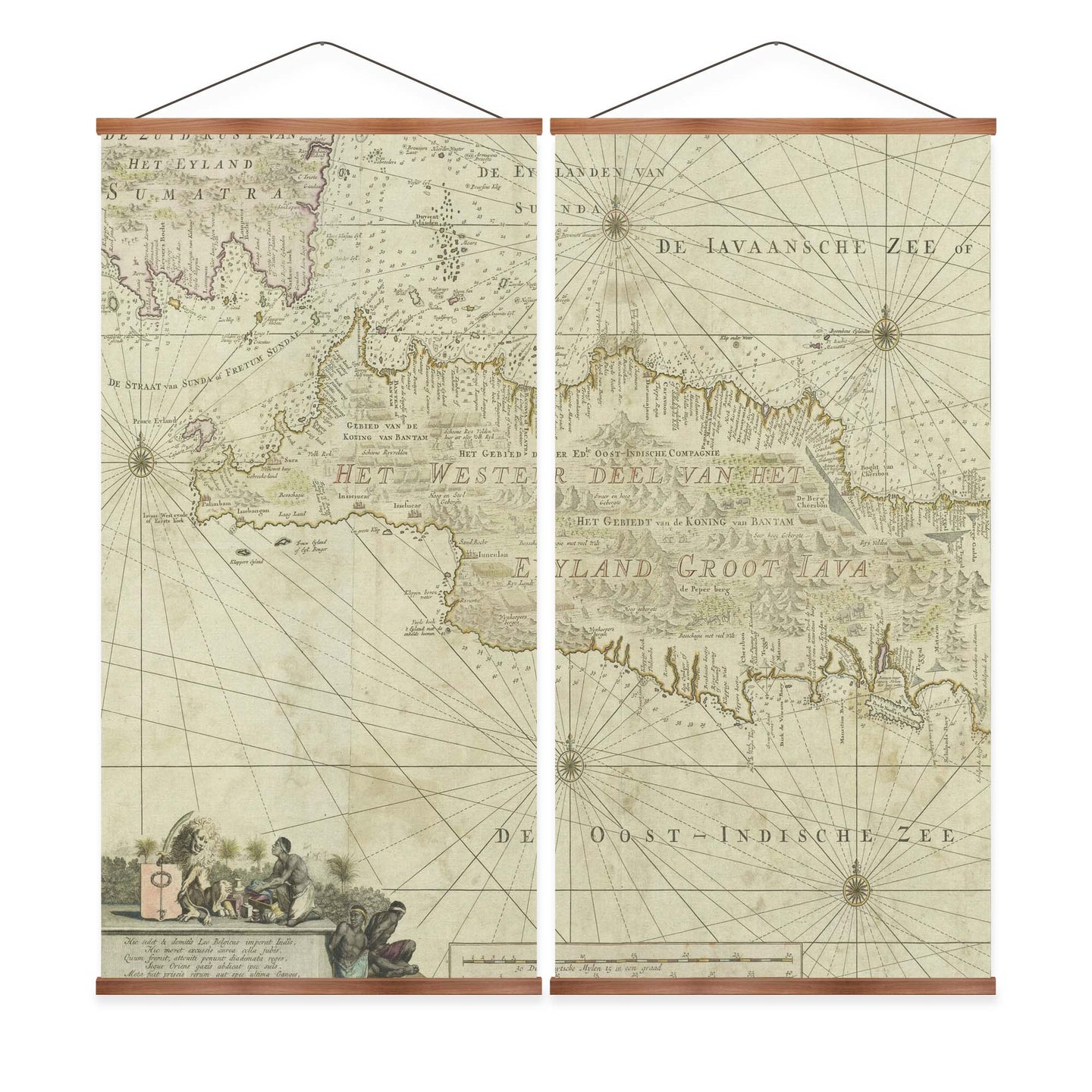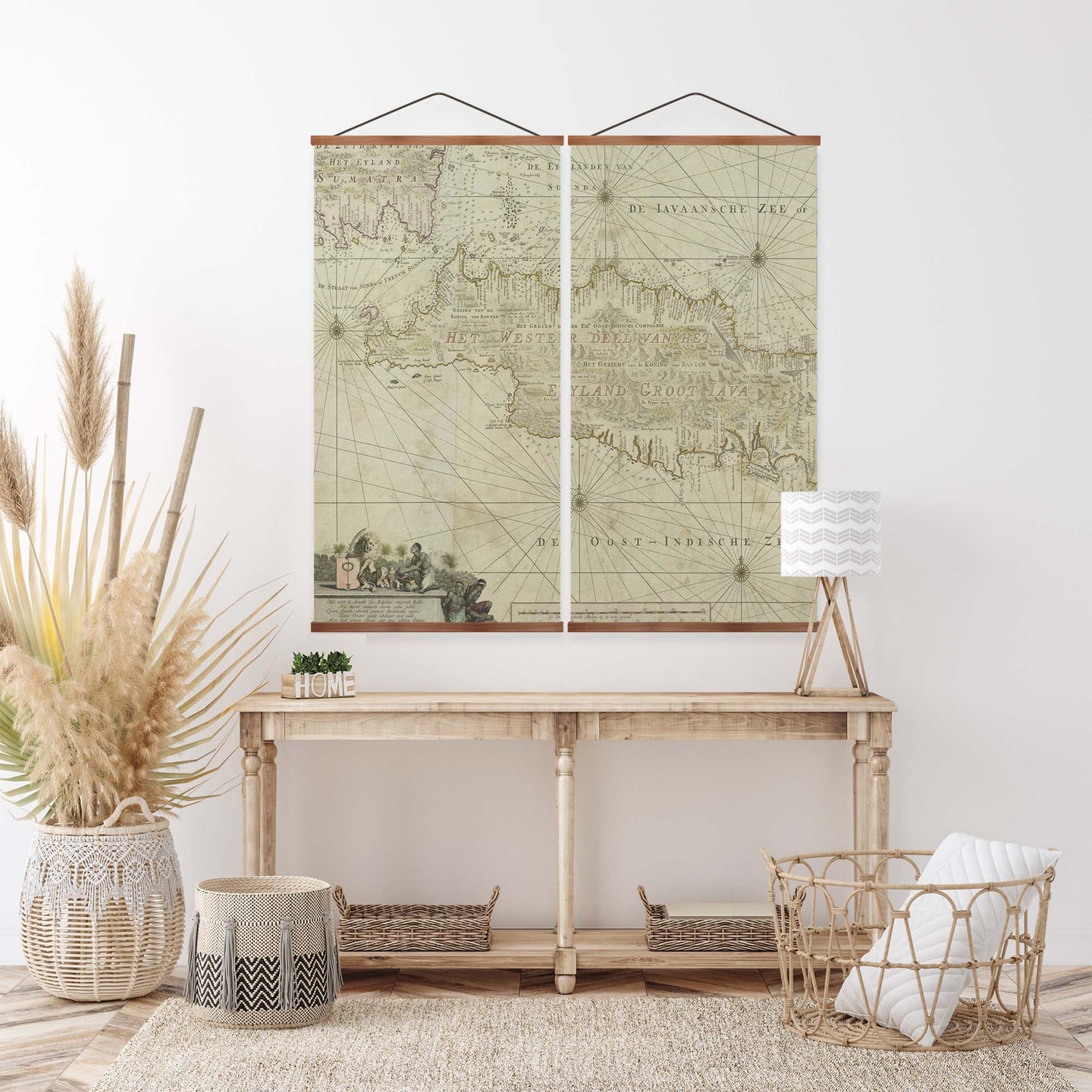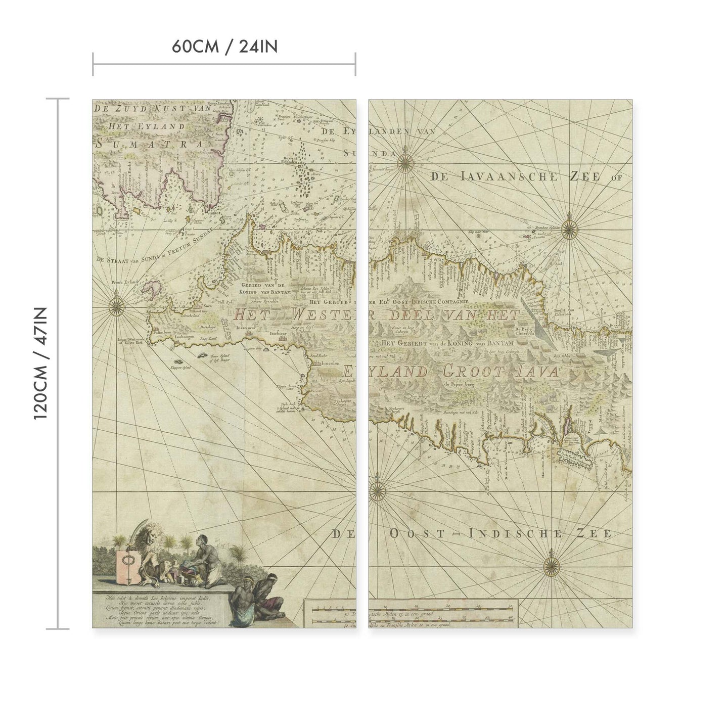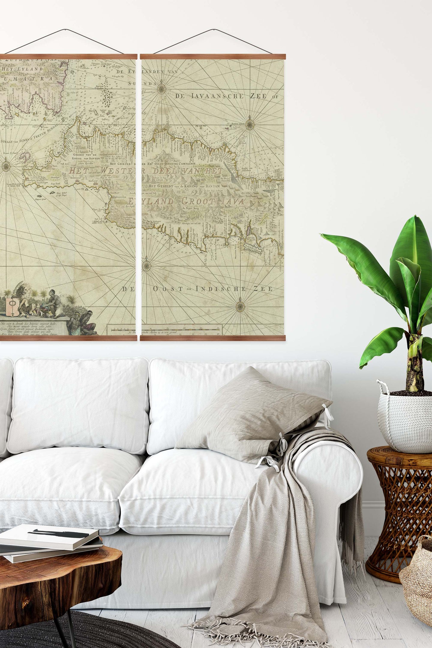 Create an instant room transformation, with the canvas tapestry print: 'West Java Vintage Map'. Printed on luxury 260g canvas, Tapestro canvas tapestries hang from magnetic wooden holders, in either teak or black wood. Supplied with a teak hanger. This print measures: 120cm x 120cm (47in x 47in). Supplied in: 2 Panels. For each item sold, one tree is planted. This helps to offset carbon released during production and shipping, and to create a net positive contribution over the tree's lifetime. Transform your home, and our planet.