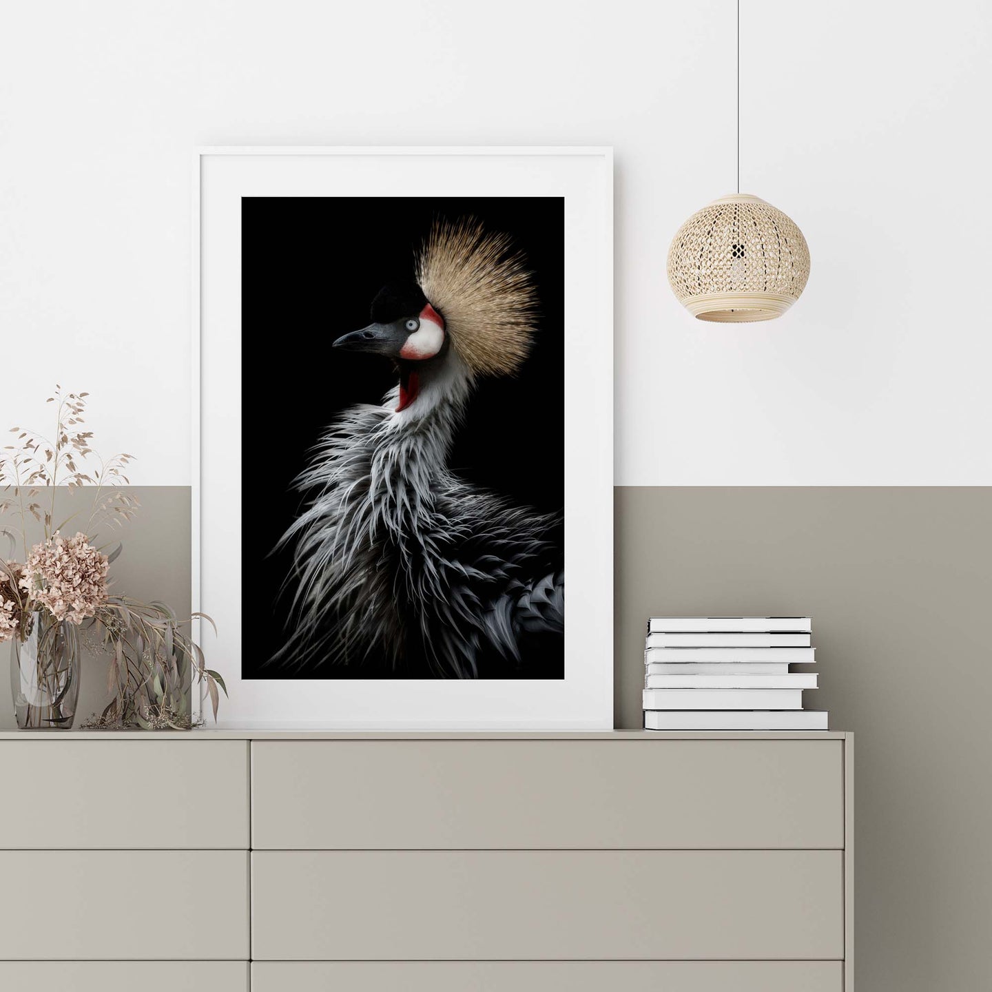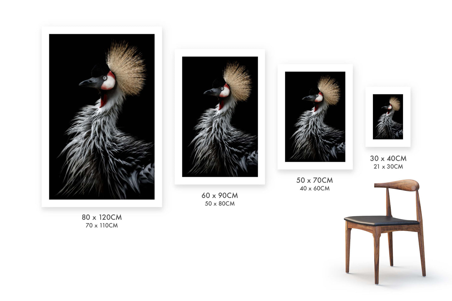 Add a piece of original photographic art to your walls, with the photo art print: 'Crowned Crane's Portrait by Eiji Itoyama'. Each art print is available in a choice of 4 ready-to-frame sizes, features a 5cm white border, and is printed on luxury 200gsm Grafía Photographic Art Paper in ultra high-definition. For each item sold, one tree is planted. This helps to offset carbon released during production and shipping, and to create a net positive contribution over the tree's lifetime. Transform your home, and our planet.