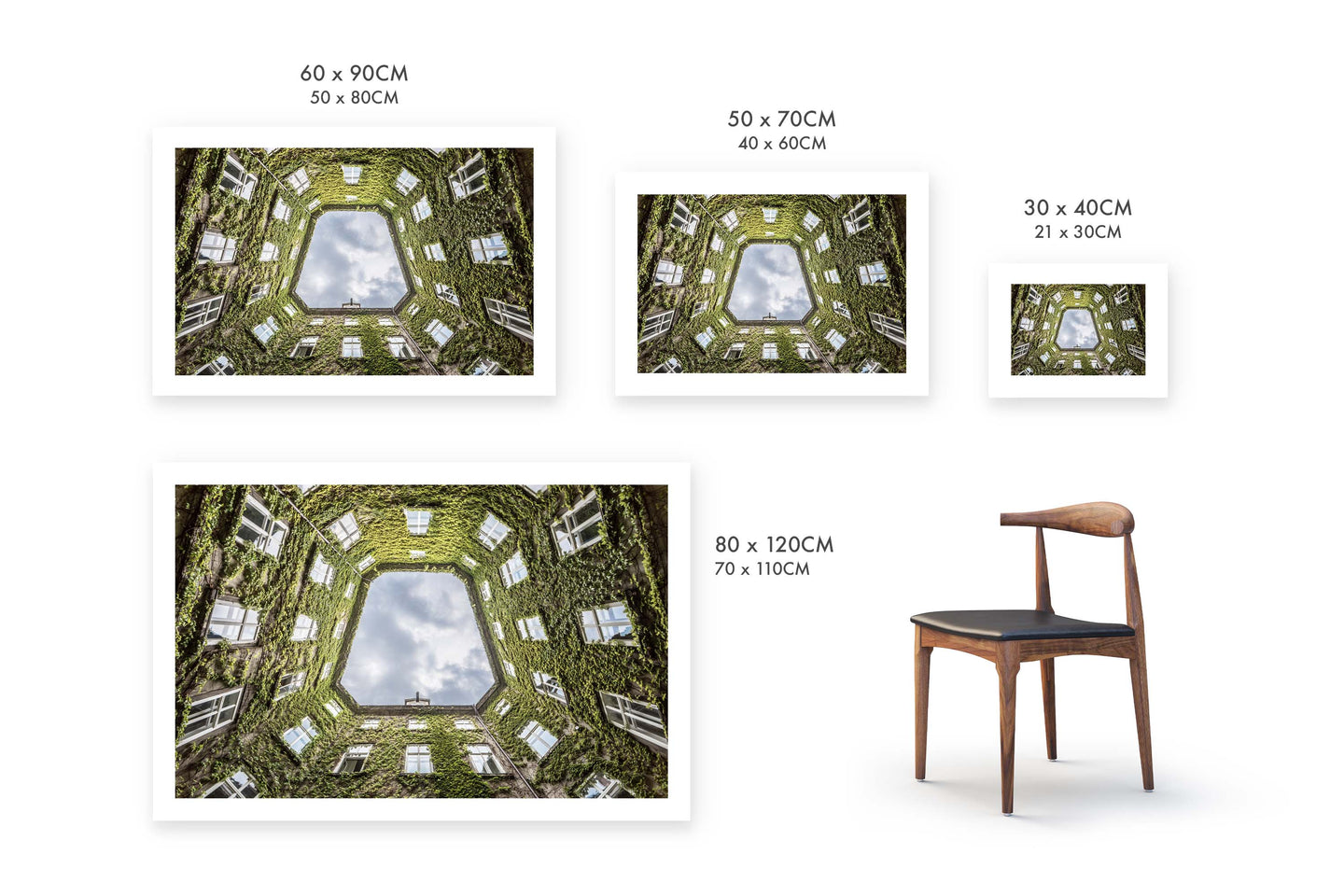 Add a piece of original photographic art to your walls, with the photo art print: 'Vienna Courtyard by Lorenza Cancian'. Each art print is available in a choice of 4 ready-to-frame sizes, features a 5cm white border, and is printed on luxury 200gsm Grafía Photographic Art Paper in ultra high-definition. For each item sold, one tree is planted. This helps to offset carbon released during production and shipping, and to create a net positive contribution over the tree's lifetime. Transform your home, and our planet.