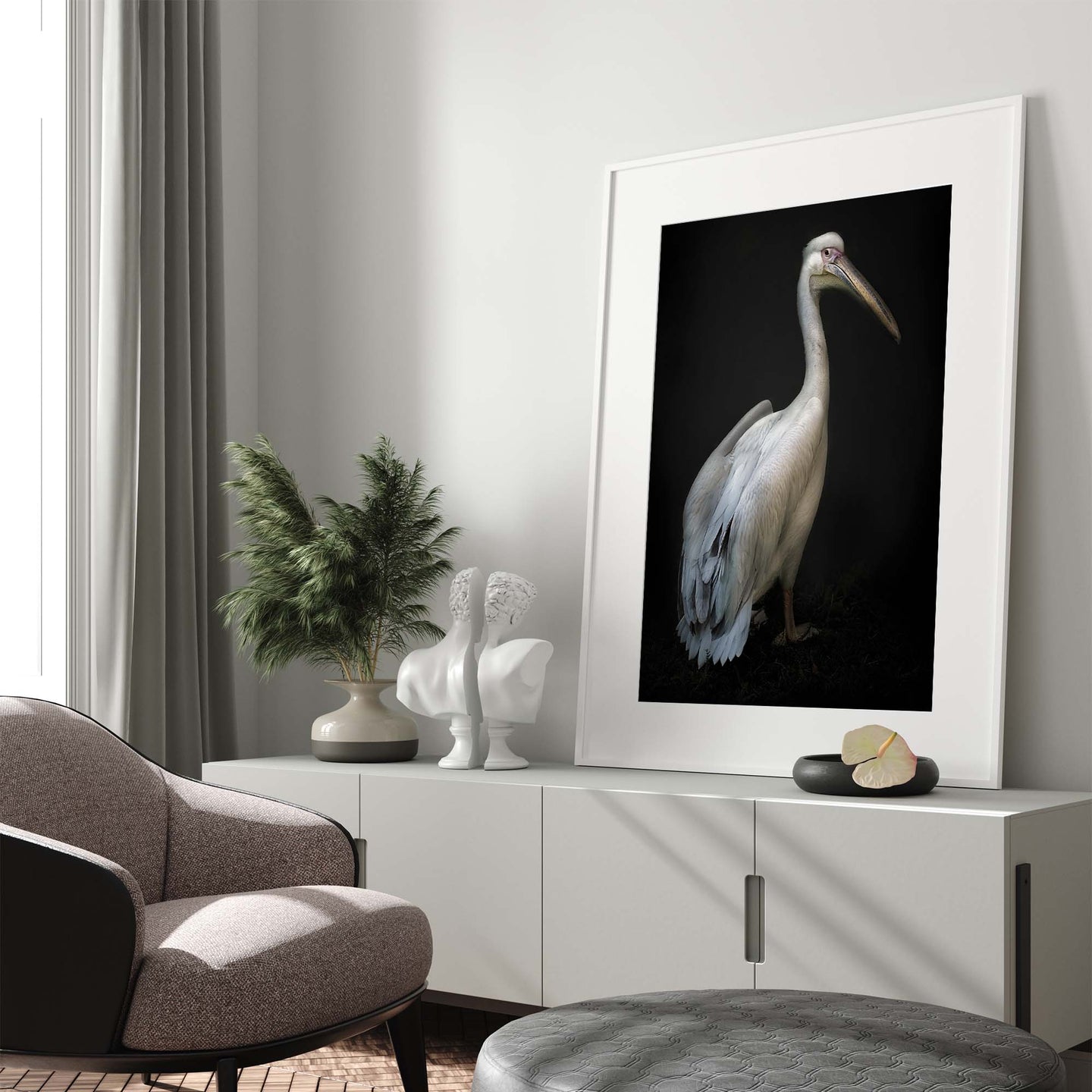 Add a piece of original photographic art to your walls, with the photo art print: 'Pelican Portrait by Santiago Pascual Buye'. Each art print is available in a choice of 4 ready-to-frame sizes, features a 5cm white border, and is printed on luxury 200gsm Grafía Photographic Art Paper in ultra high-definition. For each item sold, one tree is planted. This helps to offset carbon released during production and shipping, and to create a net positive contribution over the tree's lifetime. Transform your home, and our planet.
