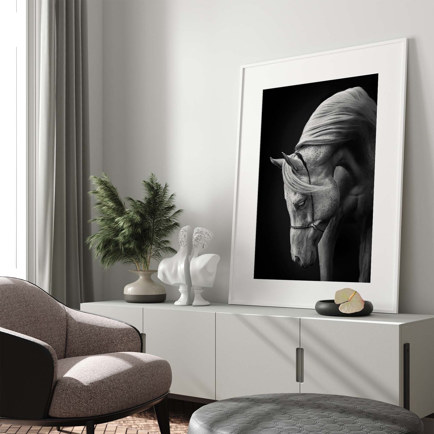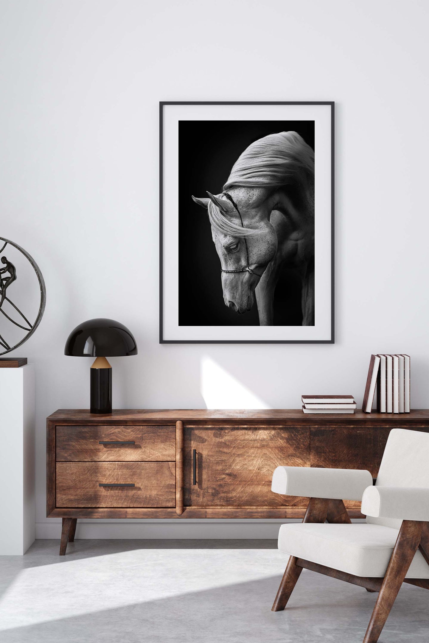 Add a piece of original photographic art to your walls, with the photo art print: 'White Stallion by Ulrike Leinemann'. Each art print is available in a choice of 4 ready-to-frame sizes, features a 5cm white border, and is printed on luxury 200gsm Grafía Photographic Art Paper in ultra high-definition. For each item sold, one tree is planted. This helps to offset carbon released during production and shipping, and to create a net positive contribution over the tree's lifetime. Transform your home, and our planet.