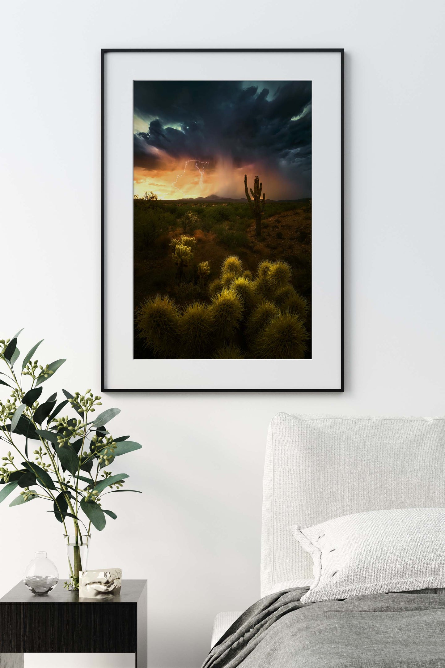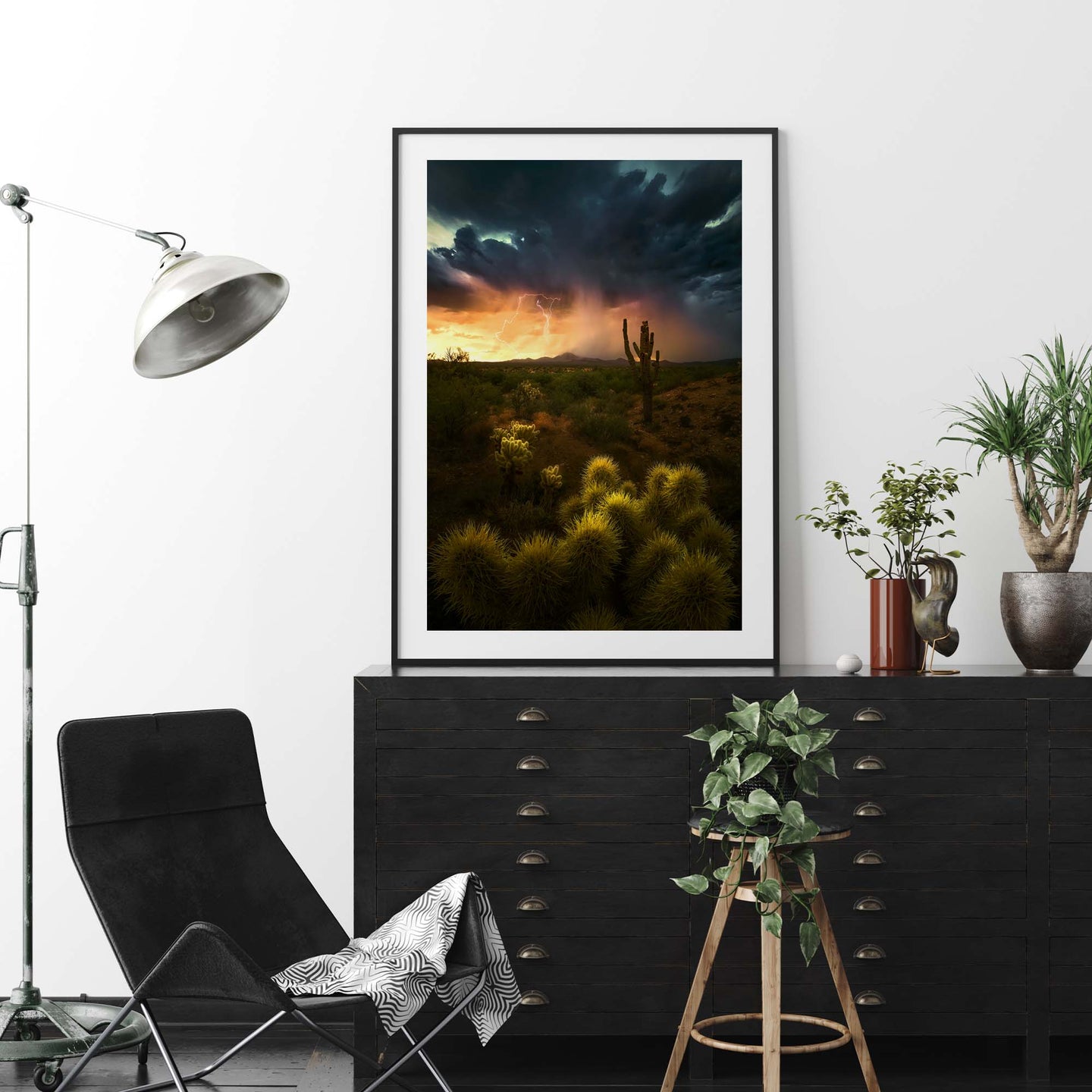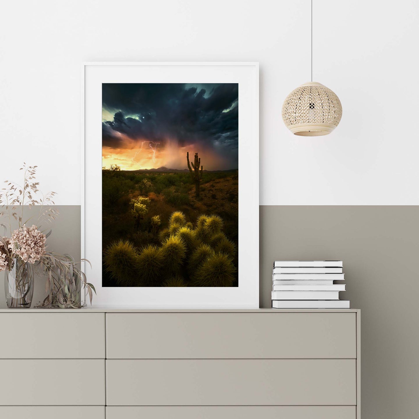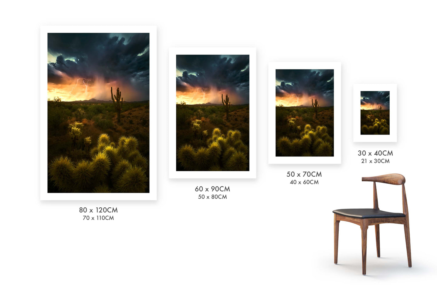 Add a piece of original photographic art to your walls, with the photo art print: 'Storm Over Desert by Aidong Ning'. Each art print is available in a choice of 4 ready-to-frame sizes, features a 5cm white border, and is printed on luxury 200gsm Grafía Photographic Art Paper in ultra high-definition. For each item sold, one tree is planted. This helps to offset carbon released during production and shipping, and to create a net positive contribution over the tree's lifetime. Transform your home, and our planet.