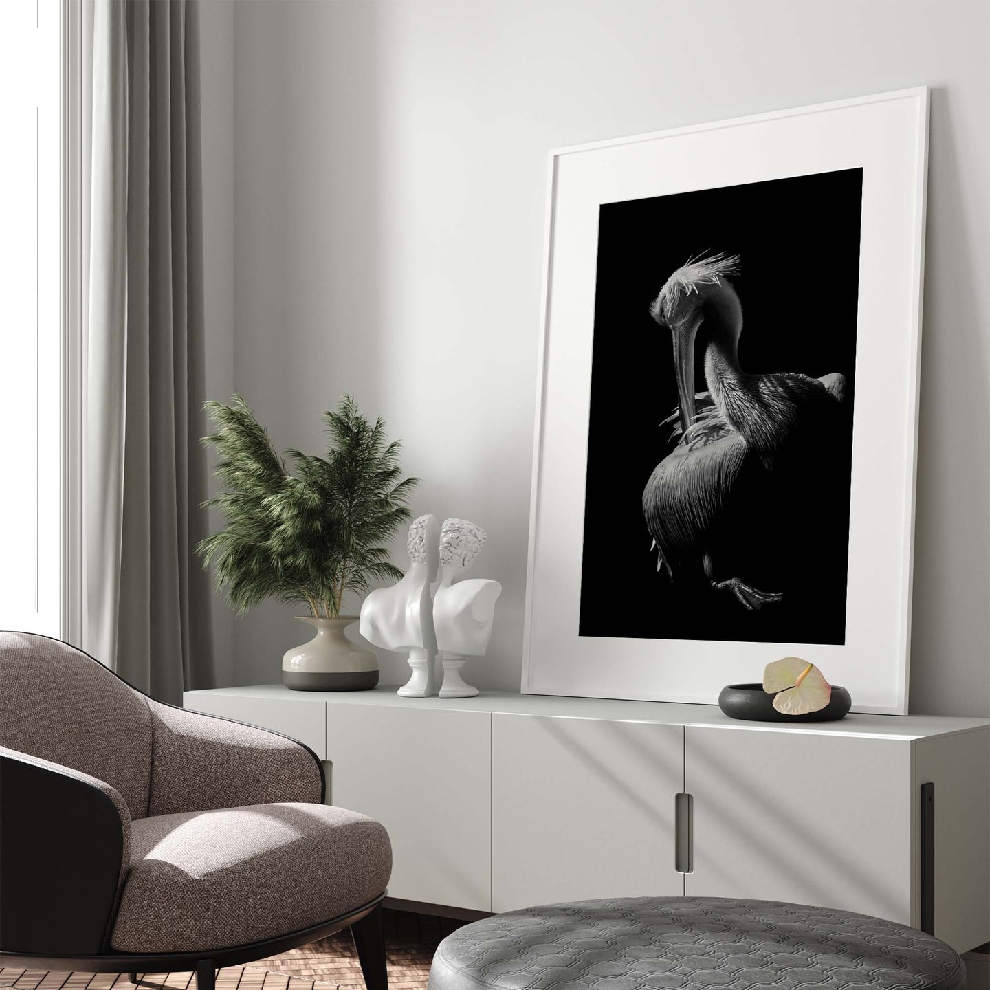 Add a piece of original photographic art to your walls, with the photo art print: 'Pelican by Jealousy '. Each art print is available in a choice of 4 ready-to-frame sizes, features a 5cm white border, and is printed on luxury 200gsm Grafía Photographic Art Paper in ultra high-definition. For each item sold, one tree is planted. This helps to offset carbon released during production and shipping, and to create a net positive contribution over the tree's lifetime. Transform your home, and our planet.